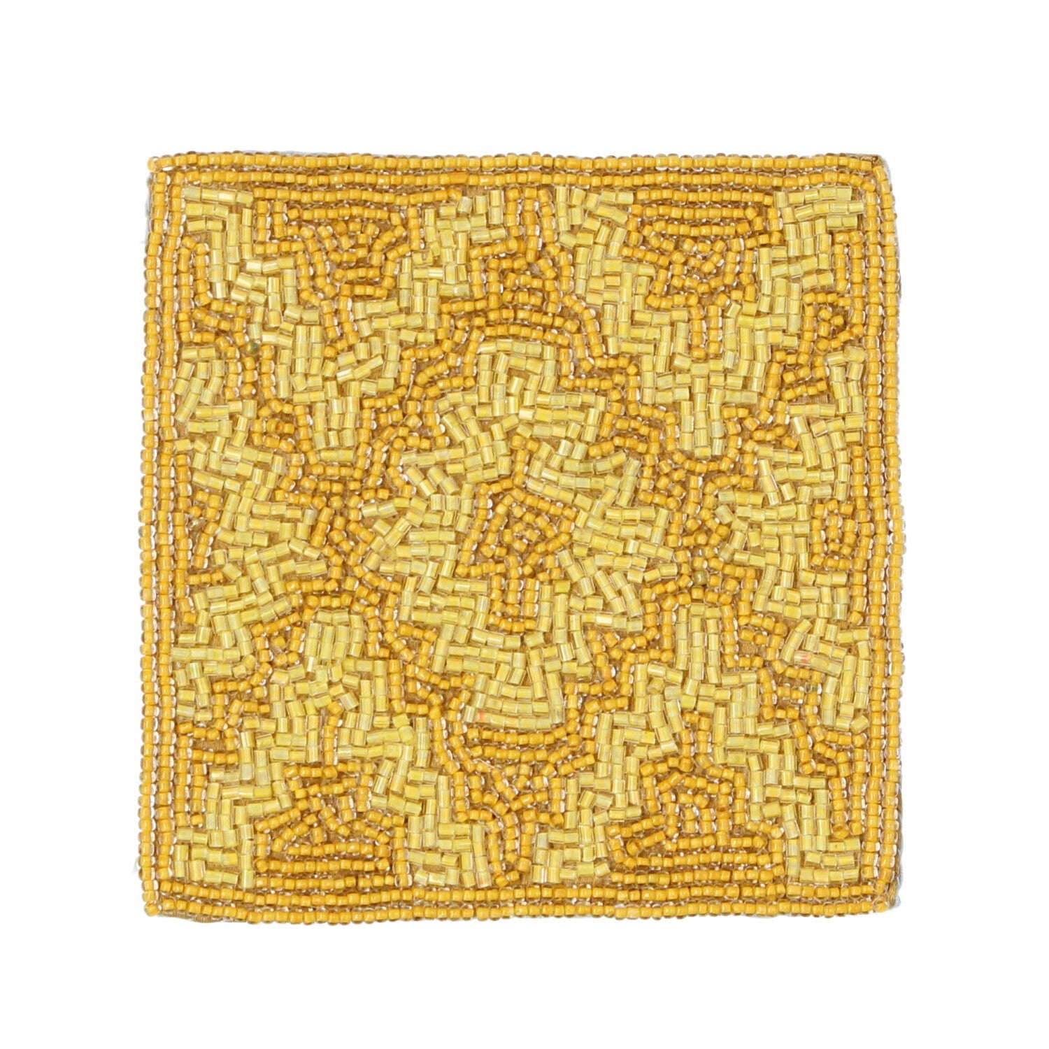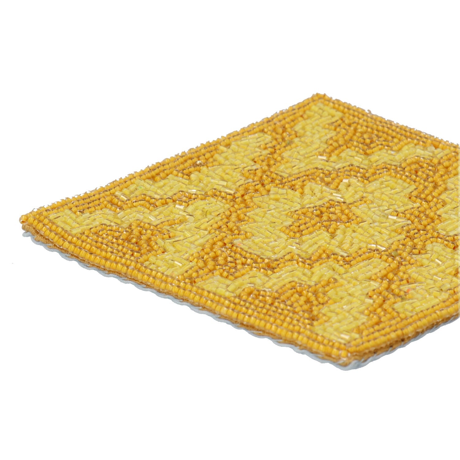 形の違う小粒のビーズで柄を表現したキラキラ輝くコースターです。どんな色のグラスやカップでもかわいくコーディネートできます。ダイニングでのコーディネートをおしゃれに引き立ててくれます。