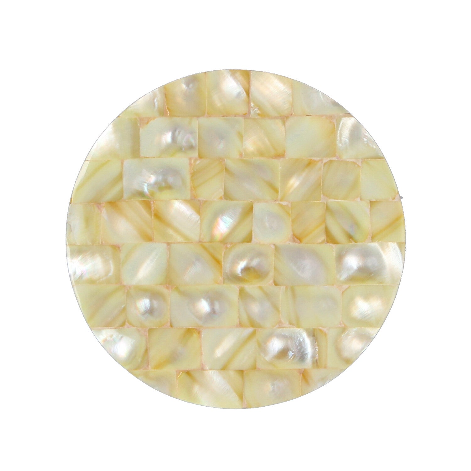 シェルの柔らかいパールのような色味がとても美しいコースターです。コースターの表面に使用した貝の光沢感が独特な輝きを放ち、角度によってコースターの色合いが微妙に変化します。商品の特性上、コースターの色柄やサイズに多少のばらつきがありますが、世界に一つだけのオンリーワンコースターとしてお楽しみください。貝の光沢とイエローカラーが組み合わさった特徴的な色合いは、一年中お使いいただけます。コースターをドリンクグラスやマグカップの下に敷くと、テーブルがパッと明るくなります。光沢のあるコースターはパーティーやおもてなしなど、華やかなテーブルにも似合います。コースターはドリンクグラスだけでなく、ルームフレグランスやフラワーベースにもお使いいただけます。また、おしゃれな光沢が美しいコースターはグラスや器の下に敷くだけでなく、ディスプレイとして使用しても。小さめのオブジェやアーティフィシャルフラワーなどをコースターの上に飾るとステキなディスプレイに。色違いで複数組み合わせても楽しいコーナーになります。友人へのギフトにコースター・グラス・マドラーをセットにしたプレゼントもおすすめです。