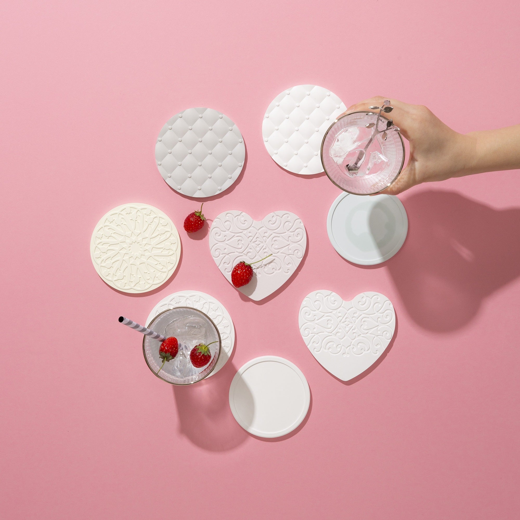 人気の珪藻土コースターがリニューアルしてさらに使いやすくなりました。今までの珪藻土コースターよりグラスからでる水滴を吸収する力がアップし、手触りはすべすべに、柄はくっきり、厚みは薄くなりました。従来どおり時間が経つと自然に乾燥するので、お手入れの手間はかかりません。ナチュラルな質感で様々なシーンに馴染みます。