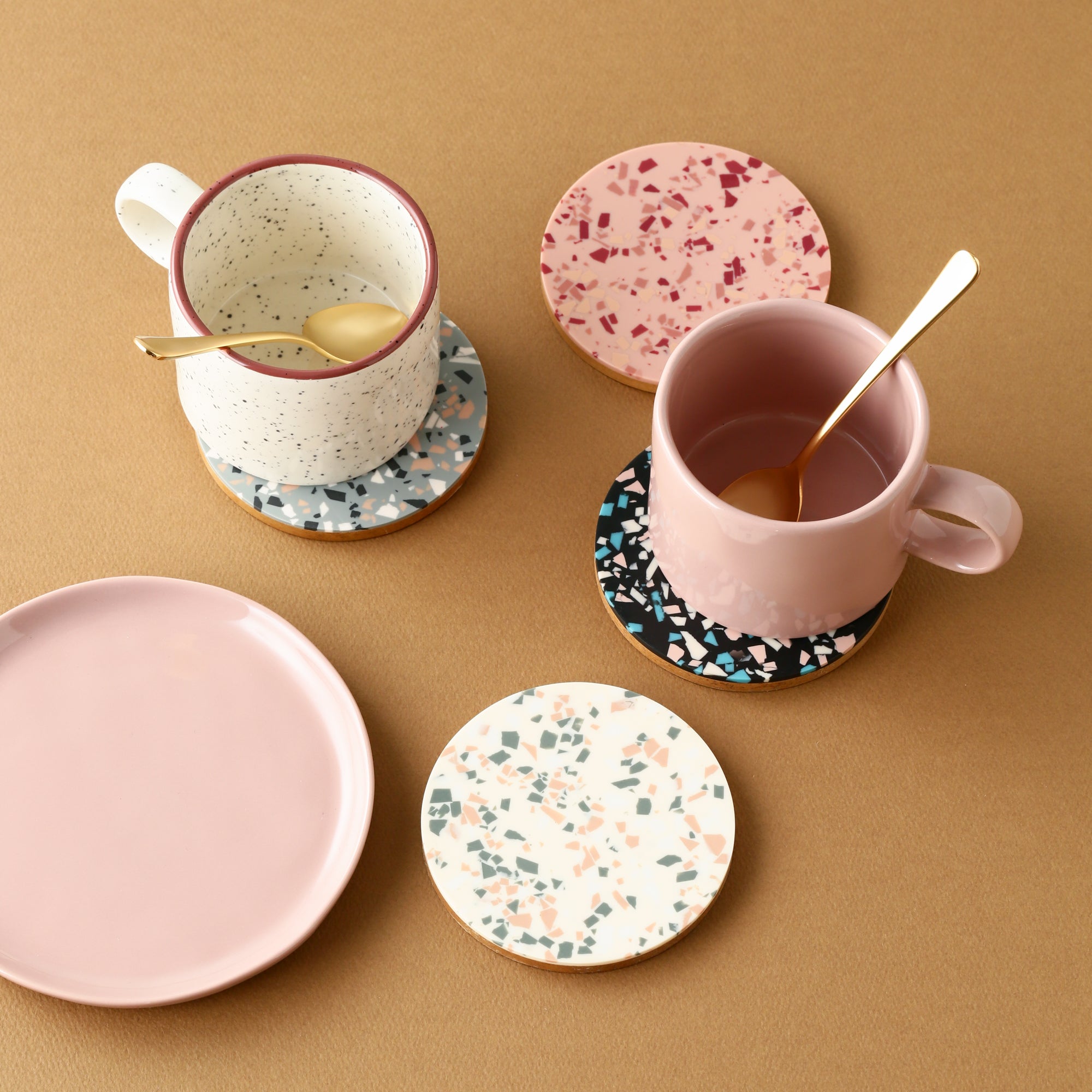 カラフルなレジン素材のコースターです。汚れても拭き取る事が可能でお手入れが簡単です。