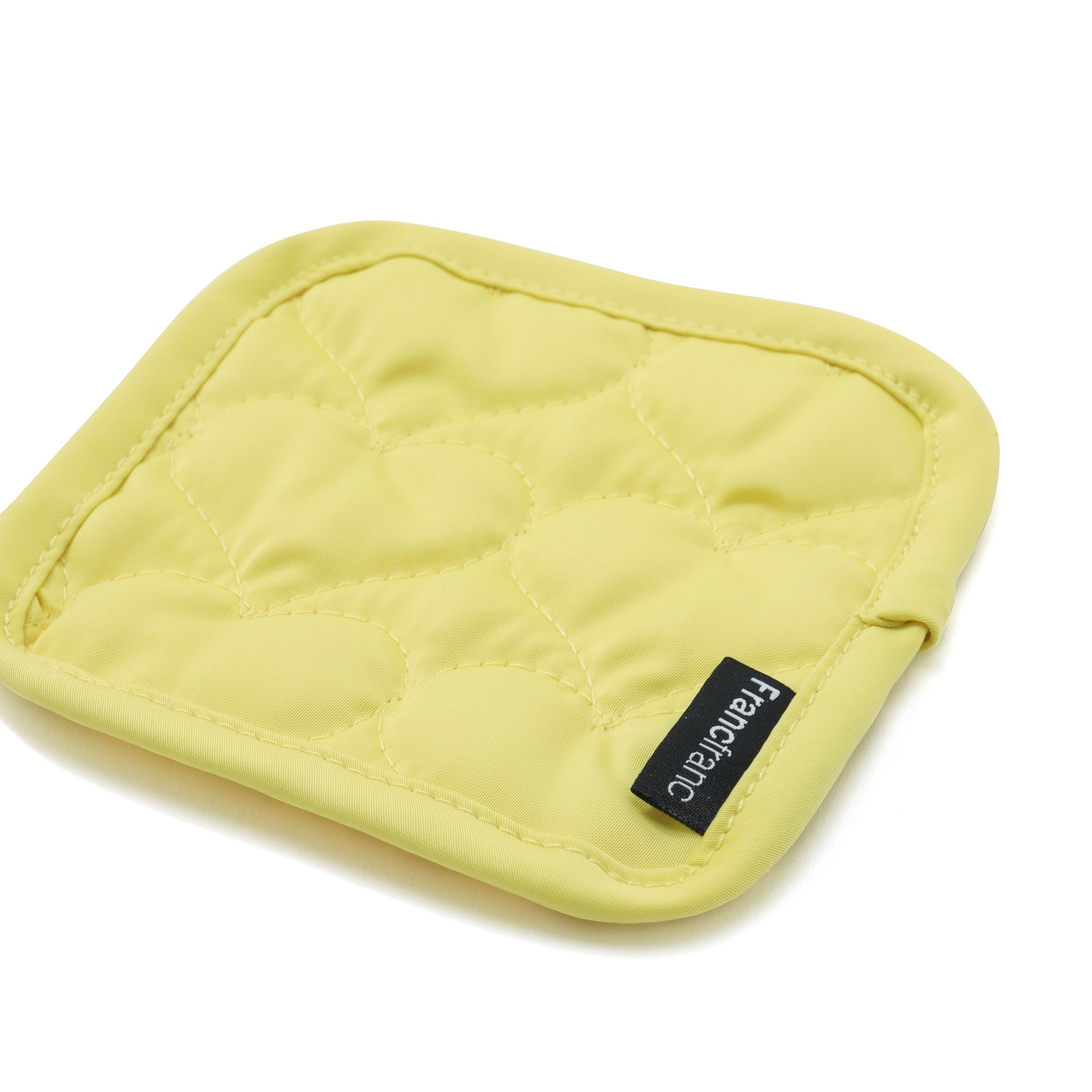 ハート模様のキルティング生地が可愛らしいコースターです。キルティング ミニランチマットとのセット使いがおすすめです。