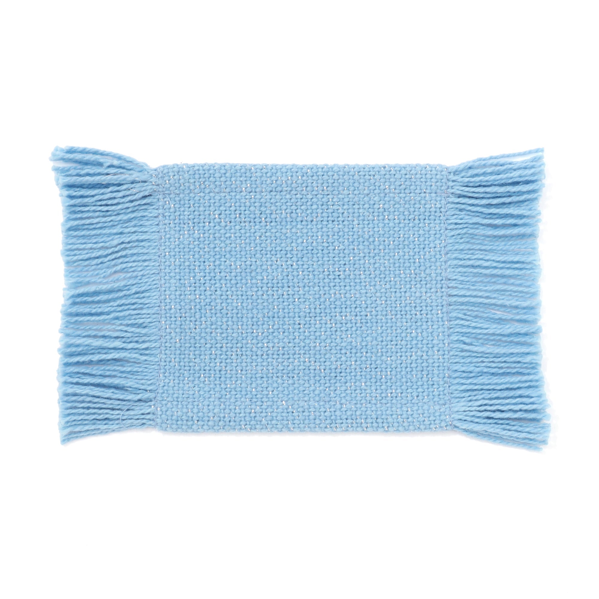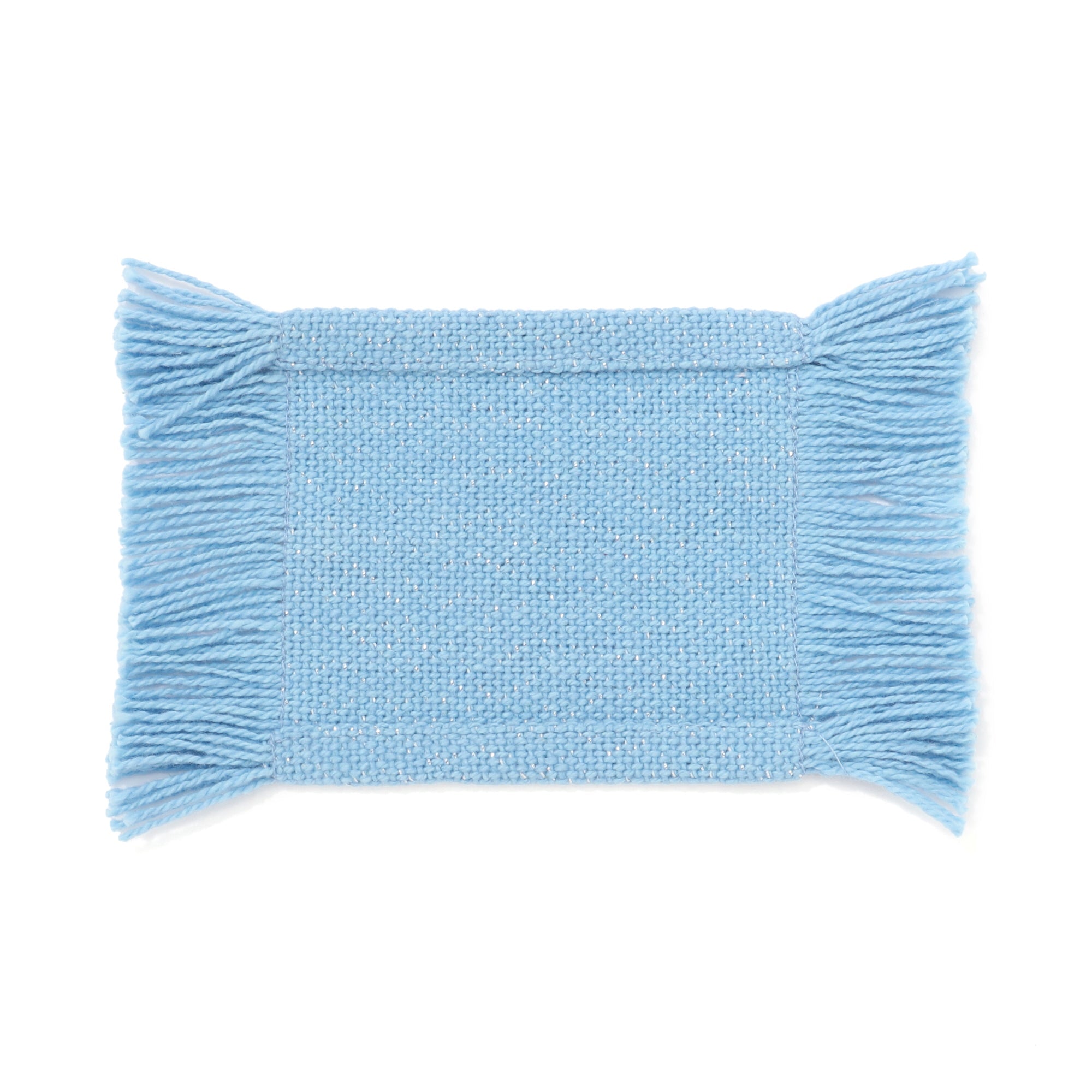 たっぷりフリンジをあしらったシンプルなコースターです。シルバーのラメ糸がアクセント。グラスとコーディネートすると簡単に涼し気な食卓を演出できます。