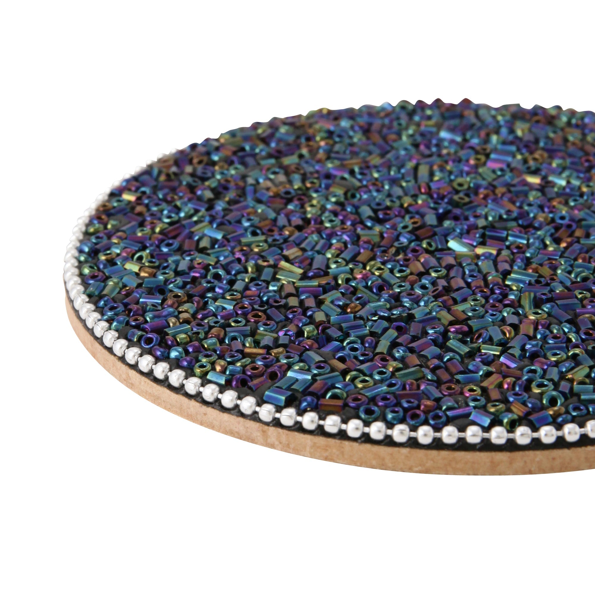 ※商品画像はイメージです。実際はビーズコースター ネイビーのみのお届けとなります。キラキラしたカラービーズを敷き詰めた上品なデザインのコースターです。グラスだけでなく、ディフューザー用のコースターとしても、また、グラスやディフューザーと合わせたギフトにもオススメです。
