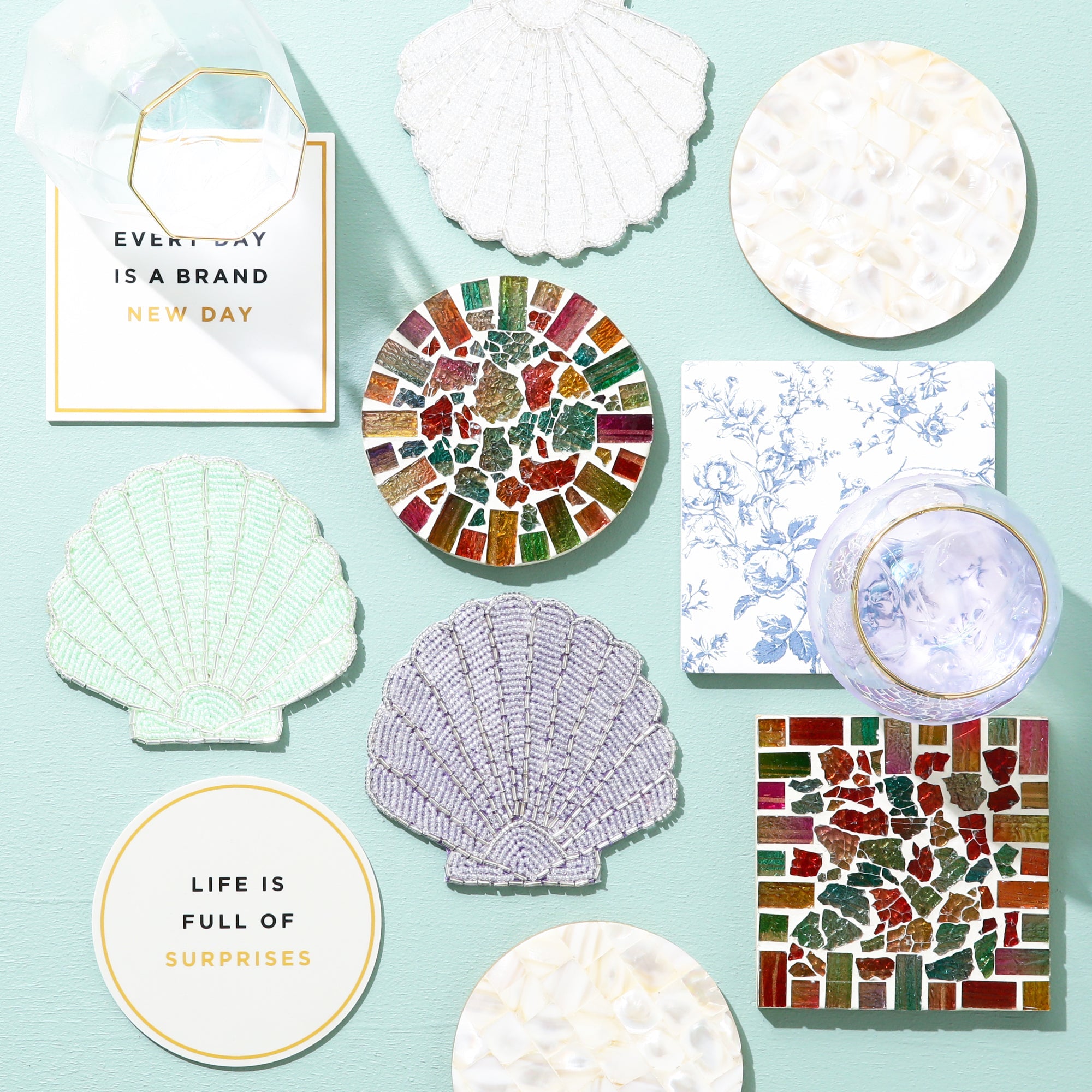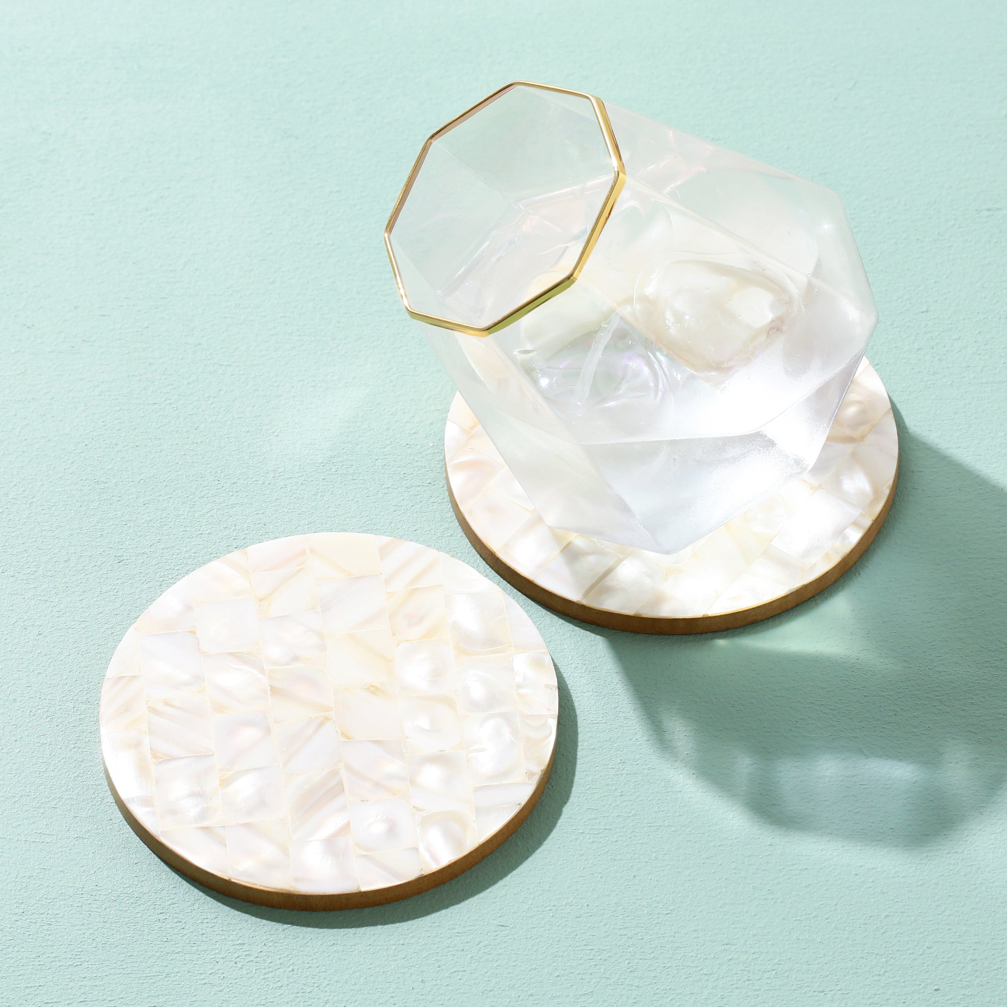 シェル素材のコースターです。幅広く組み合わせやすいデザインで、グラスだけでなくディフューザー用としてもお使いいただけます。※天然素材を使用しているため、多少の色ムラが生じます。色やサイズ・柄が若干異なることがあります。