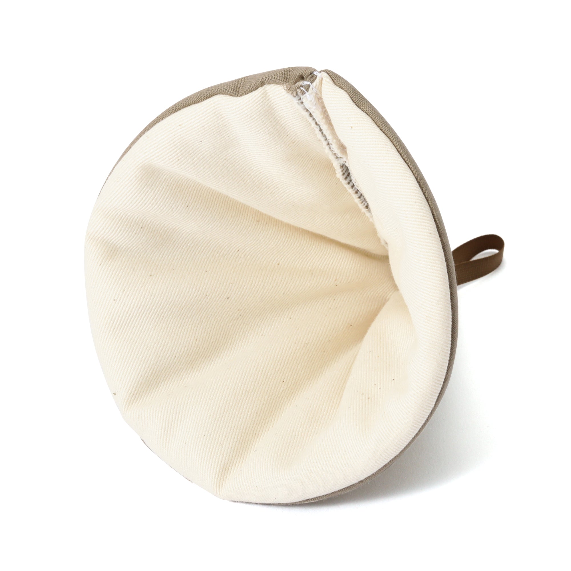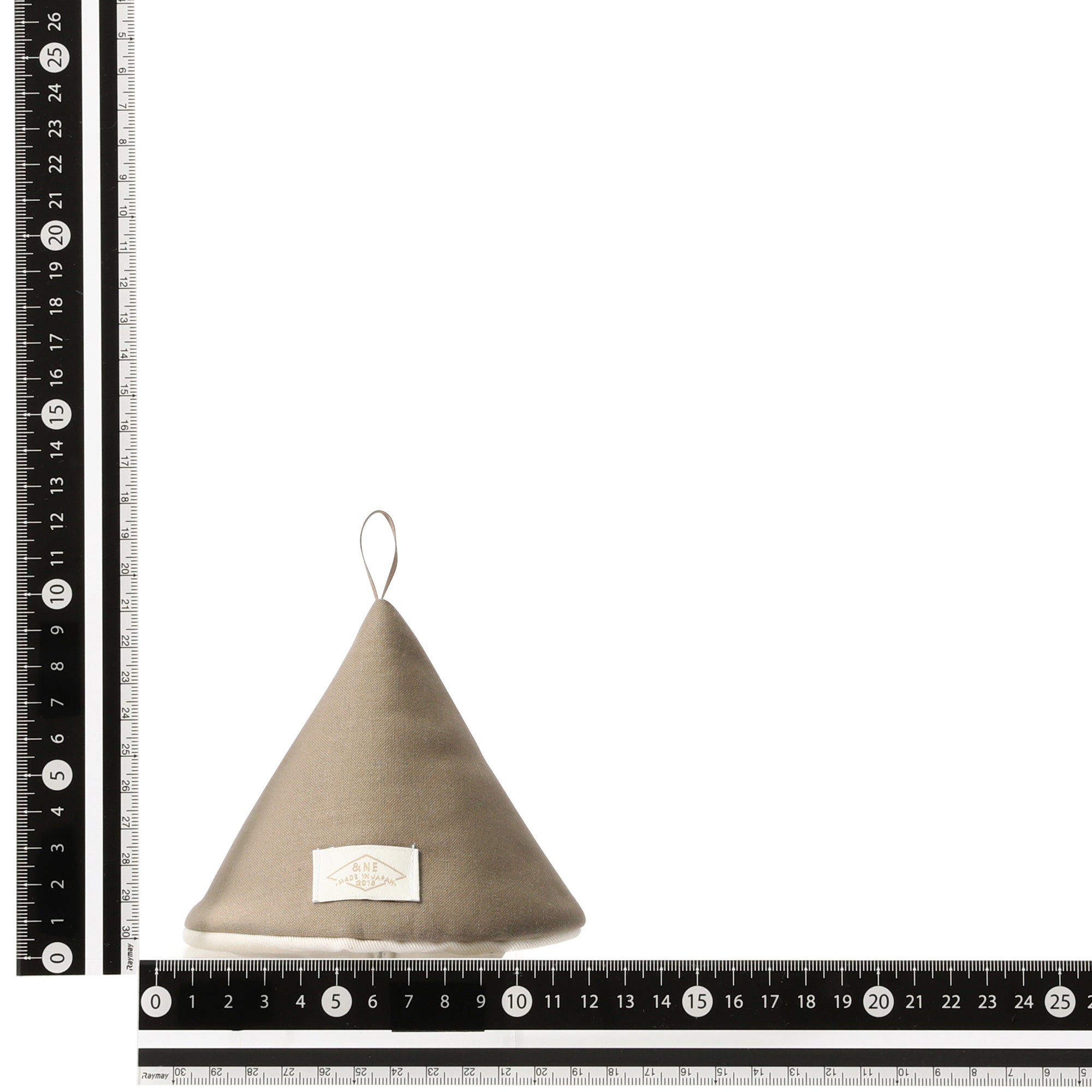 シンプルな色合いがかわいい三角錐型の鍋つかみです。土鍋やスキレットにも使える大きめサイズで、いろんな場所で活躍してくれます。ころんとした三角形が鍋の蓋や取っ手にぴったりはまり、機能性も抜群。ふんわりとした触り心地です。便利な紐つきで、さっと壁に吊るせばキッチンにリズムと彩りを添えてくれます。同色で揃えたり、お好きな組み合せを選んでプレゼントするのもおすすめです。