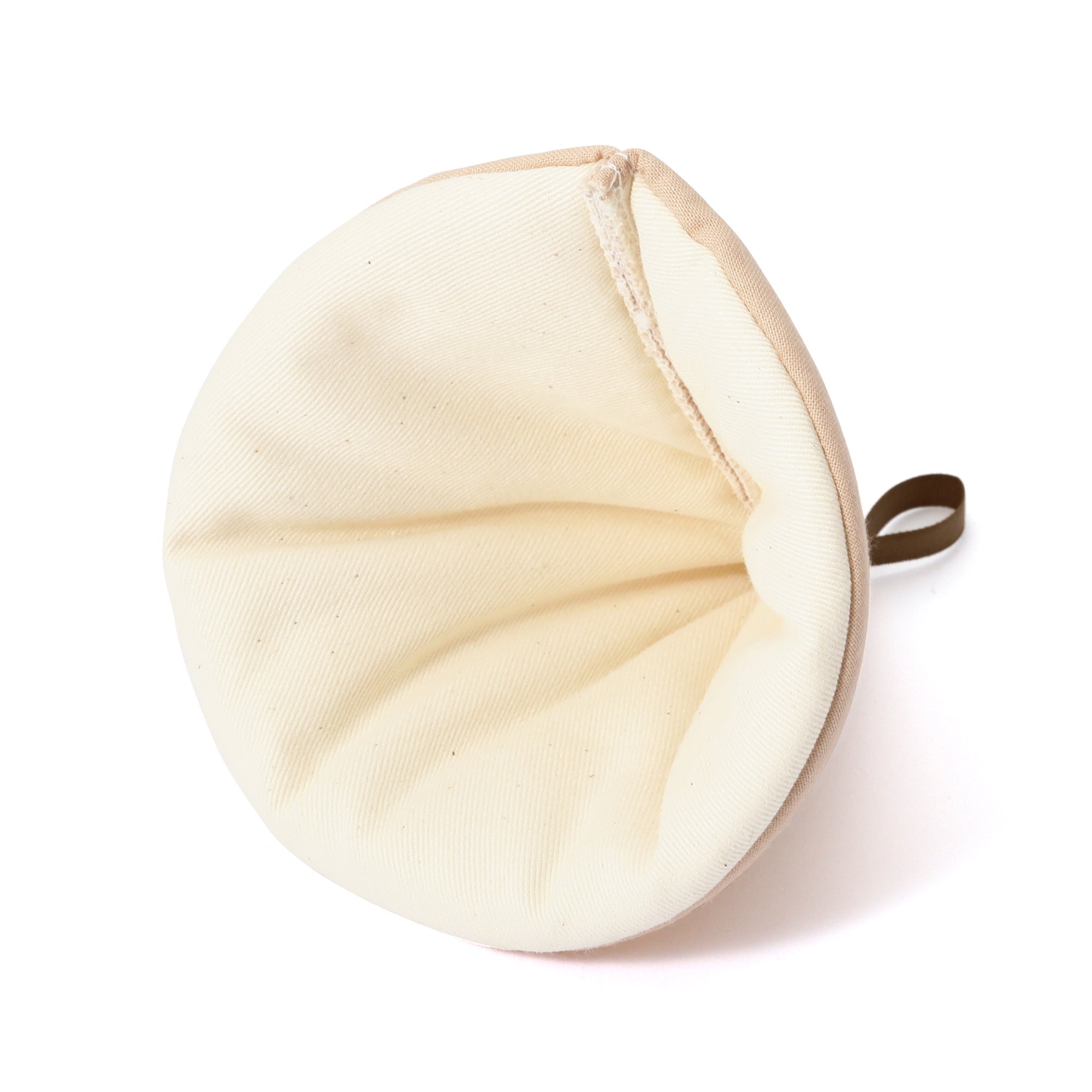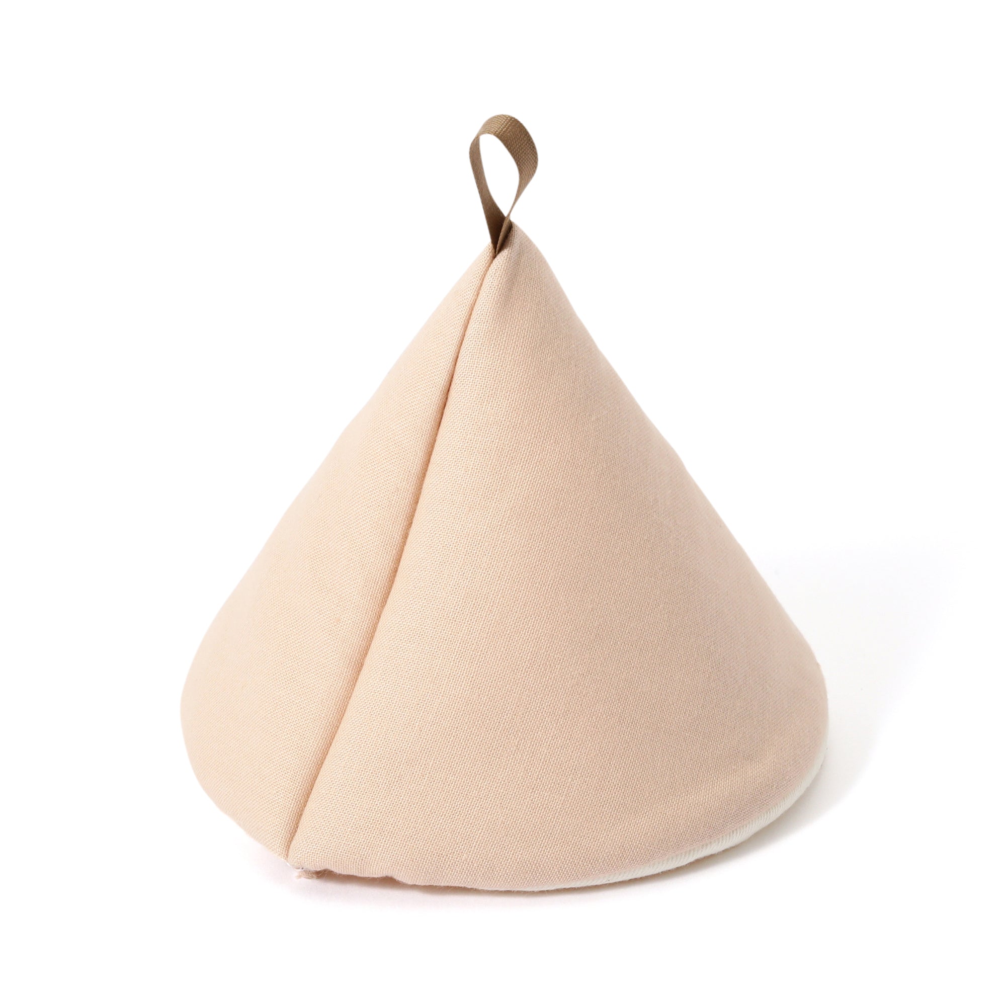シンプルな色合いがかわいい三角錐型の鍋つかみです。土鍋やスキレットにも使える大きめサイズで、いろんな場所で活躍してくれます。ころんとした三角形が鍋の蓋や取っ手にぴったりはまり、機能性も抜群。ふんわりとした触り心地です。便利な紐つきで、さっと壁に吊るせばキッチンにリズムと彩りを添えてくれます。同色で揃えたり、お好きな組み合せを選んでプレゼントするのもおすすめです。
