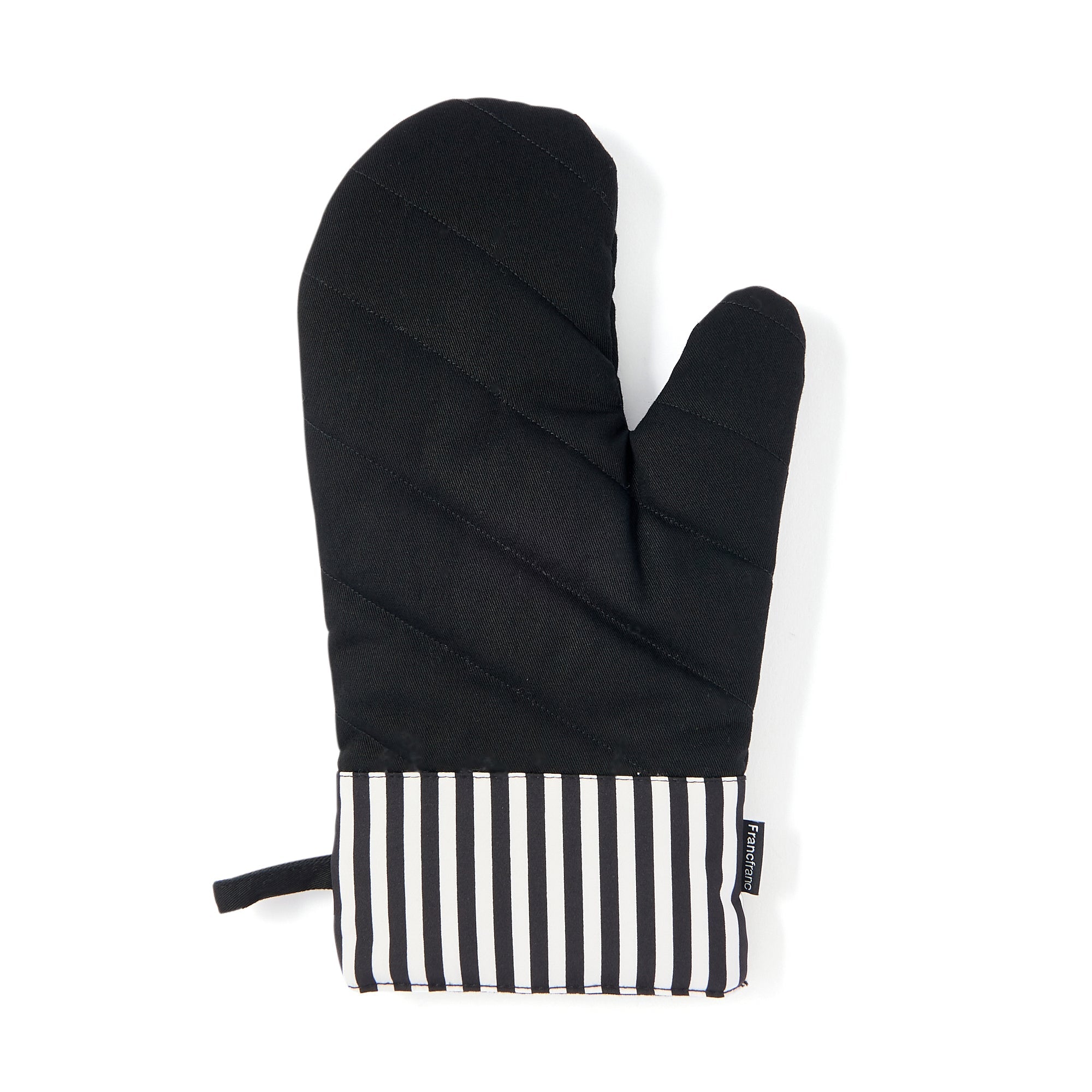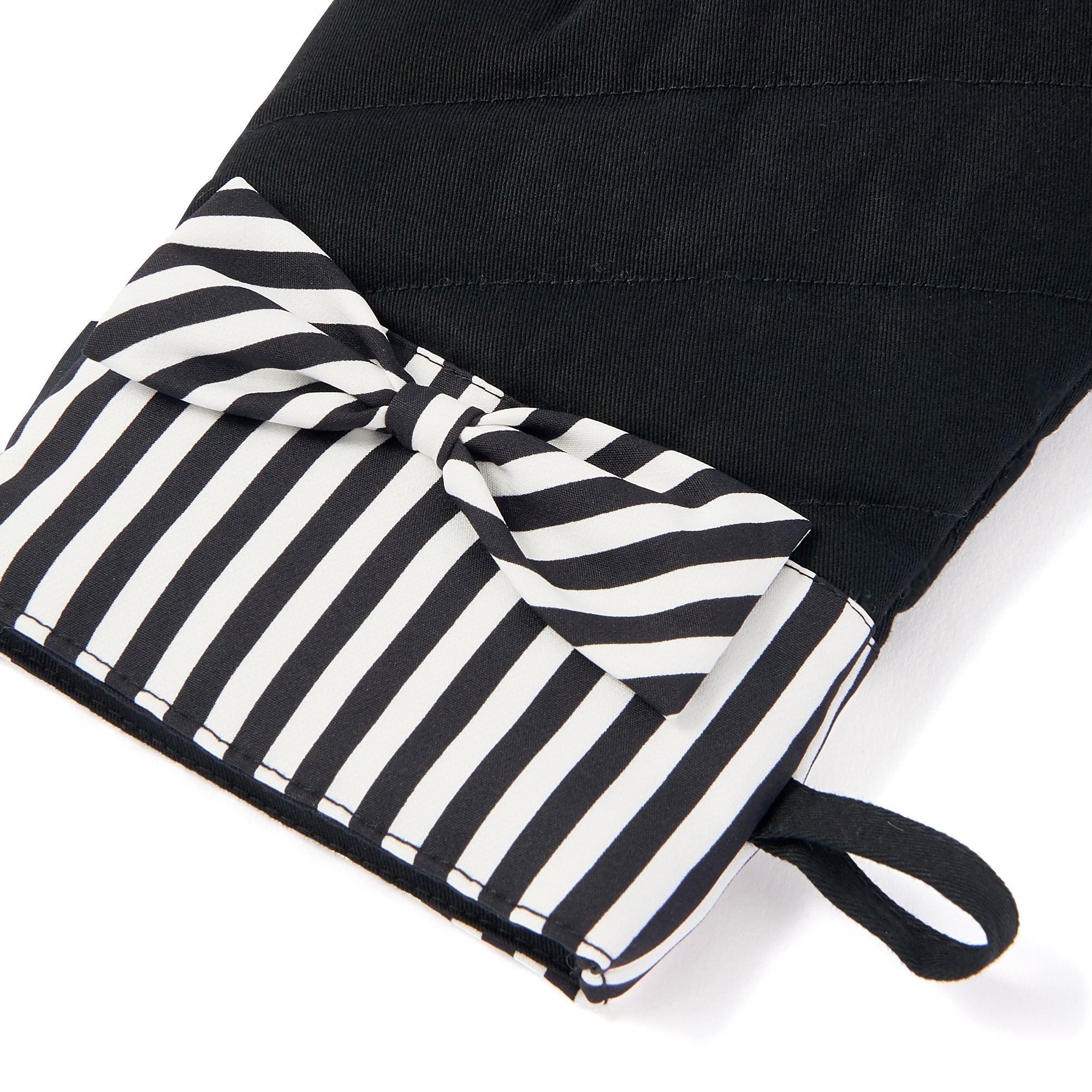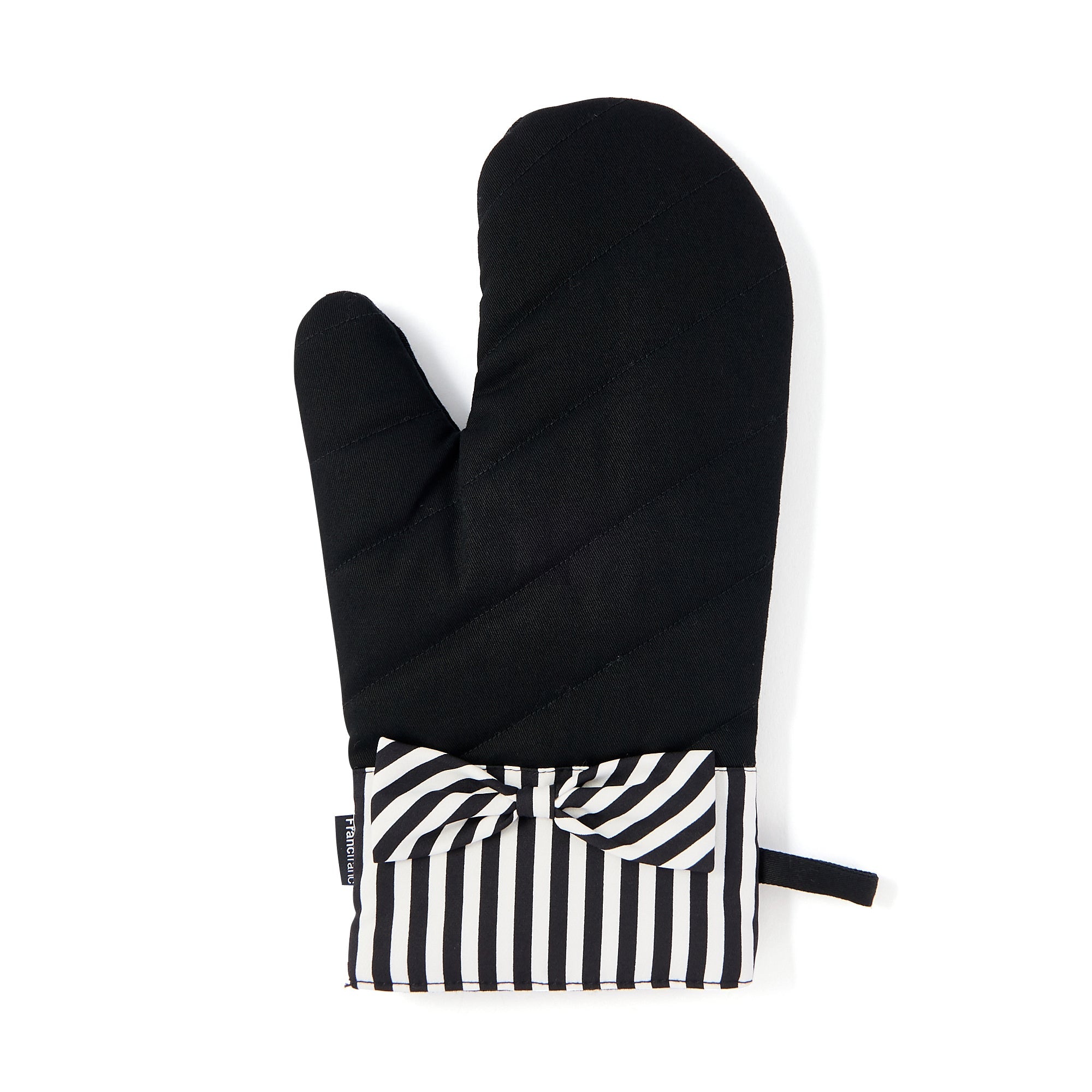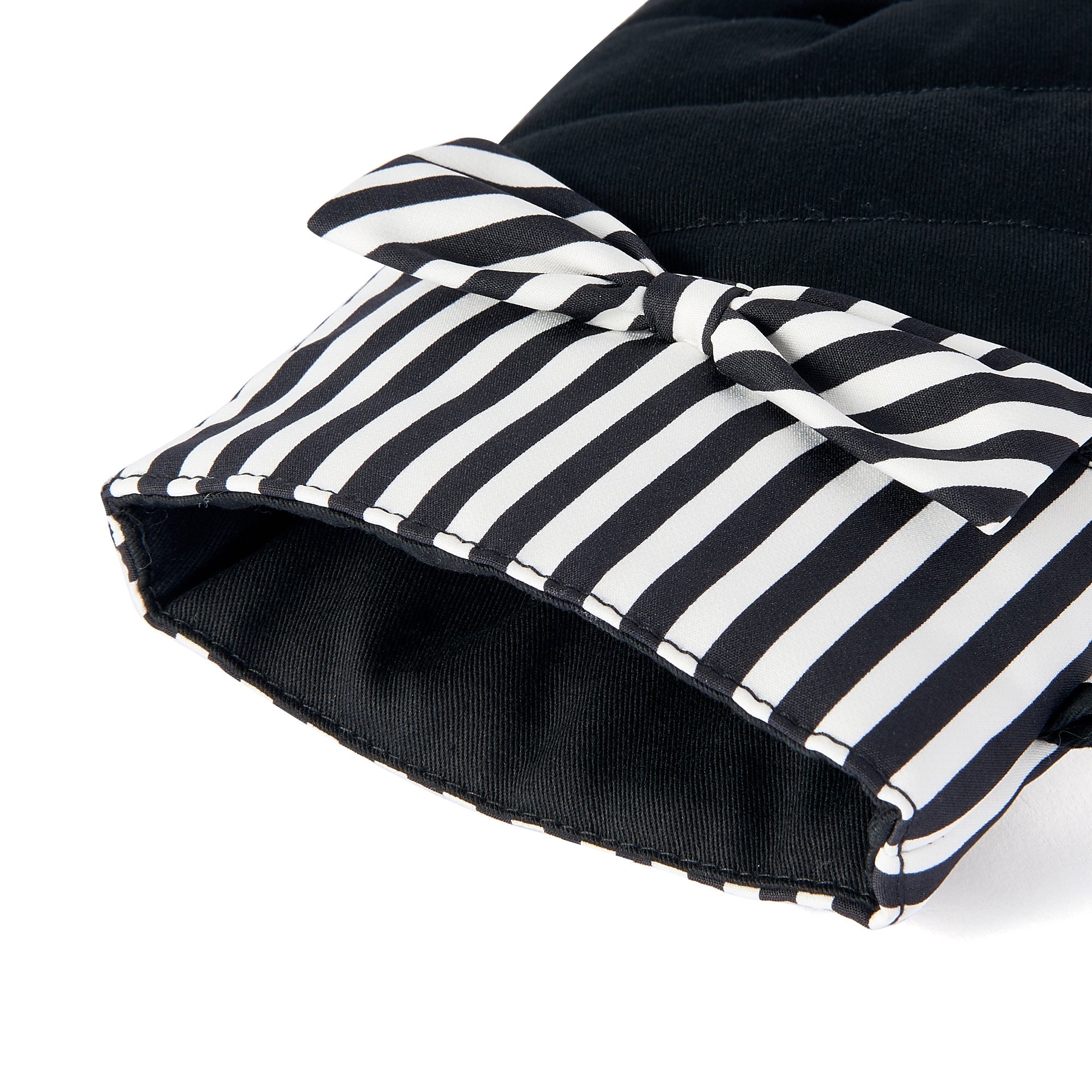 ストライプ柄がキュートなミトンです。人気のストライプリボンフルエプロンとおそろいの柄なので、セットでコーディネートするとキッチンに統一感が生まれておしゃれ度がぐっと上がります。どなたでも使いやすいモノトーンはギフトにもおすすめです。