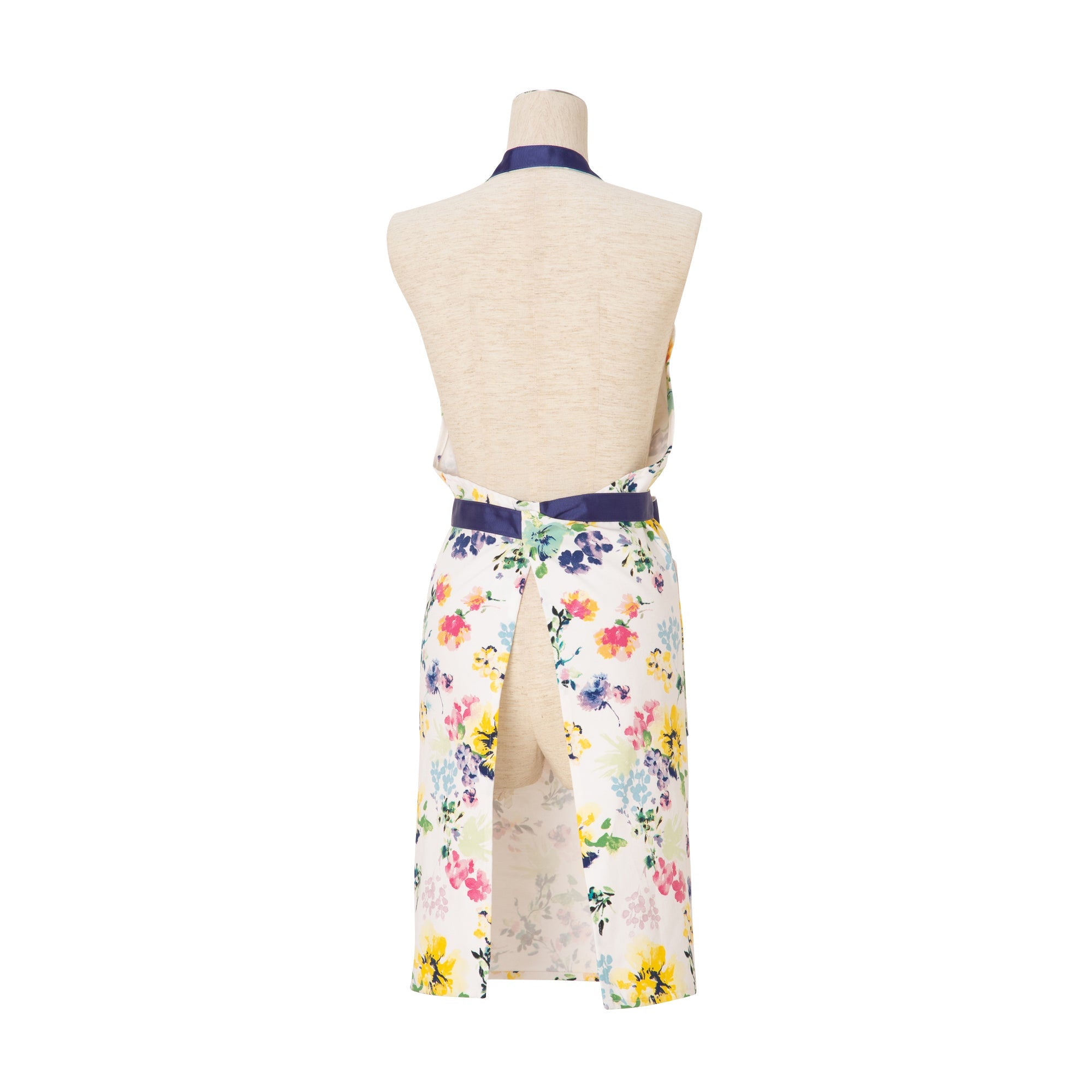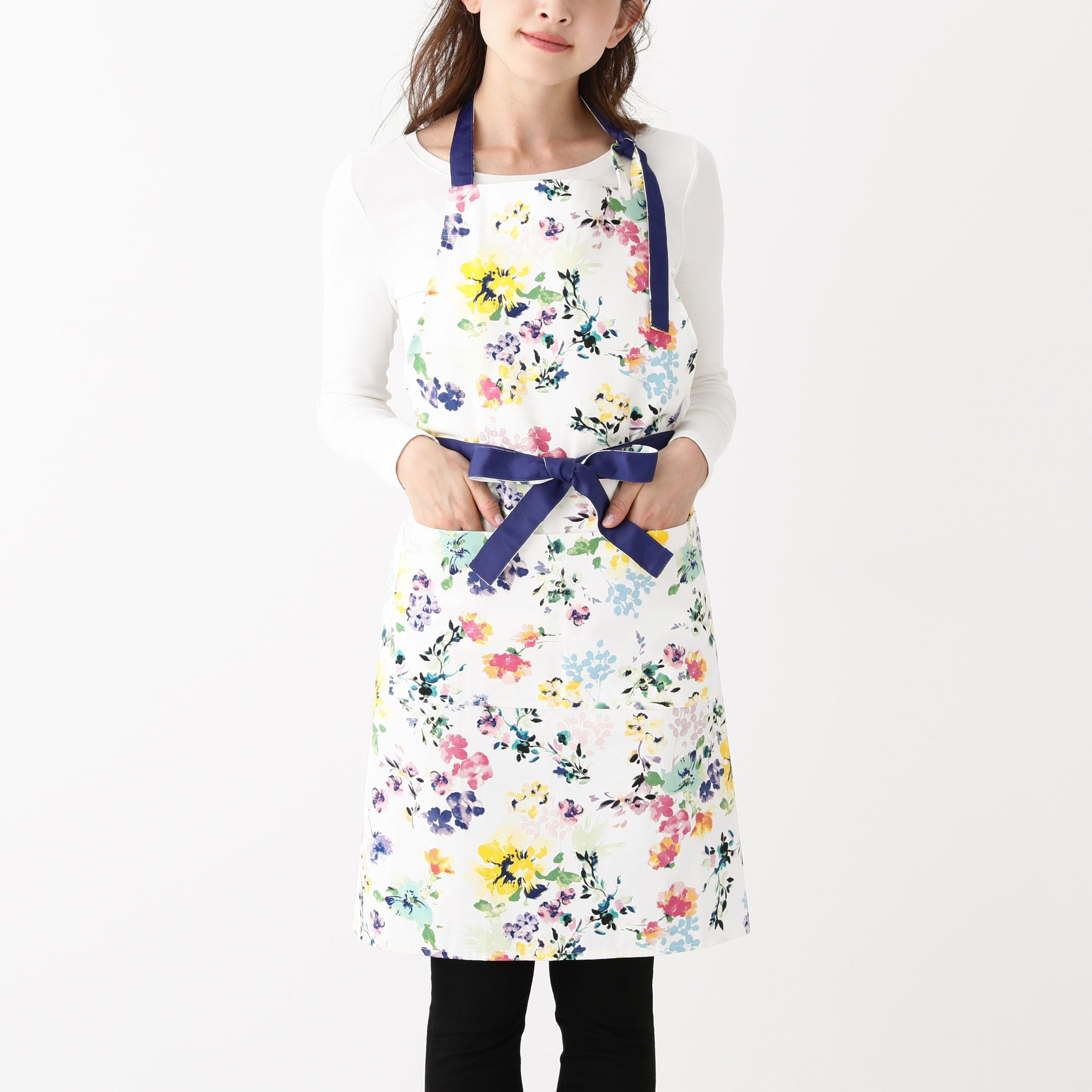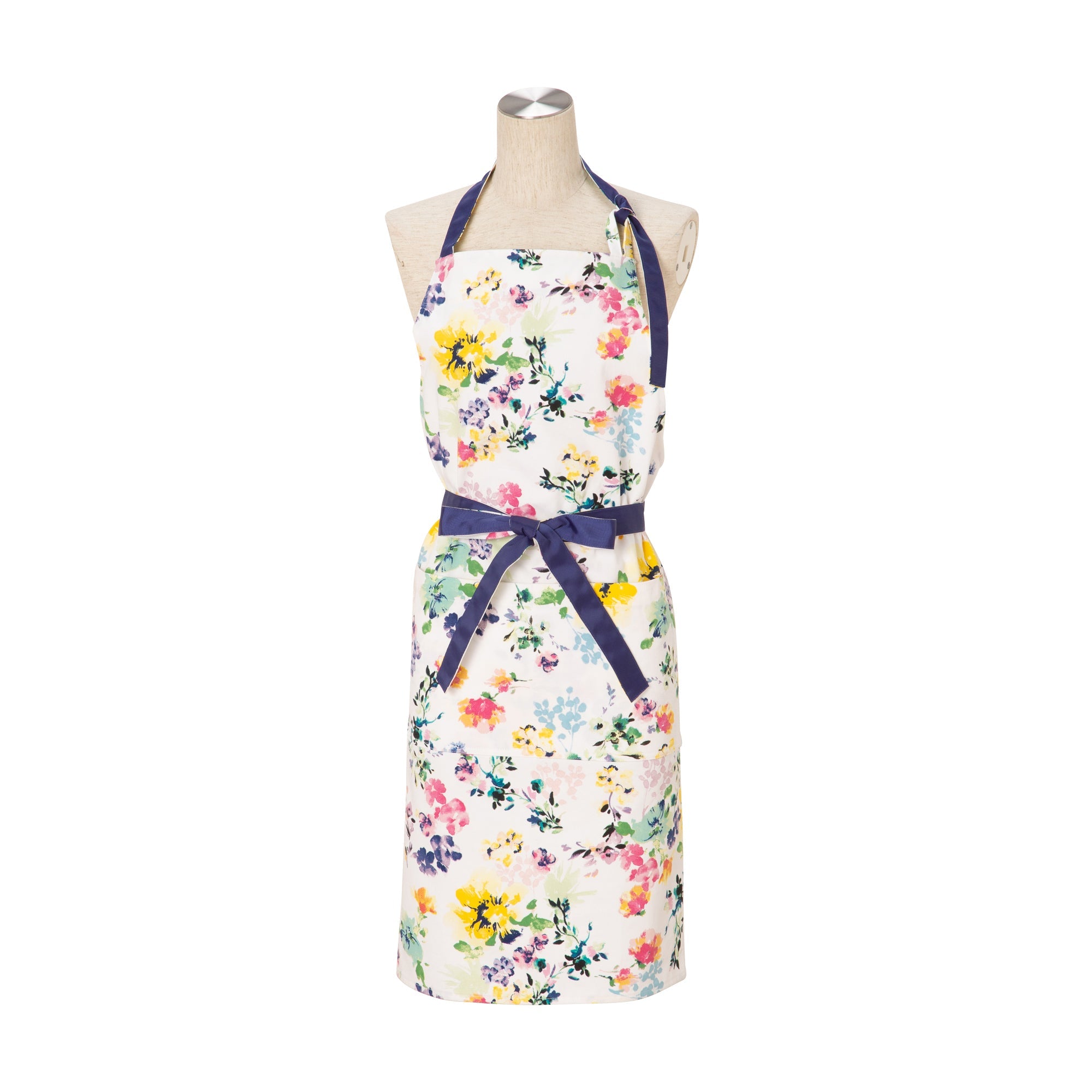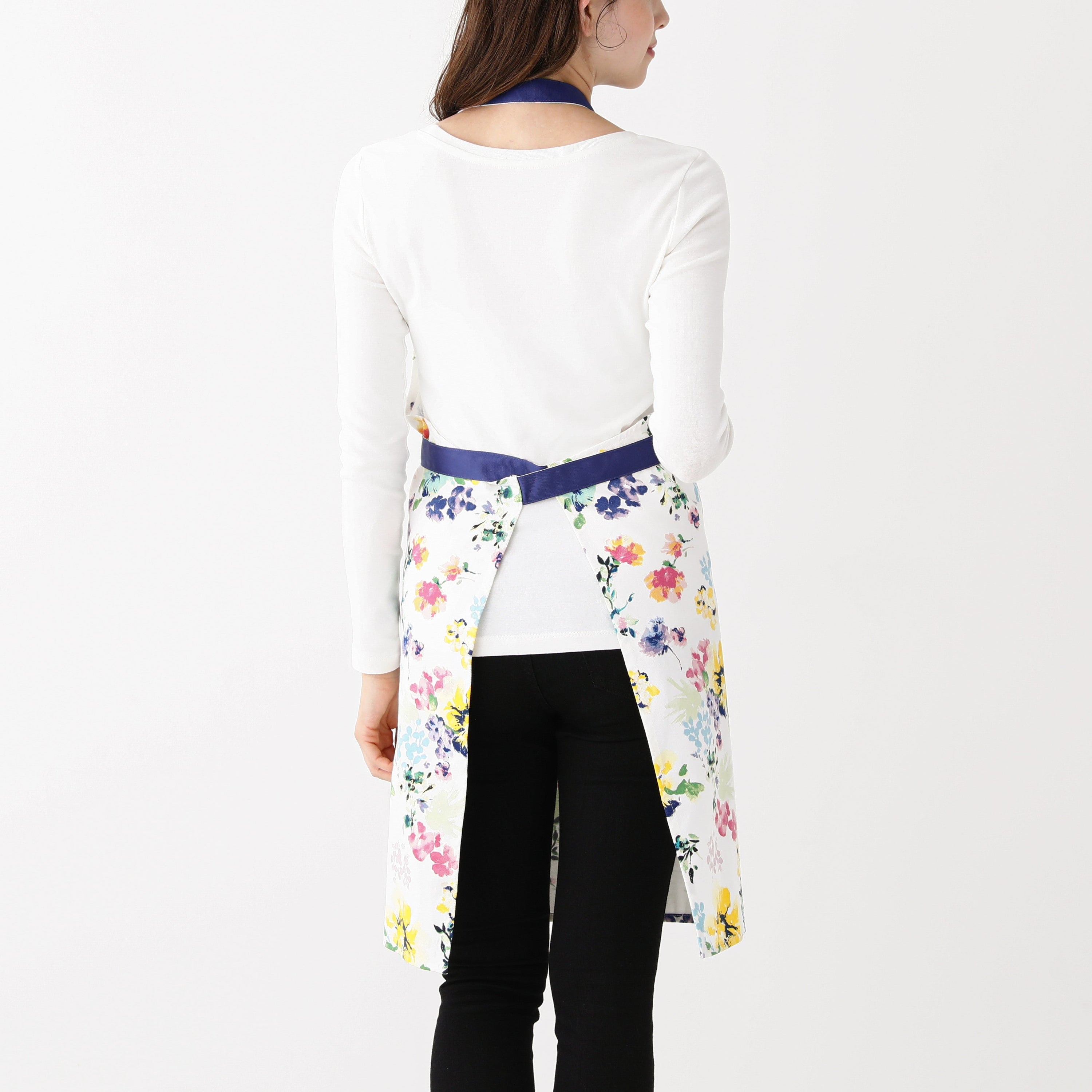 シュシュボトルと同じ花柄のエプロンです。シンプルな形なので幅広い年齢層の方が違和感なくお使いいただけます。ギフトにする際は同柄のシュシュボトルとセットがおすすめです。