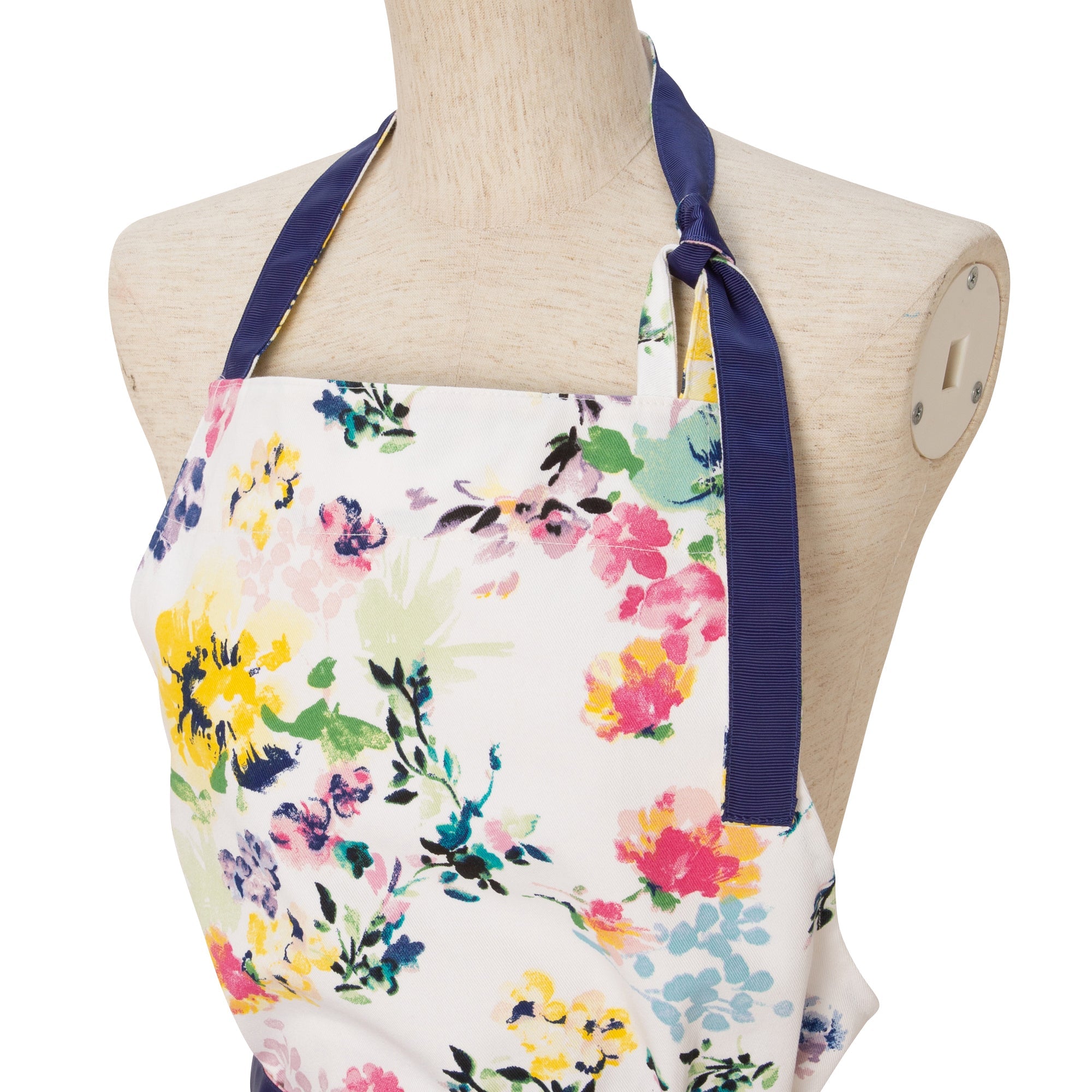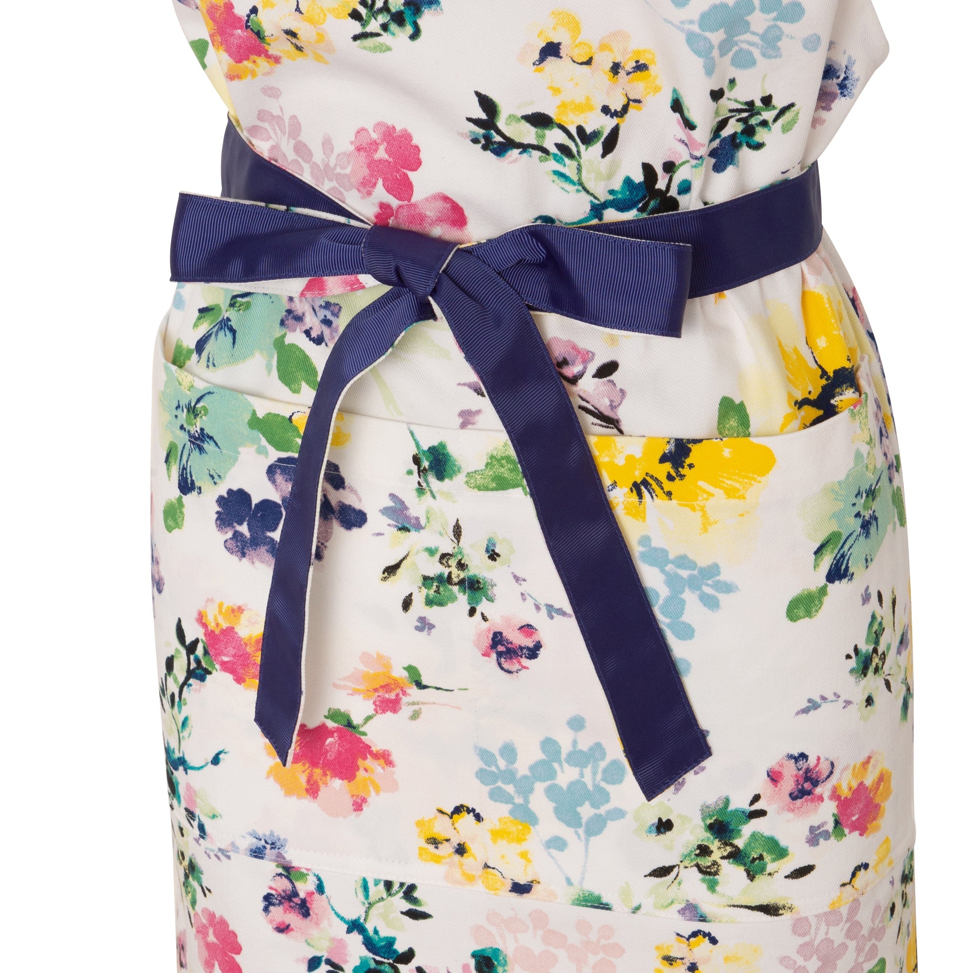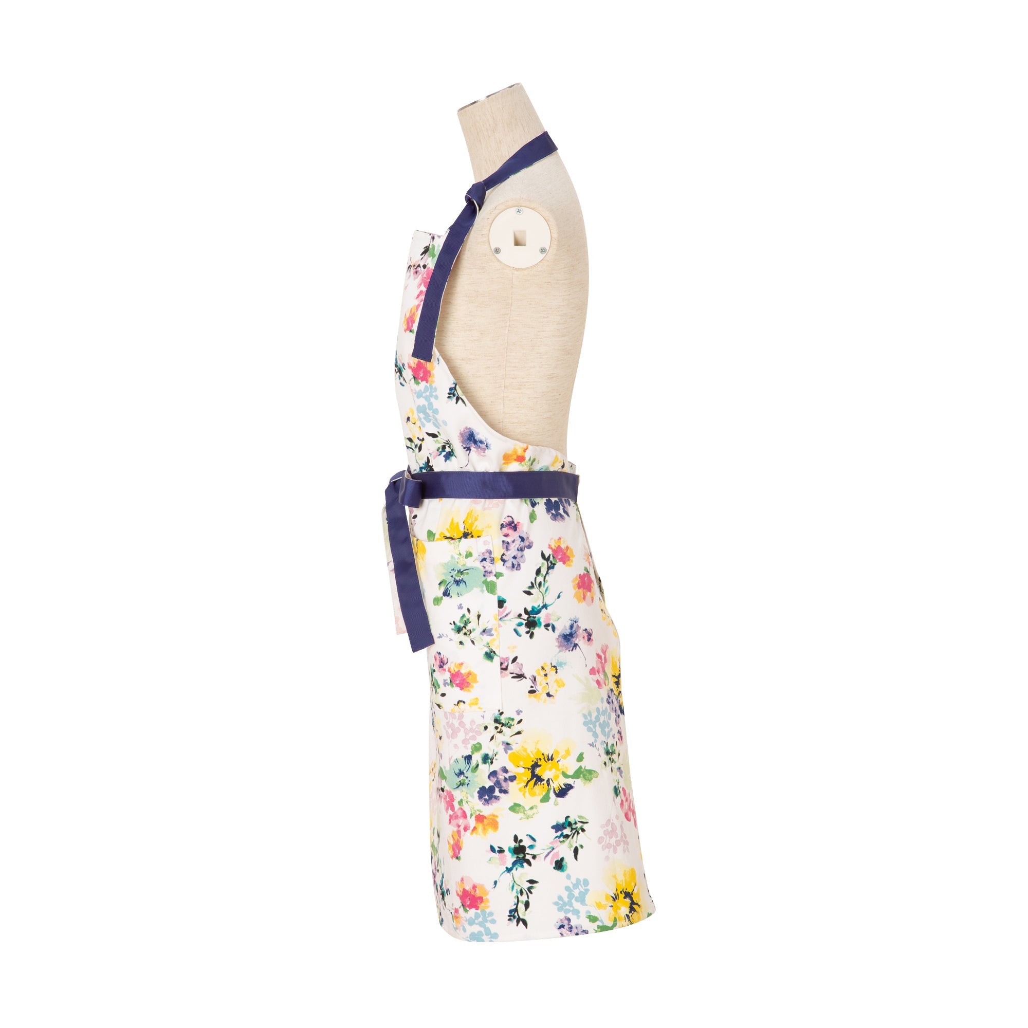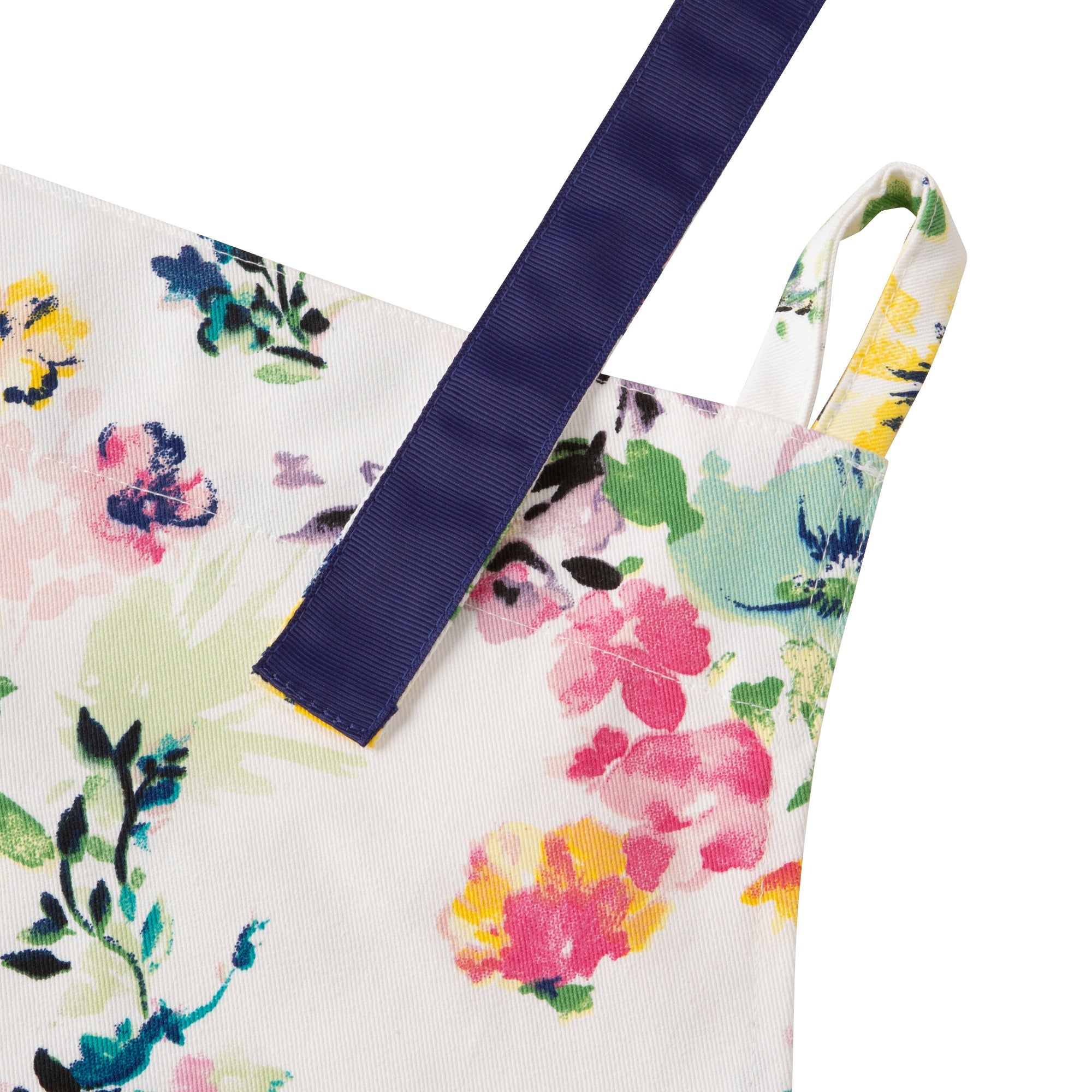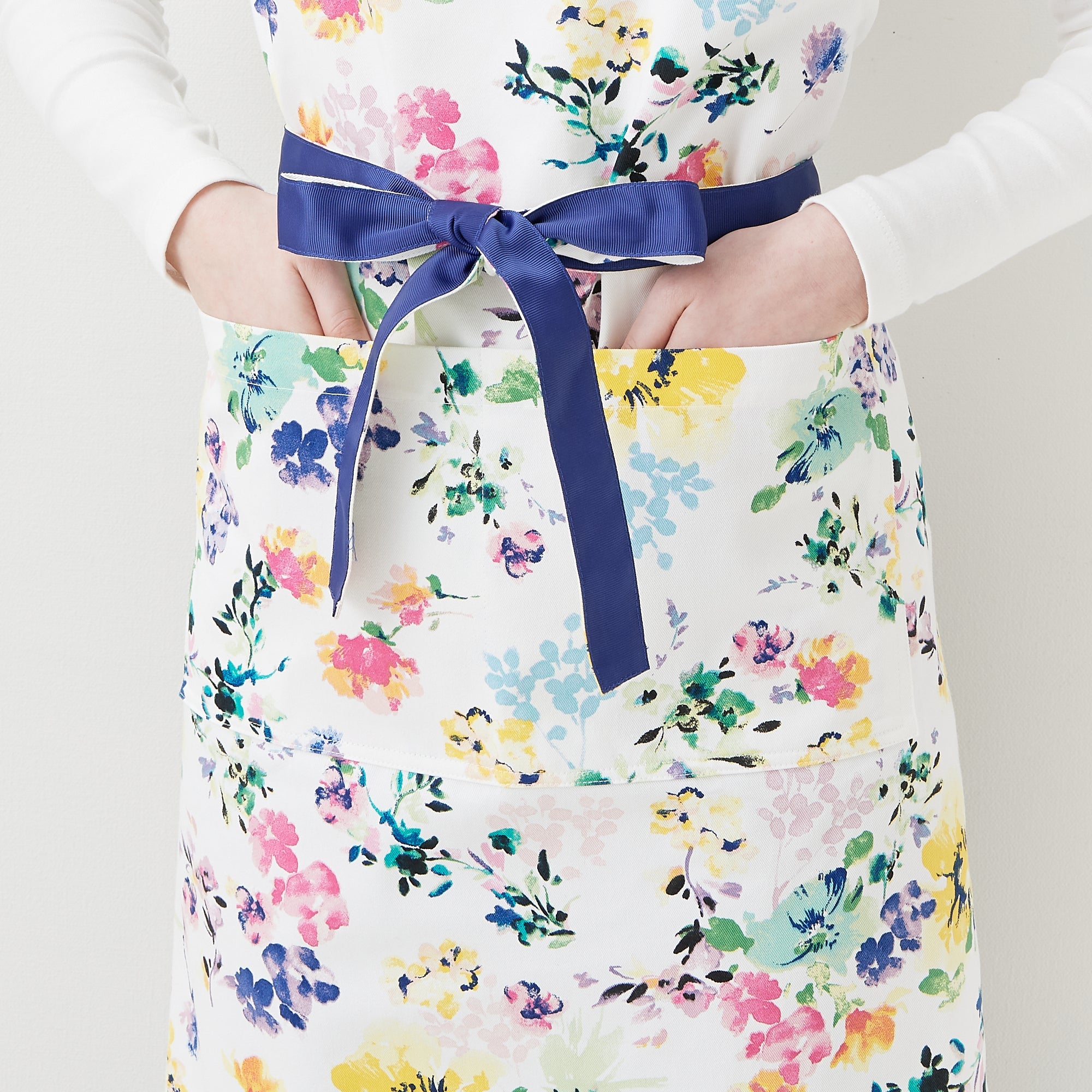 シュシュボトルと同じ花柄のエプロンです。シンプルな形なので幅広い年齢層の方が違和感なくお使いいただけます。ギフトにする際は同柄のシュシュボトルとセットがおすすめです。