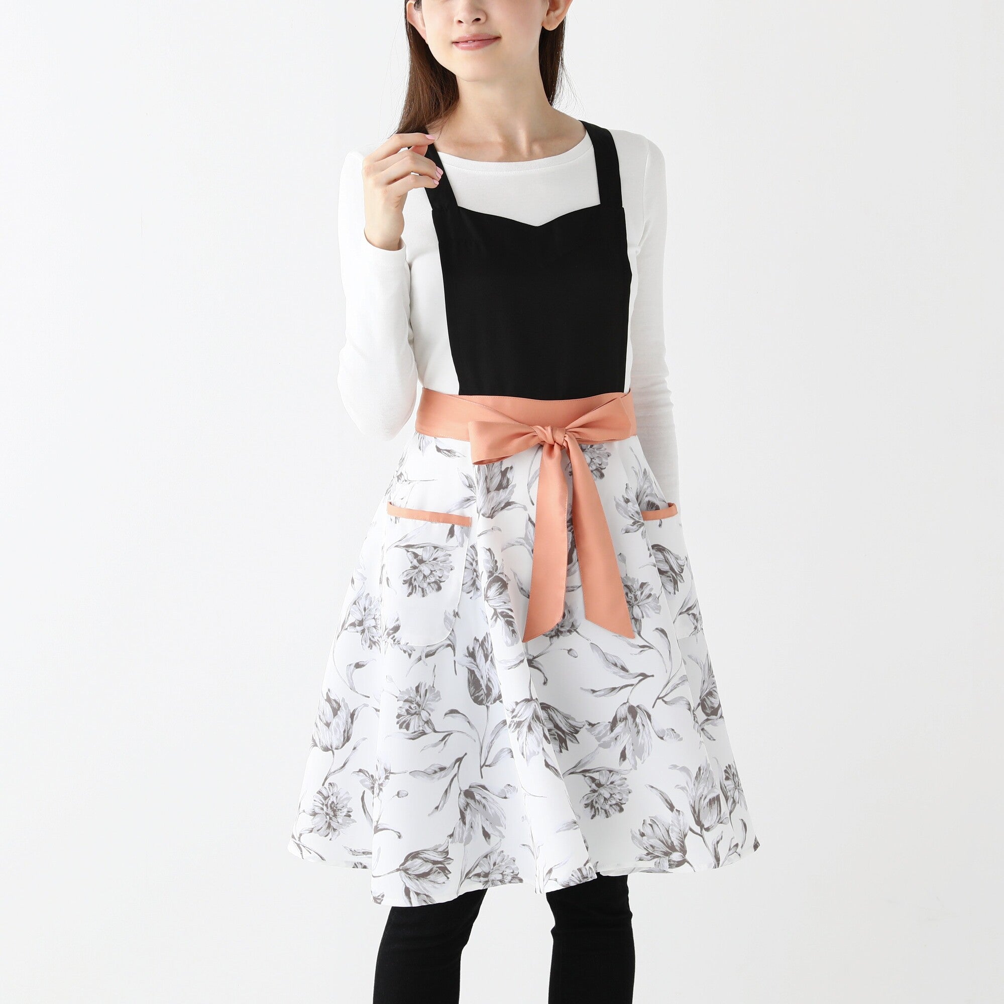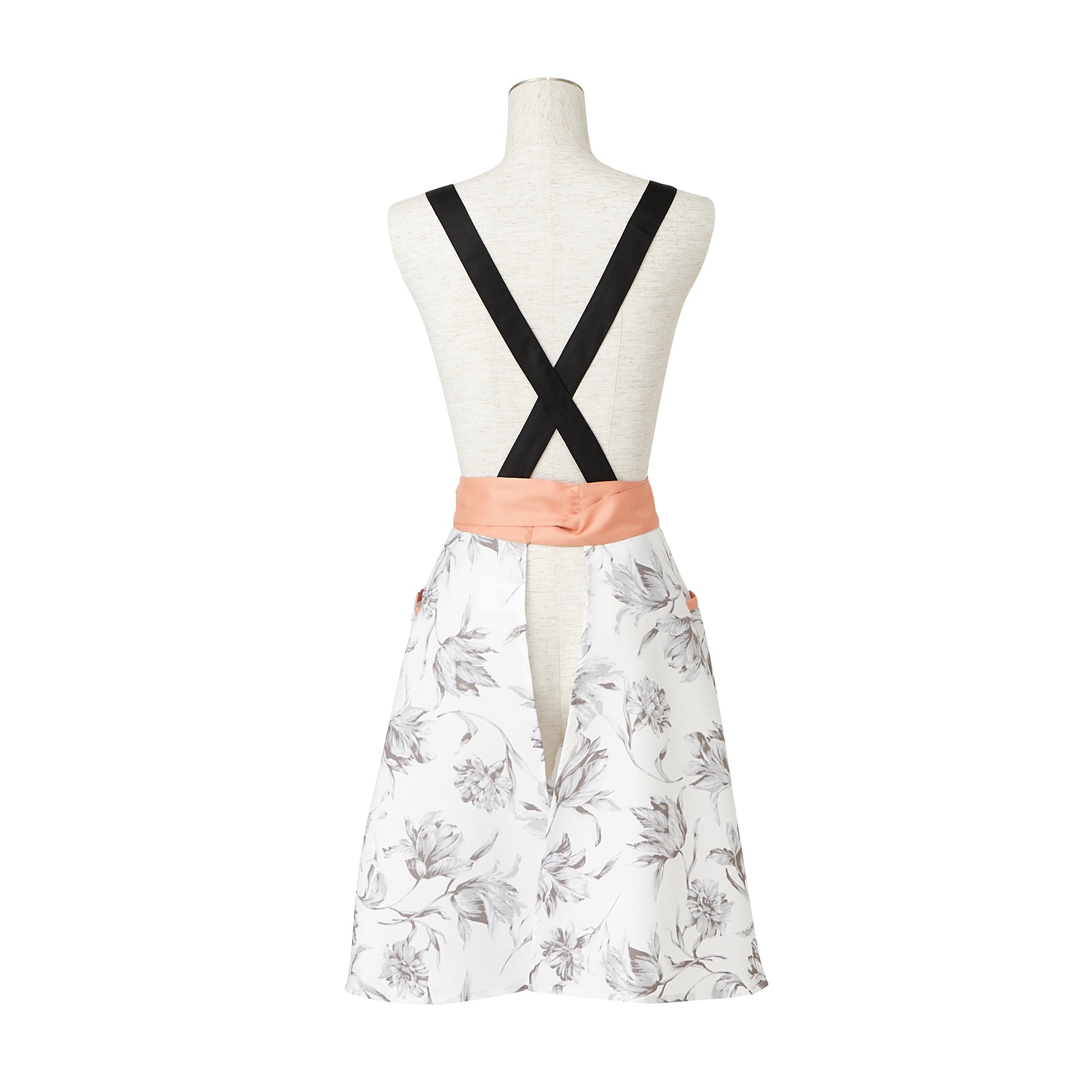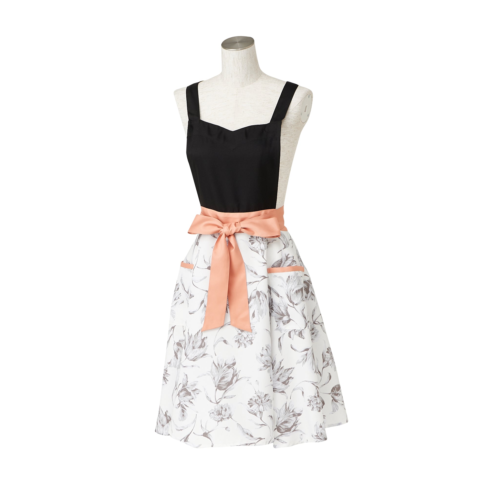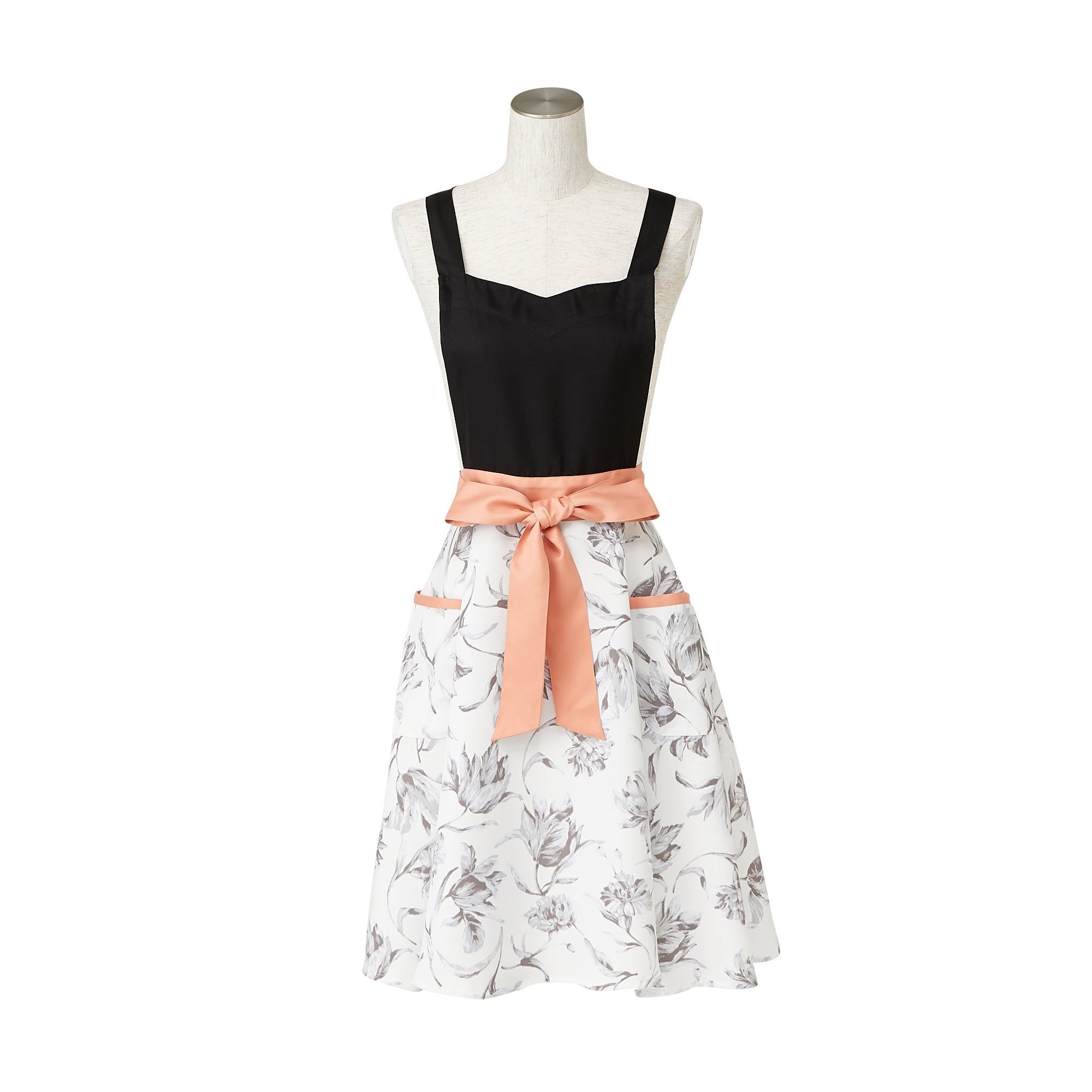 無地と柄の切り替えが華やかなデザインのエプロンです。作業に便利なポケットが2つ付いていて機能性抜群なうえ、肩掛けタイプで肩こりが気になる方にもおすすめ。ポリエステル素材なので軽い着心地でシワにもなりにくく、乾きやすいので日常使いにも最適です。胸もとのハート型と大ぶりな花柄がフェミニンなアイテムです。