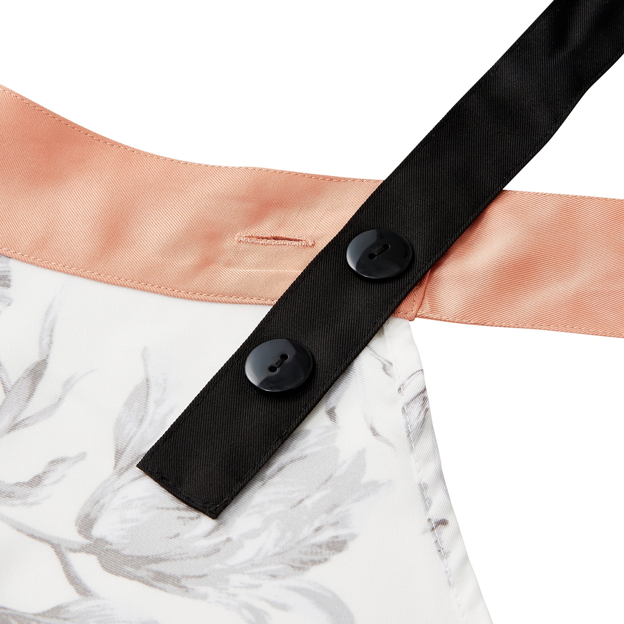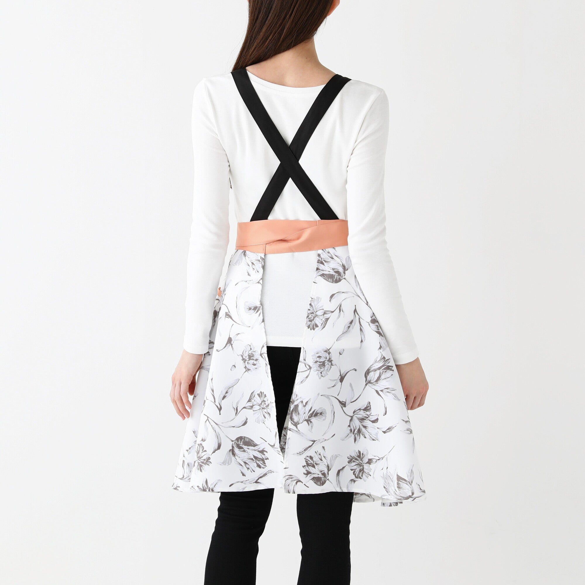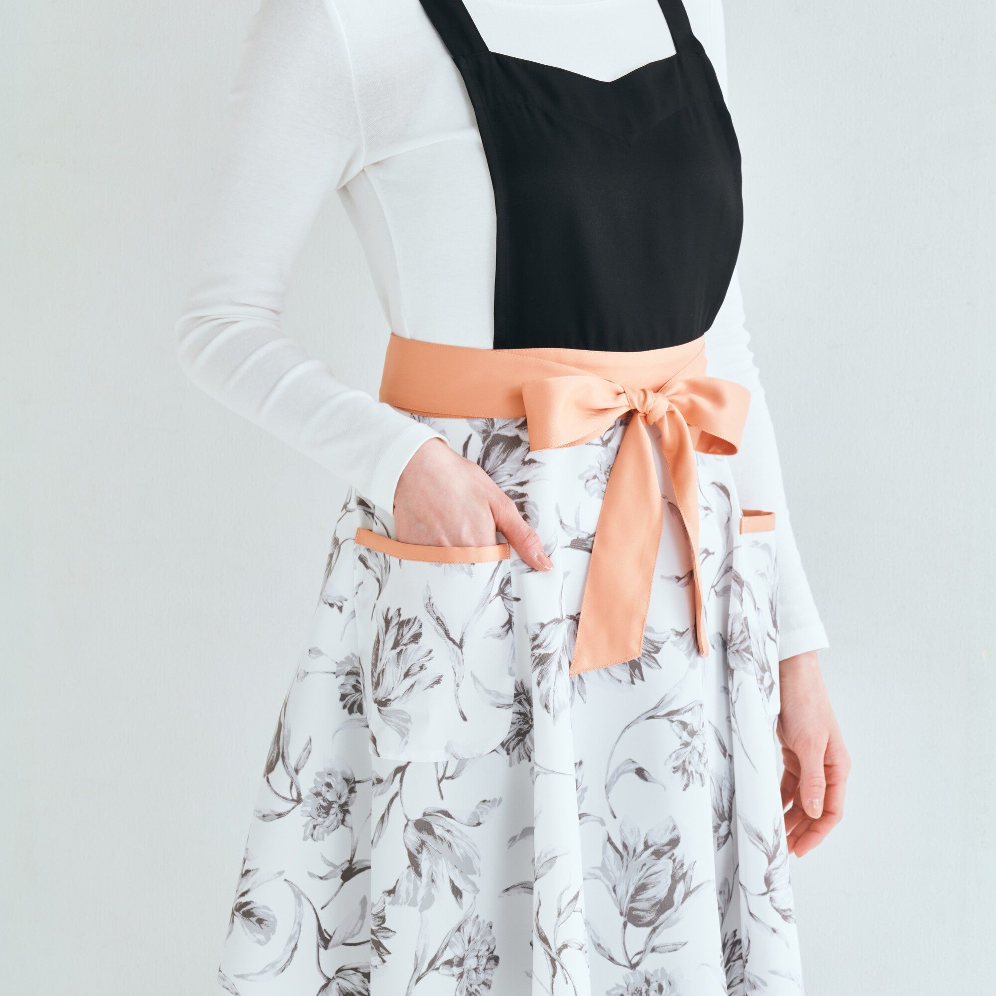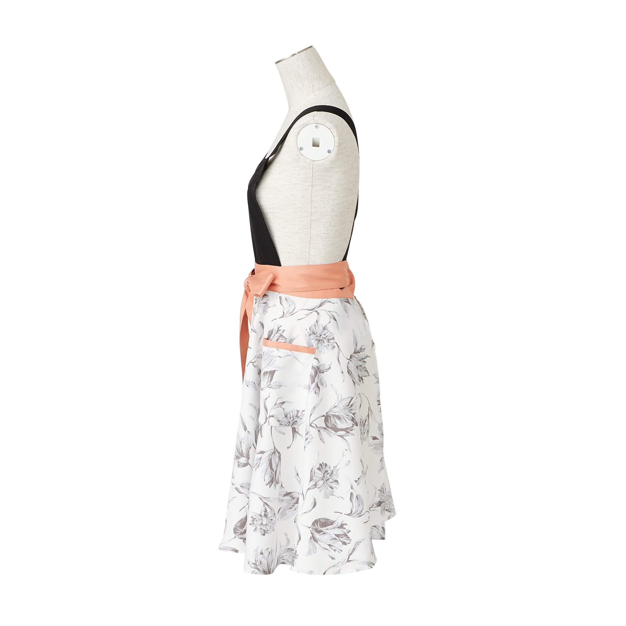 無地と柄の切り替えが華やかなデザインのエプロンです。作業に便利なポケットが2つ付いていて機能性抜群なうえ、肩掛けタイプで肩こりが気になる方にもおすすめ。ポリエステル素材なので軽い着心地でシワにもなりにくく、乾きやすいので日常使いにも最適です。胸もとのハート型と大ぶりな花柄がフェミニンなアイテムです。