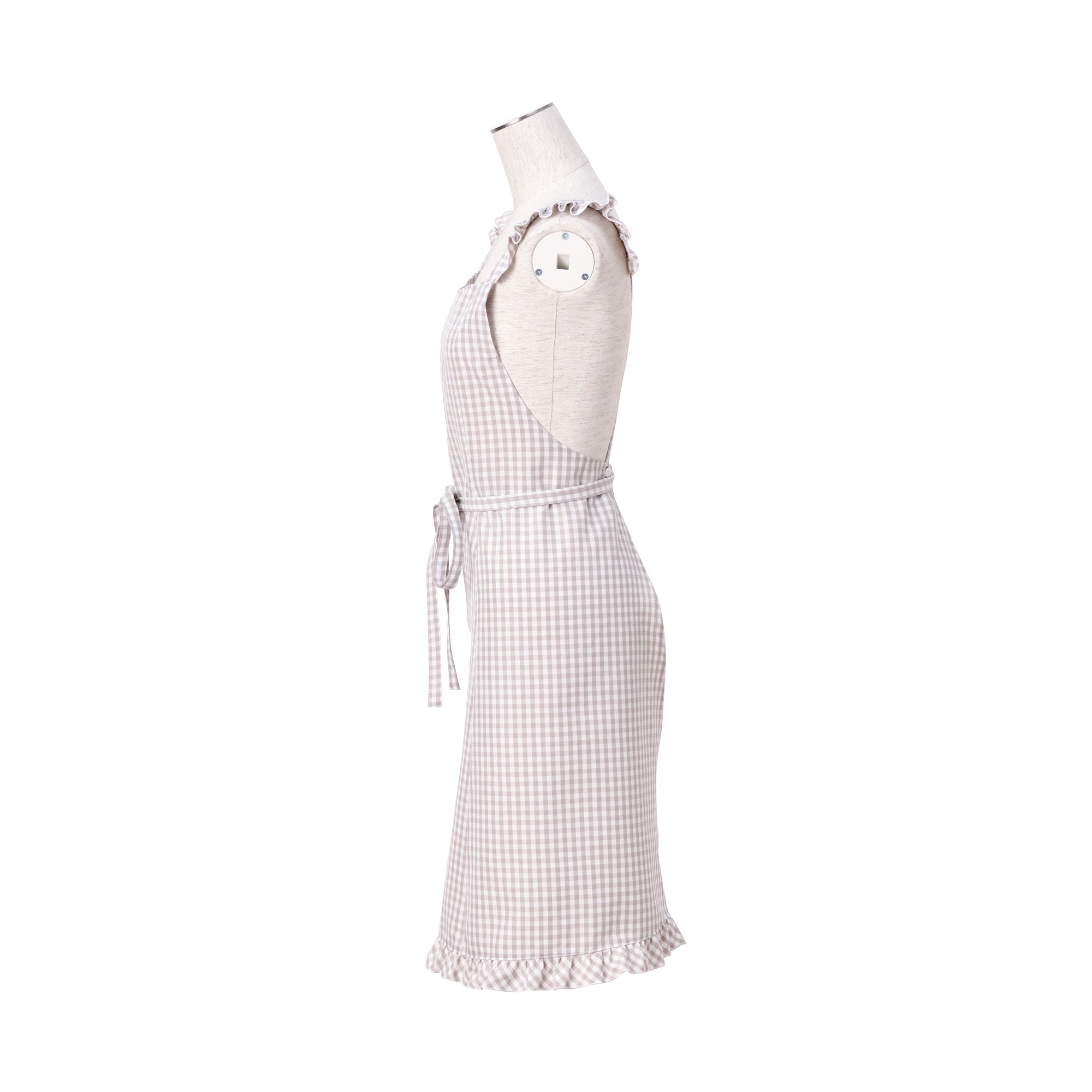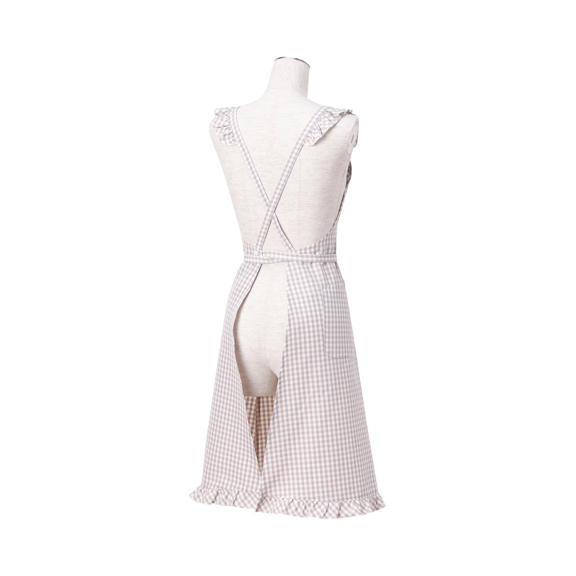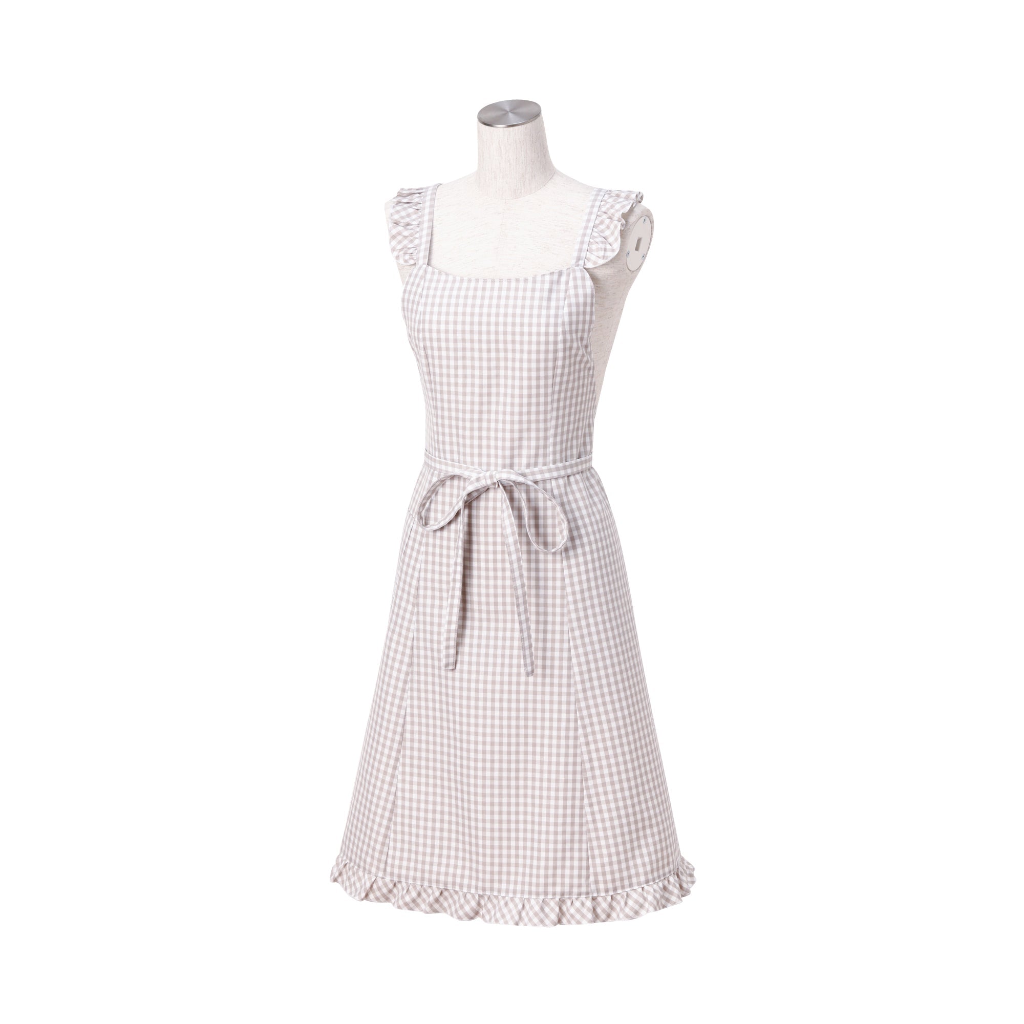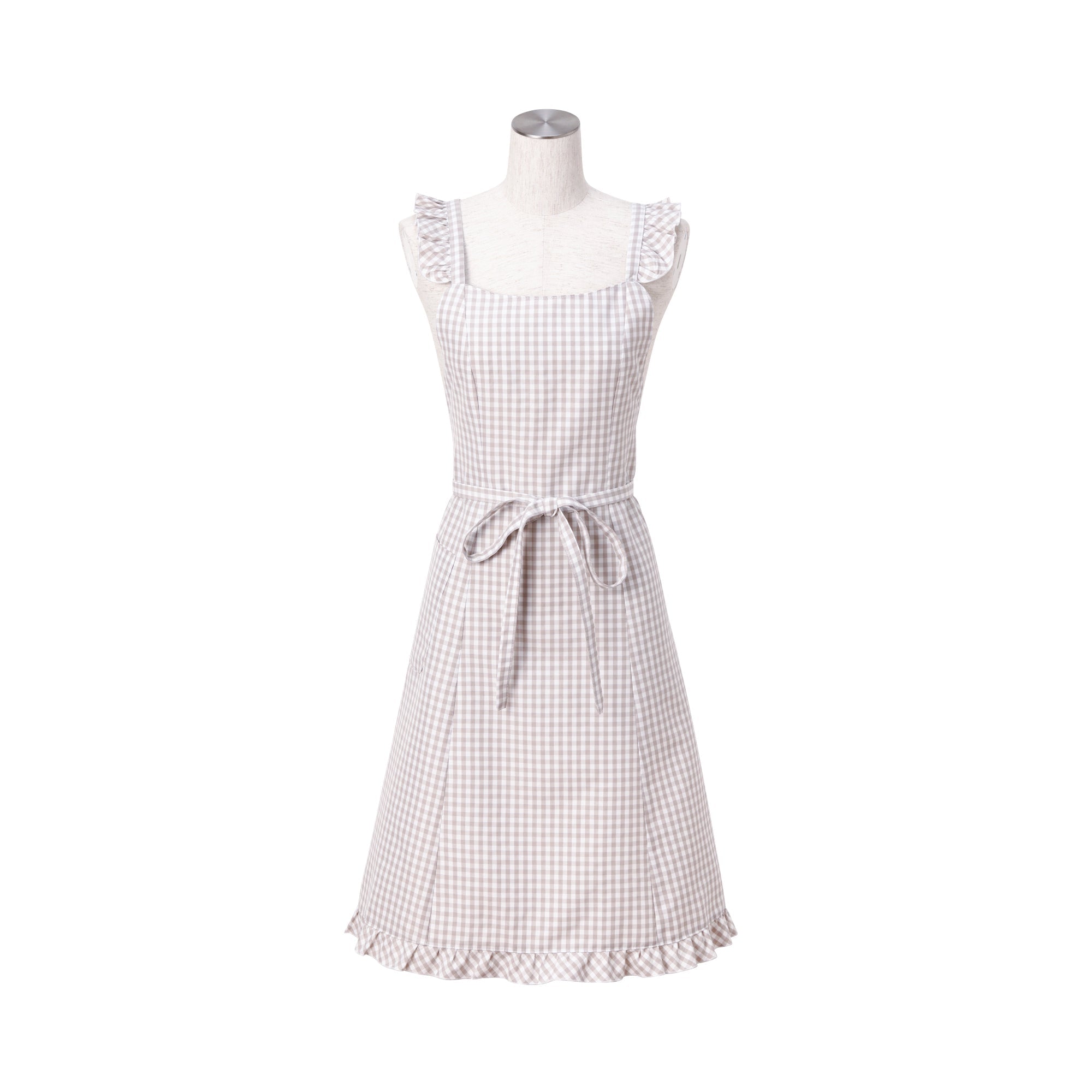 チェック柄のエプロンにフリルがついていて、思わず気分が上がるかわいいエプロンです。派手すぎないフリルデザインは、普段シンプルなものが多いという方も取り入れやすいアイテムです。新生活をはじめる方の最初の1枚にぴったりです。