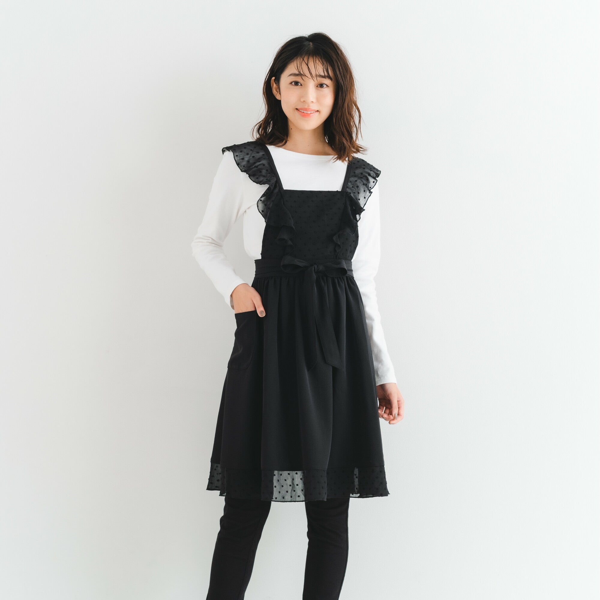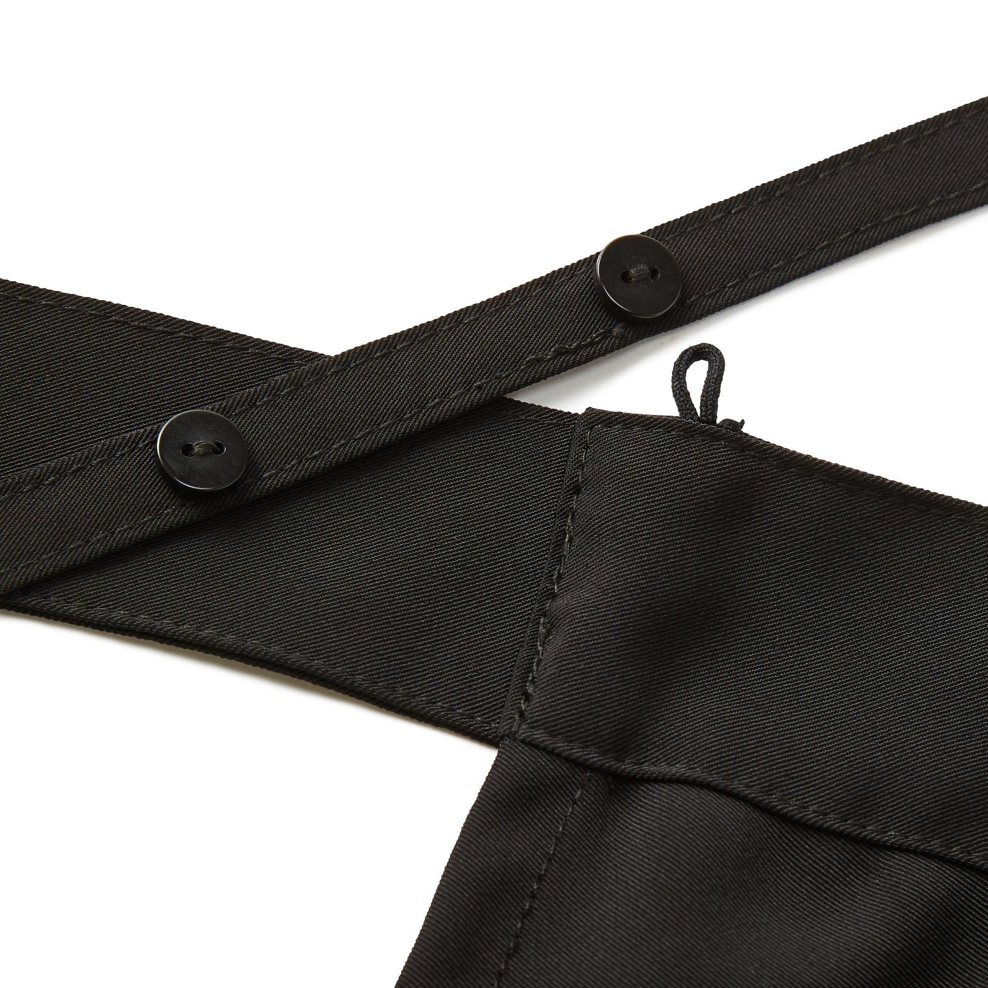 人気のカットジャカードのシンプルフェミニンなエプロンです。腰紐にはポイントとしてパイピングを施しております。ポリエステル素材でシワになりにくく軽いエプロンです。