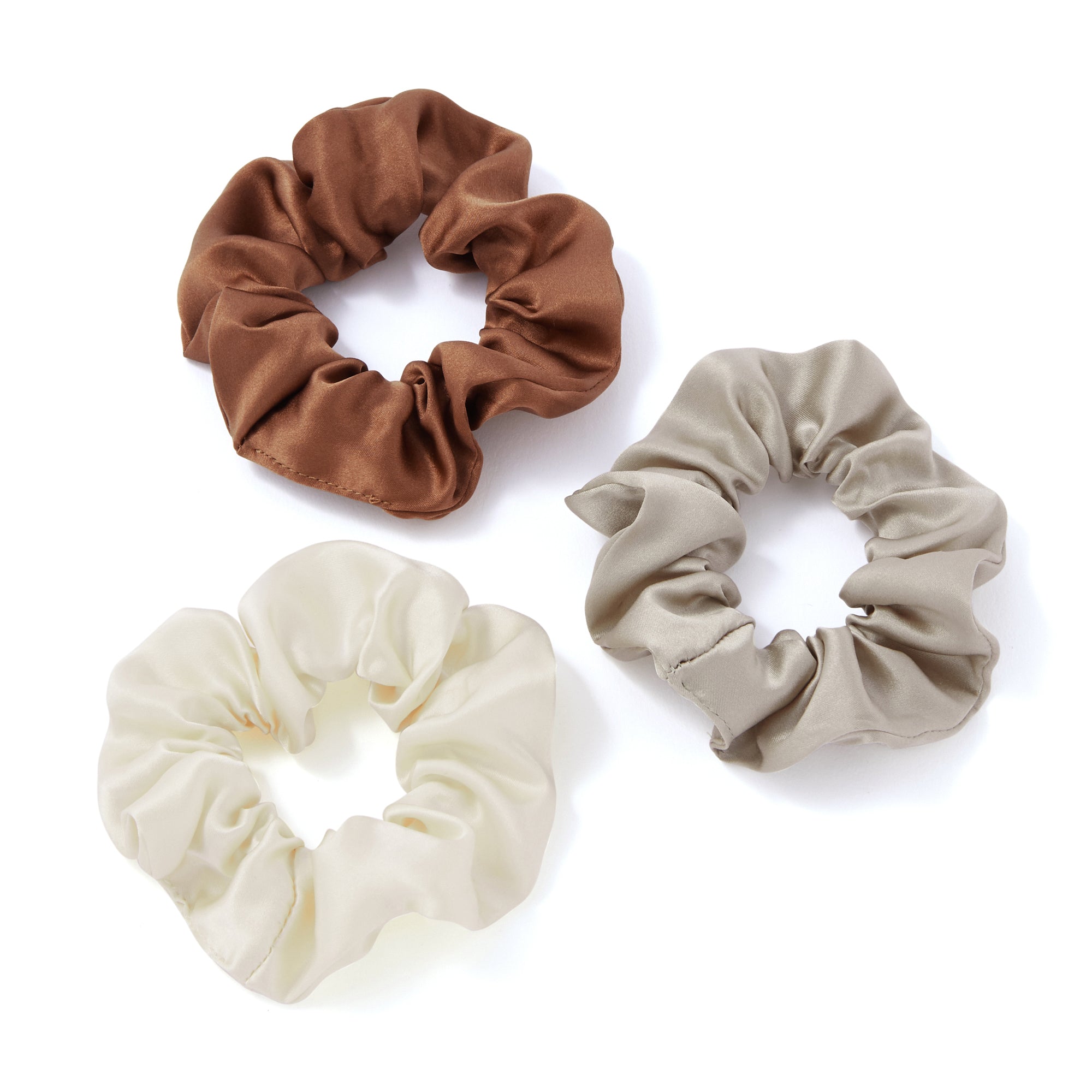 シルク素材のシュシュです。日常から髪のダメージを抑えたい方におすすめです。3色セットで、洋服に合わせてカラーを選べます。