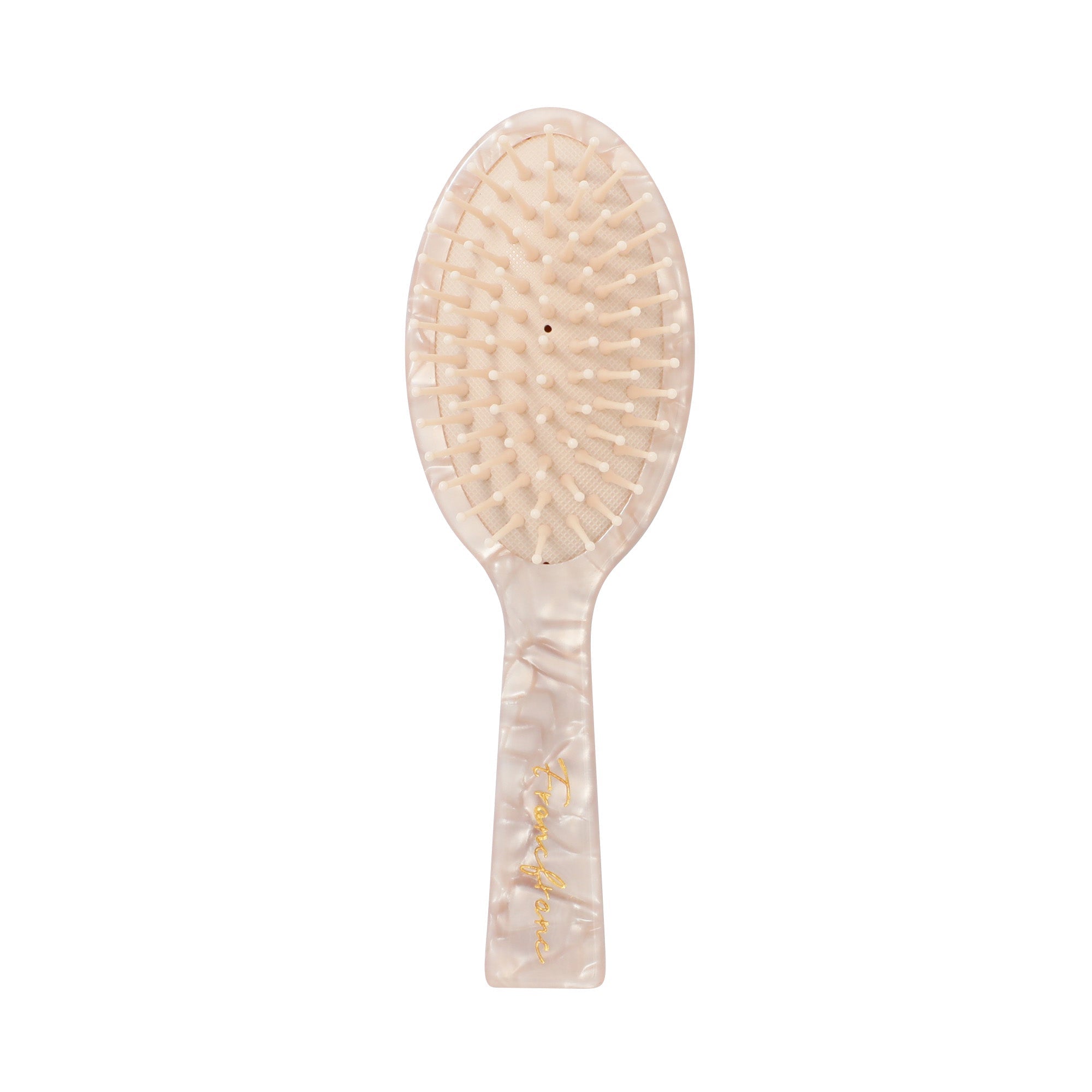 メイクスペースのアクセントになるようなデザインのヘアブラシです。小さいながらもしっかり髪の毛をとかせます。持ち運びする際や、メイクボックスに入れる際にも便利なサイズです。
