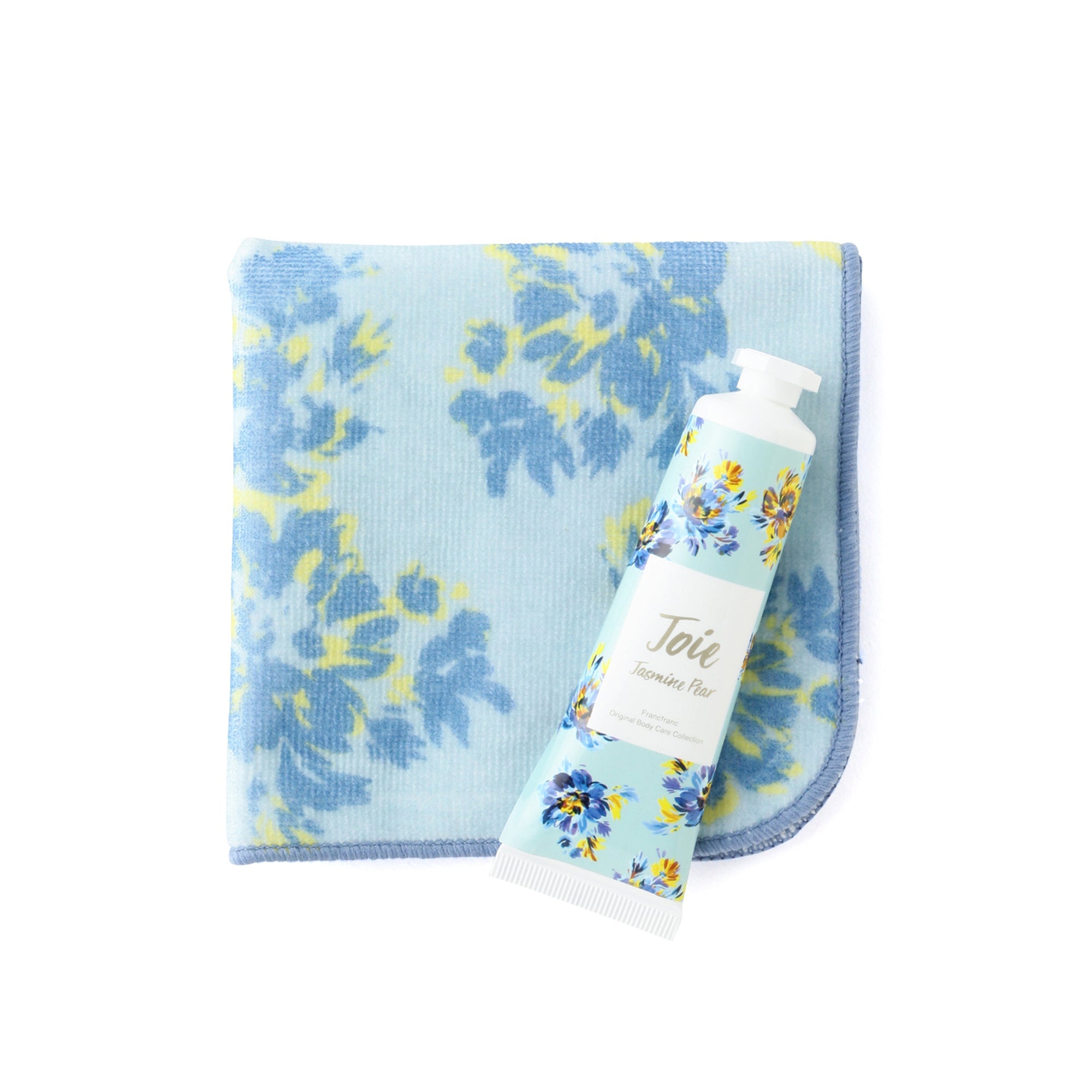 ふんわり香るハンドクリームとやさしい手触りのハンドタオルのセットです。ジャスミンペアの香りがほんのり香って、リラックスタイムはもちろん、仕事中や勉強中のリフレッシュにもぴったり。キャッチーな三角錐のパッケージ入りで大切な方への贈り物にぴったりです。サイズパッケージ:W100×D100×H160mmハンドタオル:ハンドクリーム:30g素材ハンドタオル:綿100% ハンドクリーム:水、シクロペンタシロキサン、ステアリン酸等カラーBL品番 1105030011350 全国一律550円(税込)です。雑貨の商品金額合計が5,000円(税込)以上の場合、送料無料で配送いたします。※手数料、ラッピング料、付帯サービス料は含みません。※新生活期・年末年始は出荷や配送の繁忙期となるため、日時指定をいただいてもご希望日時通りお届け出来ないことがございます。<ハンドタオル>●洗濯:可(弱40度)●ドライクリーニング:不可■タンブル乾燥:不可■アイロン:不可■本来の用途以外には使用しないでください。■直射日光やライトに長時間照らされると、変色する場合があります。■素材の特性上、毛羽立ち・毛羽落ち・パイル抜けが発生することがあります。濃色の場合、特に毛羽落ちを強く感じることがあります。■初め数回のお洗濯には柔軟剤の使用はお避けください。■摩擦や水洗いにより色落ちしたり、他に色移りすることがあります。■くず取りネットと洗濯ネットを併用し、単独洗いをしてください。■濡れた状態で長時間放置しないでください。■お洗濯により多少縮みます。■漂白の際は液体酸素系漂白剤をご使用ください。■タンブル乾燥は避け、形を整えて陰干しをして下さい。■製法の特性上、糸が飛び出している場合がありますが引っ張ったり引っ掛けたりしないでください。■火気の近くや、高温多湿になる場所、直射日光を避けて保管してください。<ハンドクリーム>■本来の用途以外には使用しないでください。■お肌に異常が生じていないかよく注意して使用してください。化粧品がお肌に合わないとき即ち次のような場合には、使用を中止してください。そのまま化粧品類の使用を続けますと、症状を悪化させることがありますので、皮膚科専門医等にご相談されることをおすすめします。 (1)使用中、赤味、はれ、かゆみ、刺激、色抜け(白斑等)や黒ずみ等の異常があらわれた場合 (2)使用したお肌に、直射日光があたって上記のような異常があらわれた場合。■傷やはれもの、しっしん等、異常のある部位にはお使いにならないでください。■使用後は必ずしっかりキャップをしめてください。■チューブの口元が汚れた場合は、きれいに拭いてください。■衣服等につくとシミになることがあります。■乳幼児の手の届かないところに保存してください。■火気の近くや、極端に高温・多湿・低温の場所、温度変化の激しい場所、直射日光を避けて保管してください。■開封後はできるだけ早めに使い切るようにしてください。※廃棄の際は、各地方自治体の廃棄区分に従ってください。■原産国:ハンドクリーム 台湾、ハンドタオル 中国