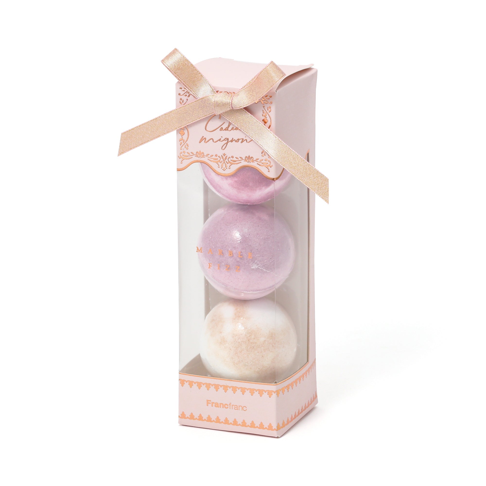 マーブル柄の丸いバスフィズ3個セットです。そのままギフトにできるデザインで結婚式やホワイトデー、送別品や景品などのばらまきギフトにおすすめです。◆ピンク:ストロベリーの香り◆ミドルピンク:イングリッシュティーの香り◆ライトピンク:ローズの香り<ご使用方法>透明フィルムを外して浴槽のお湯(約200L)に1個入れ、よくかきまぜてご入浴ください。サイズ60g×3個、ボックス:W52×D57×H173mm素材炭酸水素Na、クエン酸、三リン酸5Na、硫酸Na、香料、セルロースガム、PEG-8、安息香酸デナトニウム、赤102、赤218、青1、黄4カラーPK品番 1105030030825 全国一律550円(税込)です。雑貨の商品金額合計が5,000円(税込)以上の場合、送料無料で配送いたします。※手数料、ラッピング料、付帯サービス料は含みません。※新生活期・年末年始は出荷や配送の繁忙期となるため、日時指定をいただいてもご希望日時通りお届け出来ないことがございます。■食べ物ではありません。■お肌に異常が生じていないかよく注意して使用してください。化粧品がお肌に合わないとき即ち次のような場合には、使用を中止してください。そのまま化粧品類の使用を続けますと、症状を悪化させることがありますので、皮膚科専門医等にご相談されることをおすすめします。 (1)使用中、赤味、はれ、かゆみ、刺激、色抜け (白斑等)や黒ずみ等の異常があらわれた場合 (2)使用したお肌に、直射日光があたって上記のような異常があらわれた場合■直射日光の当たる場所、極端な高温・低温の場所を避けて保管してください。■ペットやお子さまの手の届かないところで、ご使用・保管してください。■24時間風呂等機種によっては使用できないお風呂もあります。■お使いのお風呂の機種の説明書をご確認の上、ご使用ください。■残り湯は洗濯に使用できません。■入浴後は速やかに排水し、洗い流してください。■色や香りに変化が生じることがありますが、品質に問題ありません。■本品は誤食防止のため、口に入ったとき苦味を感じる仕様となっております。■原産国:中国