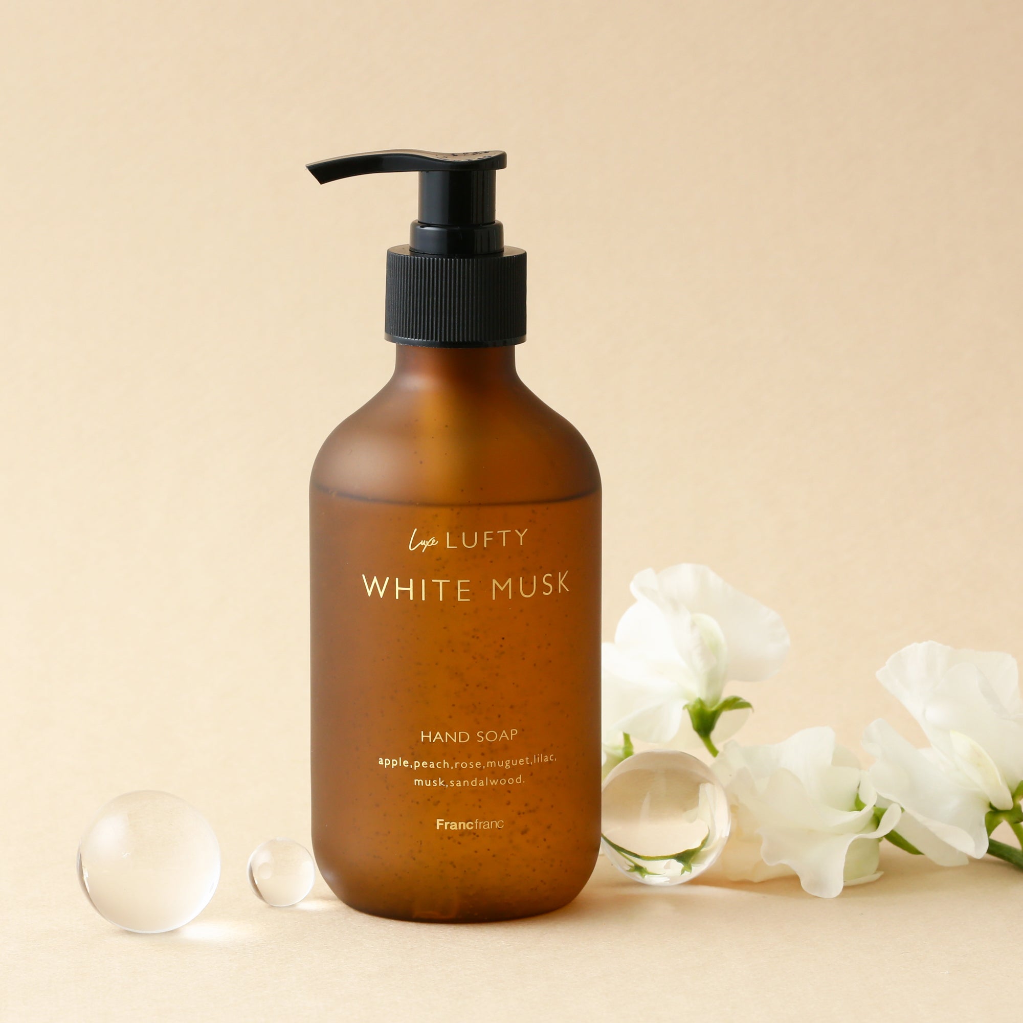10種の植物由来保湿成分配合の手肌にやさしいハンドソープです。保湿成分増量。(当社比)スクラブ入りで手のキメを整えつつ手指を綺麗に洗浄し、たっぷりの保湿成分がうるおいを守りながらハリ艶のある肌に導きます。フロスト加工とゴールドの印字で高級感を出したおしゃれなプラスチックボトルはインテリアになじみやすいデザイン。人気の高いホワイトムスクの香りで、より長持ちするようになりました。