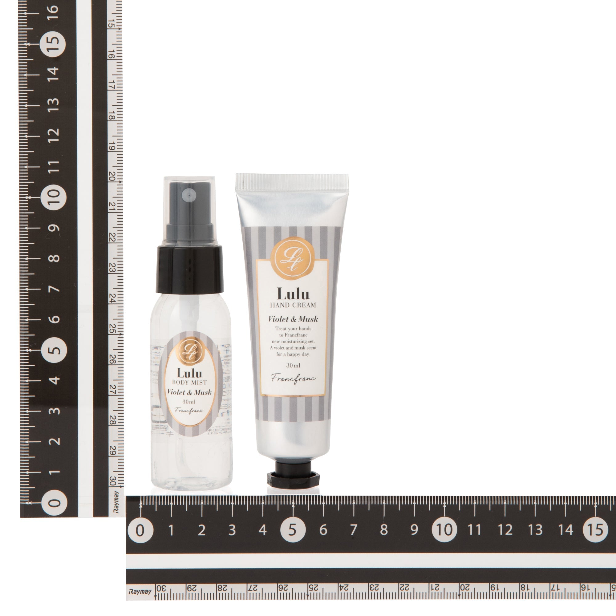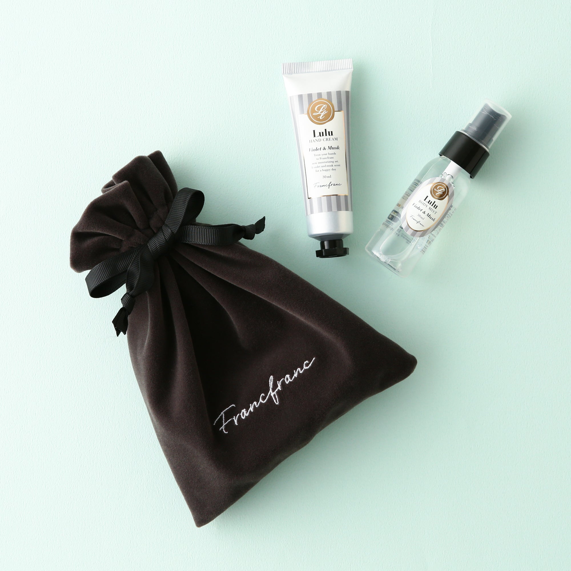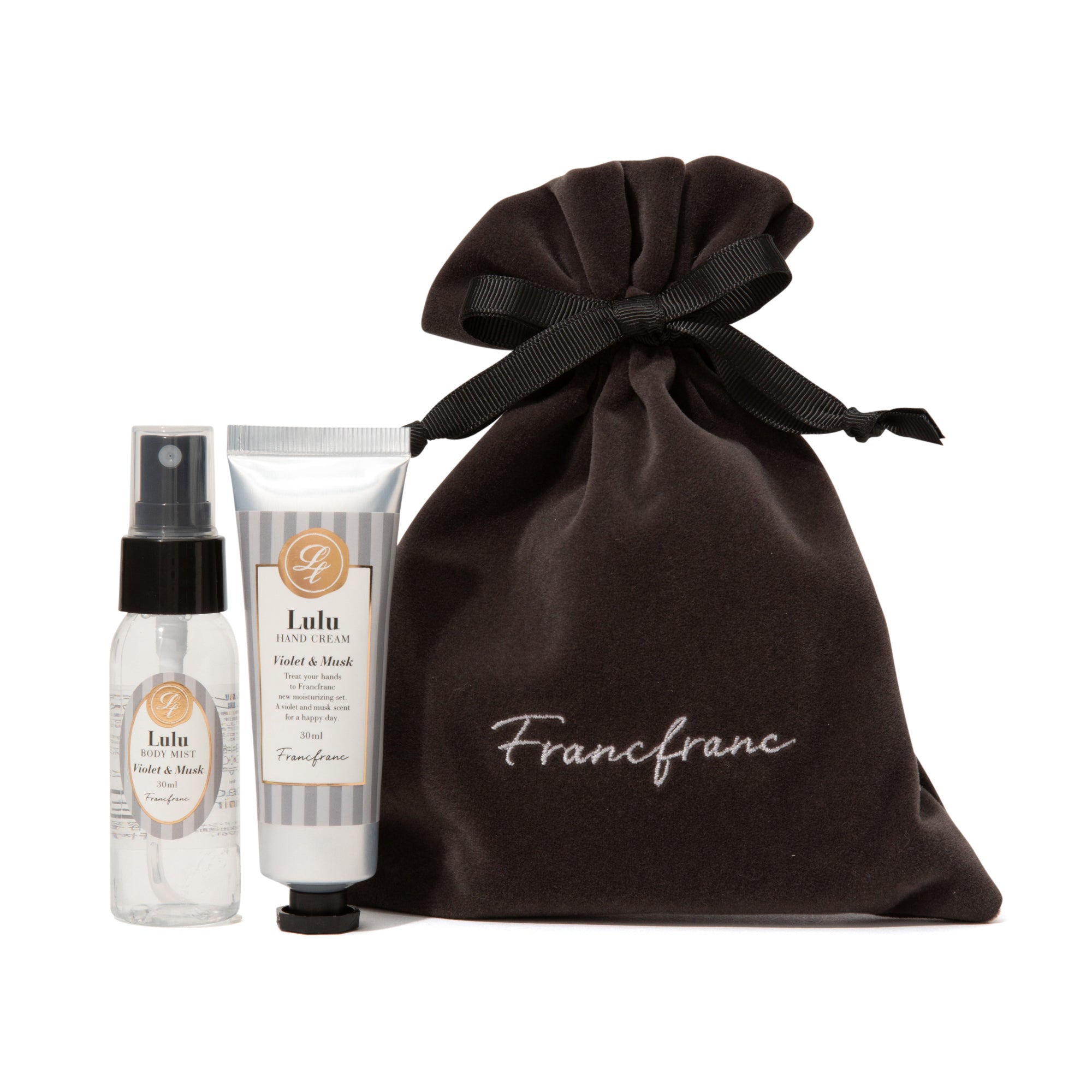 持ち運び需要のあるボディケアアイテムのギフトセットです。パッケージの巾着はベロア生地に刺繍を施した大人っぽいデザイン。運び用のポーチとしても利用できます。サイズW145×D50×H170mm 容量:ハンドクリーム30g、ボディミスト30ml素材容器/キャップ/トレイ:プラポーチ:ポリエステルタグ:紙重量0.09 kgカラーGY品番 1105030035837 全国一律550円(税込)です。雑貨の商品金額合計が5,000円(税込)以上の場合、送料無料で配送いたします。※手数料、ラッピング料、付帯サービス料は含みません。※新生活期・年末年始は出荷や配送の繁忙期となるため、日時指定をいただいてもご希望日時通りお届け出来ないことがございます。■アルコール:含まれない■お肌に異常が生じていないかよく注意して使用してください。化粧品がお肌に合わないとき即ち次のような場合には、使用を中止してください。■色や香りに変化が生じることがあります。が品質には問題ありません■使用後は、必ずしっかり蓋をしめ、開封後はなるべく早めにお使いください。■直射日光の当たる場所、極端な高温・低温の場所を避けて保管してください。<ポーチ>■糸の引っ掛かりや引きつれが発生しやすいので、アクセサリーや周囲との摩擦にご注意ください。■洗濯はお避けください。■濃色部分は摩擦や汗・雨などにより色落ち色移りする恐れがございます。■原産国:中国