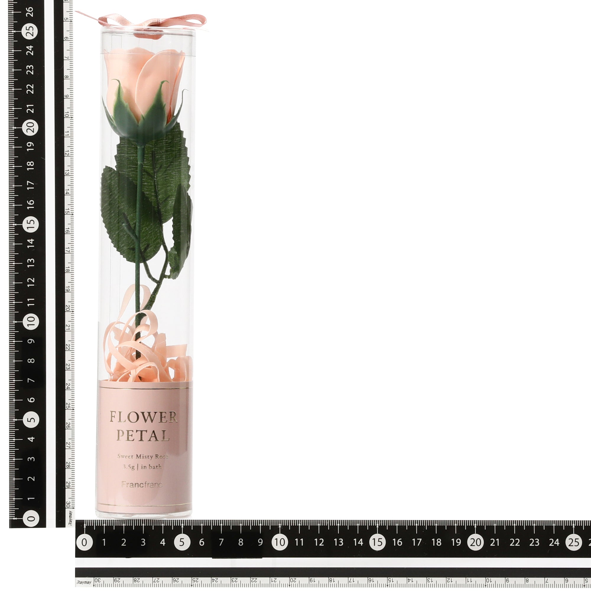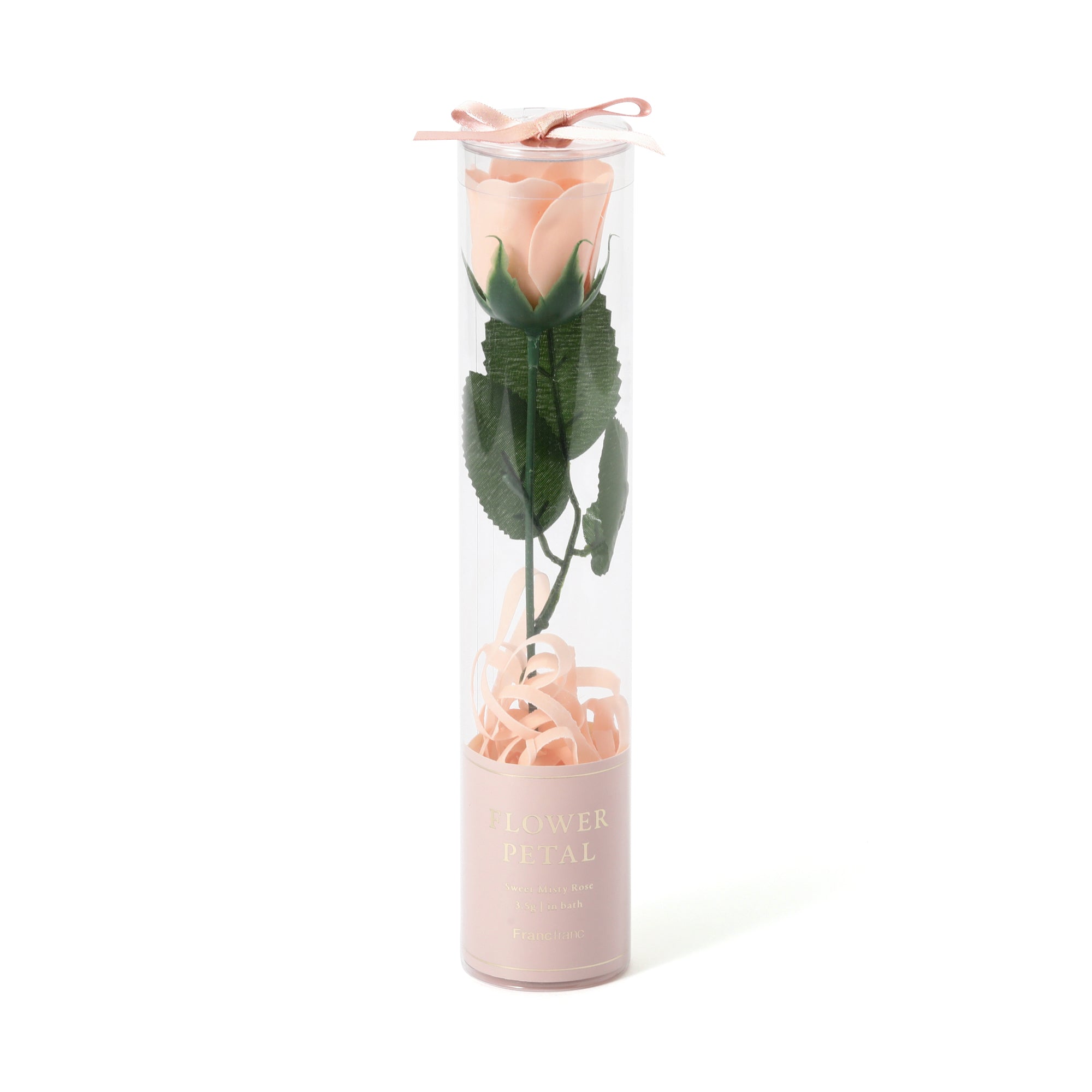 花びら一枚一枚が石鹸で作られた入浴剤です。花びらを摘んで浮かべると、特別感のあるバスタイムに。少量のお湯を張り、上から勢いよくシャワーをあてると泡風呂としても。繊細な可愛らしいデザインなので、入浴時はもちろん玄関に飾って楽しむことも出来ます。ちょっとしたお返しやプチギフトにぴったりです。<使用方法>花びらを茎から外します。(茎や葉は使用できません。)浴槽に半分ほどお湯をはり、花びらの上から勢いよくシャワーをあてると泡風呂になります。花びらを浮かべたい場合は、泡の上に浮かべてください。使用後は必ず身体をシャワー等でよく洗い流してください。
