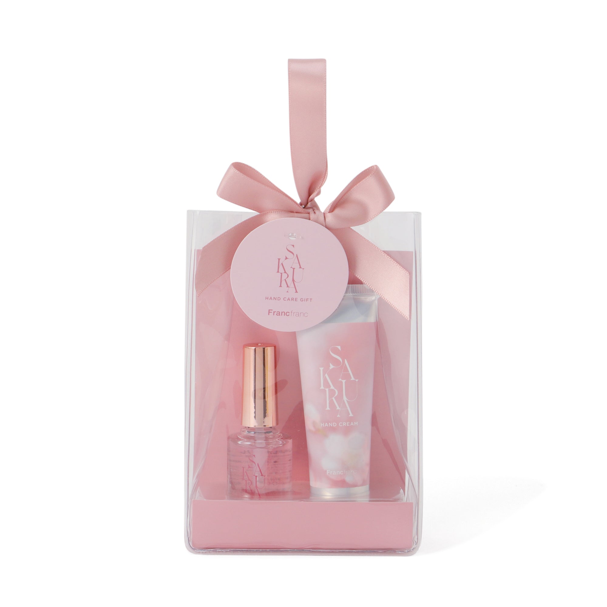 香りで季節を感じていただくことをコンセプトにしたシーズンコレクションに春らしい「サクラ」の香りが登場。「サクラ」の香りをFrancfrancらしく表現したハンドクリームとネイルオイルのセットです。かわいらしく華やかなパッケージデザインでギフトにぴったり。まだまだ乾燥しがちな手元をしっかりケアしながら香りで癒してくれる、とっておきのセットアイテムです。
