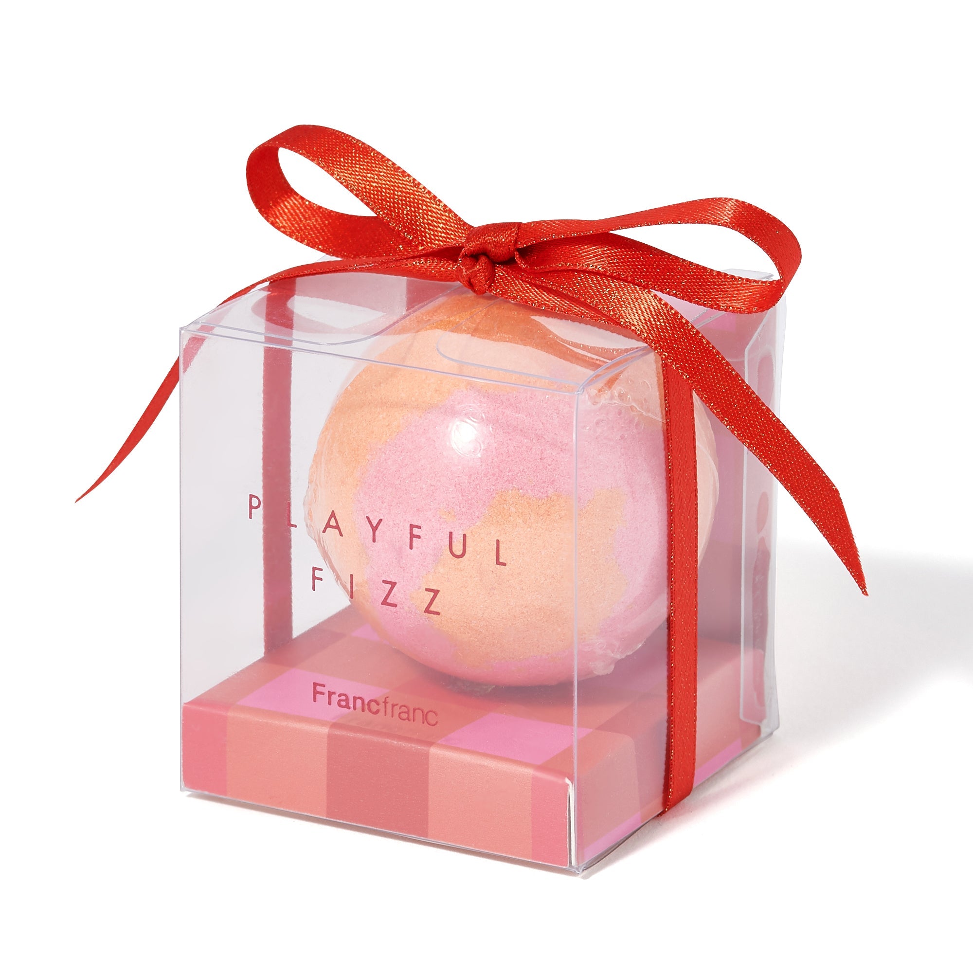 甘いチョコの香り漂うバスフィズです。お湯に入れてかき混ぜれば、とろけるような甘い香りに包まれながらバレンタイン気分たっぷりのバスタイムを楽しめます。同シリーズのハンカチとハンドクリームをご用意しましたので、お揃いの柄をセットにしてプレゼントするのもおすすめです。※イメージ画像で使用している食品はオンラインショップではお取り扱いがございません。ご了承ください。