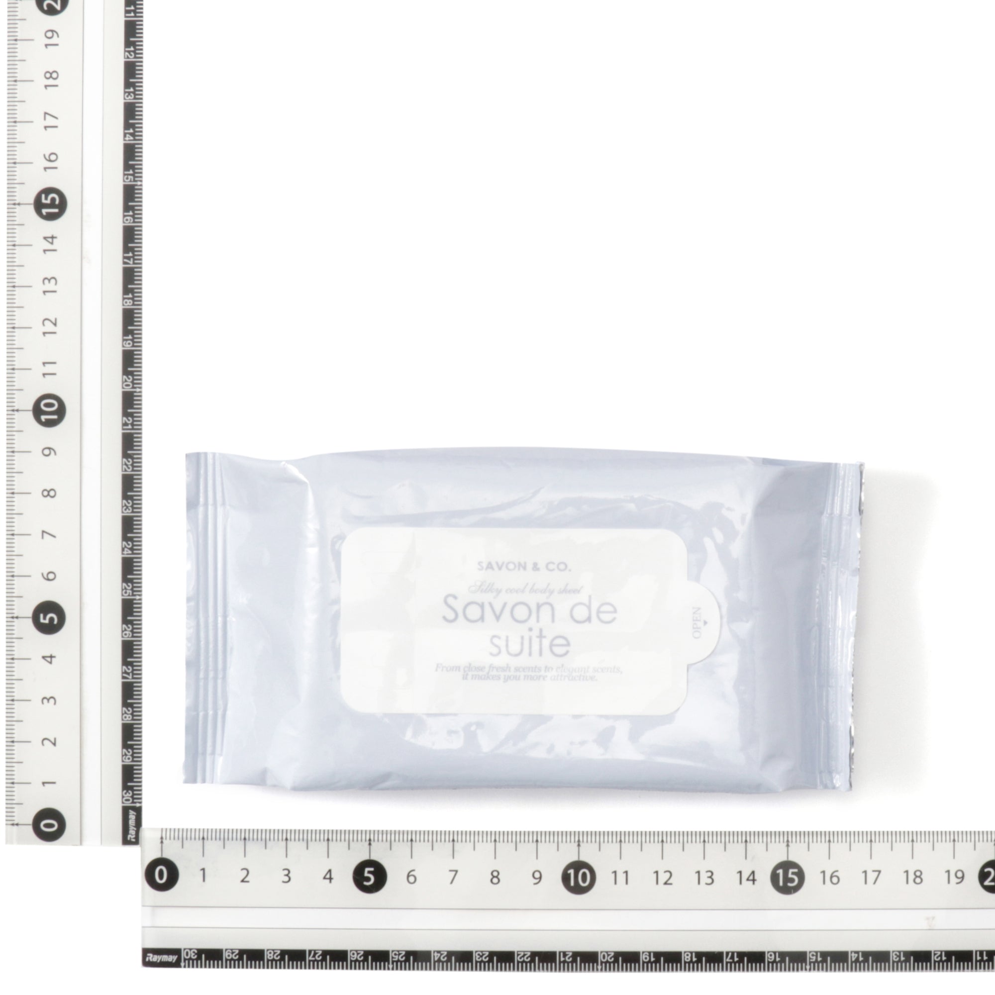 優しい香りと潤いでお肌をさっぱり拭き取るボディシートです。1枚でお風呂上がりの爽快感、ひんやりサラサラ素肌にしてくれます。お風呂上がりのような爽やかな香りが拭いた後、全身を包みます。外出先でもお風呂上がりのサラサラ肌にしてくれて、夏の外出の強い味方になってくれるアイテムです。