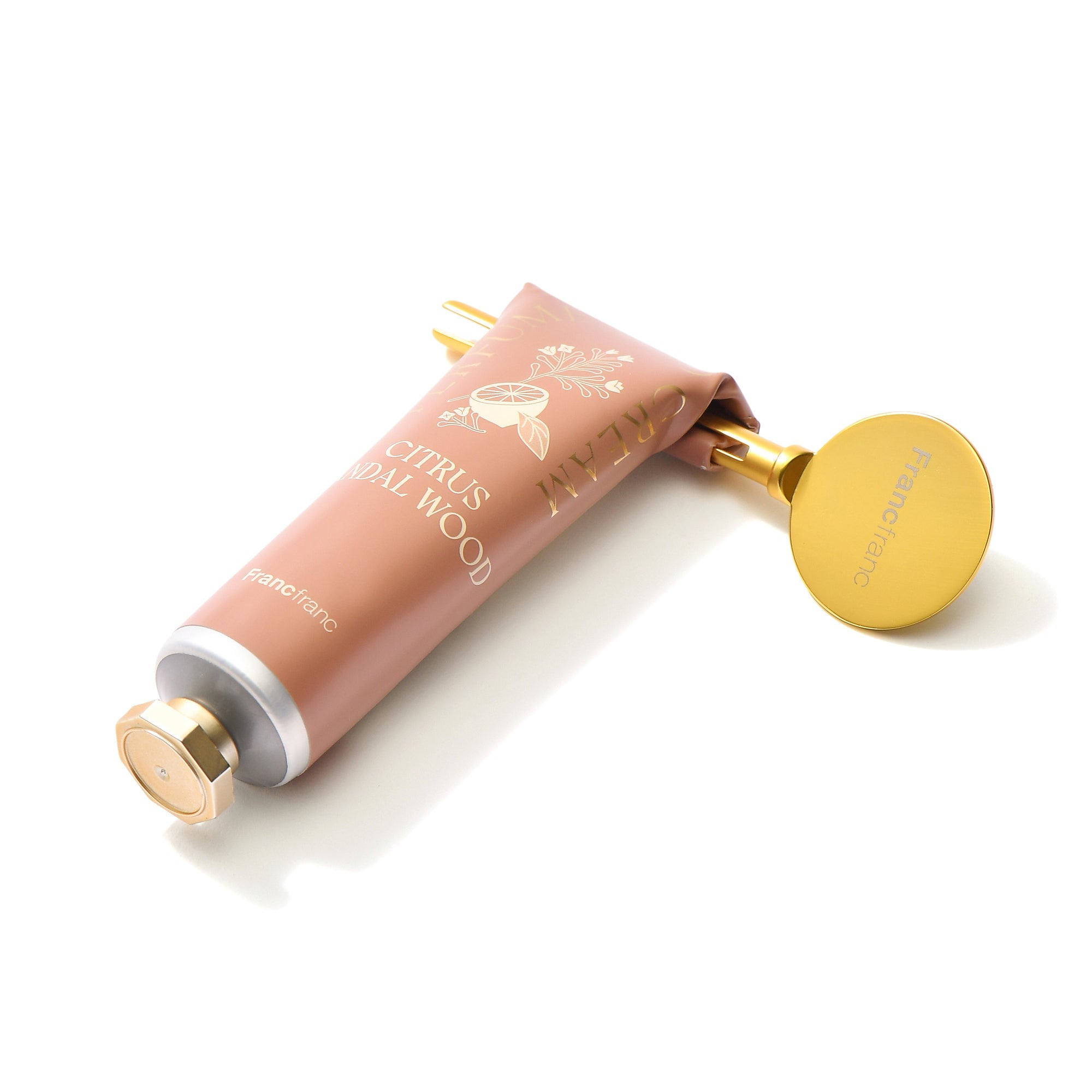 大切な方へのギフトにおすすめしたい高級感溢れるハンドクリームセットです。 香りにこだわった高品質なハンドクリームは、シアバター、ヒアルロン酸、コラーゲンを配合したしっとりとした使い心地。鍵の形を模した絞り器が付属していますので、チューブをはさんで巻き上げれば最後まで無駄なく快適に使い切ることができます。 本物志向の方へのプレゼントや、いつもよりちょっとリッチなギフトにおすすめです。 ◆カモミールムスクの香り トップ:アイリス、ホワイトティー、スウィートフラワー ミドル:ローズ、ジャスミン、スミレ ベース:サンダルウッド、アンバーグリス、ムスク