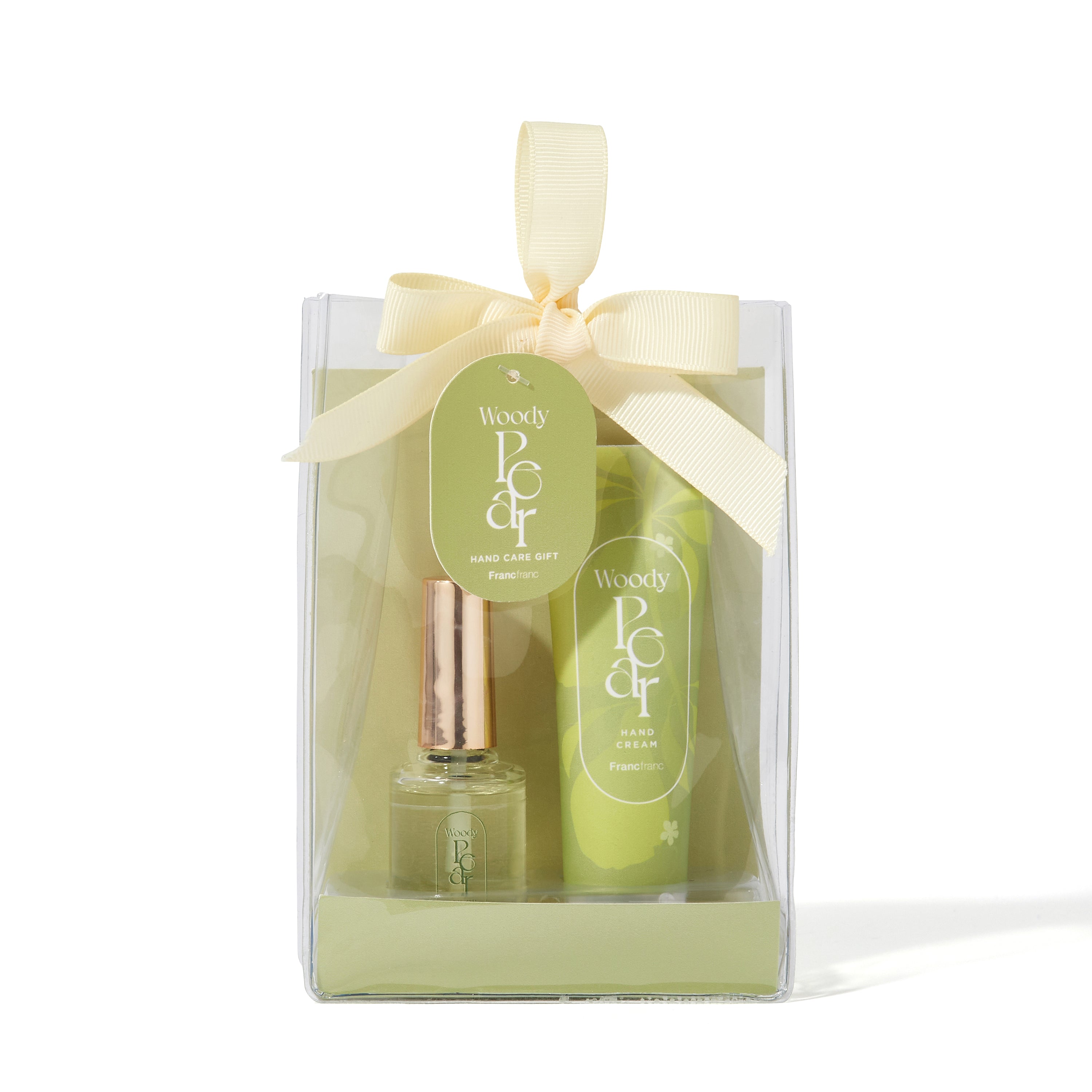 香りで季節を感じていただくことをコンセプトにしたシーズンコレクションに、ウッディペアーの香りが登場。ウッディペアーの香りをFrancfrancらしく表現したハンドクリームとネイルオイルのセットをご用意しました。 かわいらしく華やかなパッケージデザインでギフトにもおすすめです。