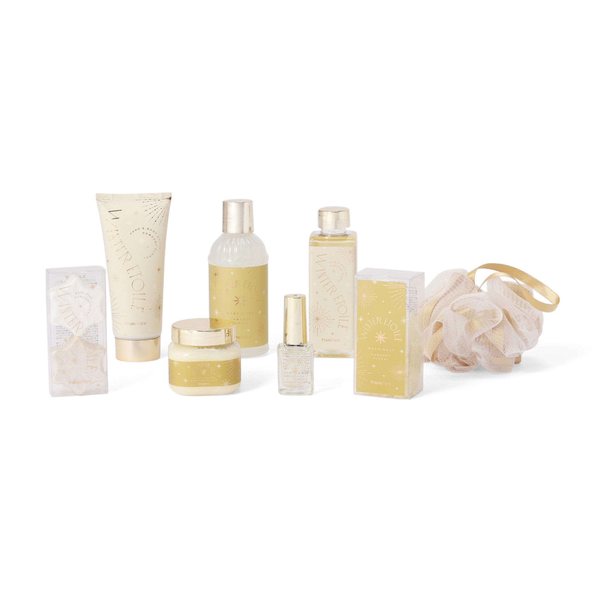 ウィンターホリデーシーズンのイルミネーションや星空のような煌めきを感じるボディケア8点セットです。 星とパールのチャームをあしらった華やかなセットは、ご自分へのご褒美や大切な方へのギフトに最適です。 パウダリーフローラルの香り。 ◆セット内容:ハンド&ボディクリーム、ボディウォッシュ、ボディスクラブ、ヘア&ボディオイル、バスフィズ、バススポンジ、バスソルト、ネイルオイル