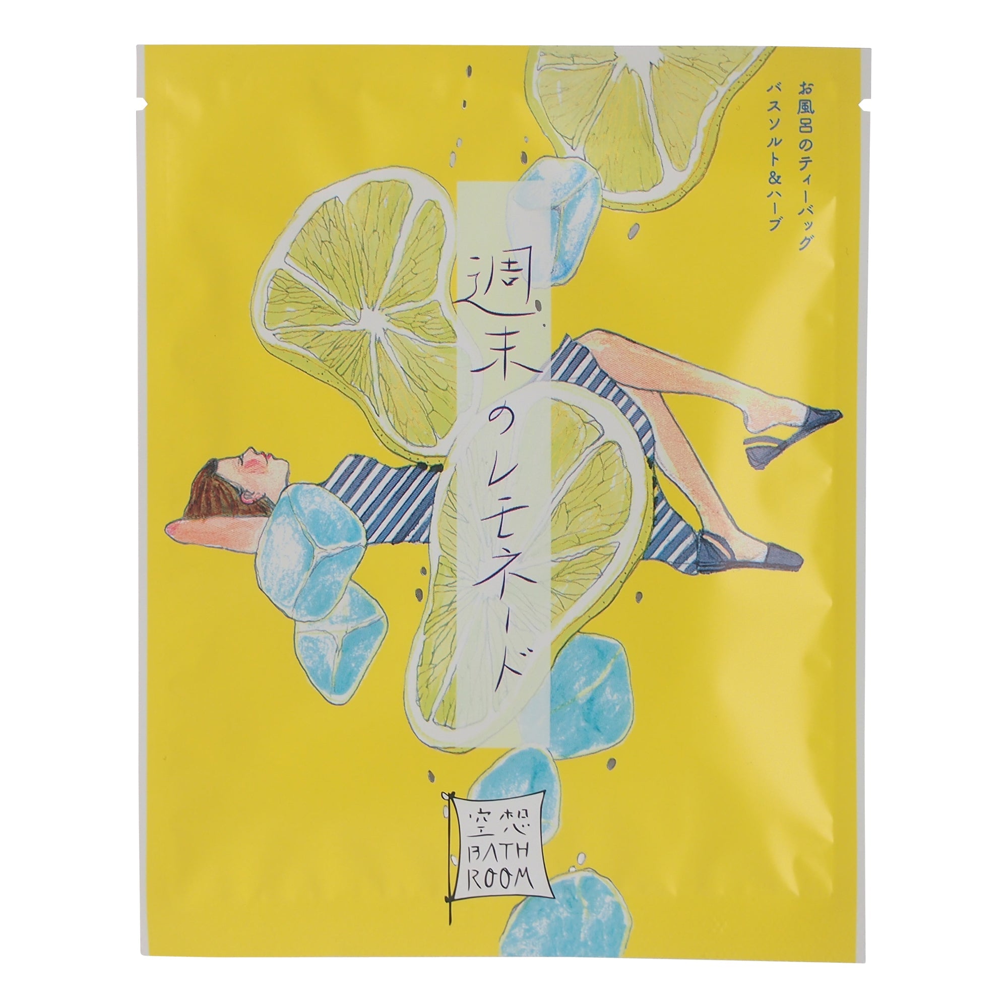 バスルームをもっと自由に。イマジネーションふくらむ自分だけの時間。本の装丁のようなデザインで楽しむ『空想バスルーム』。バスソルトと数種の天然由来成分を詰め込んだナチュラルなバスバッグで素肌も美しく。【週末のレモネード】◆さわやかなハチミツレモンの香り。◆澄み切ったレモンイエローの湯色。