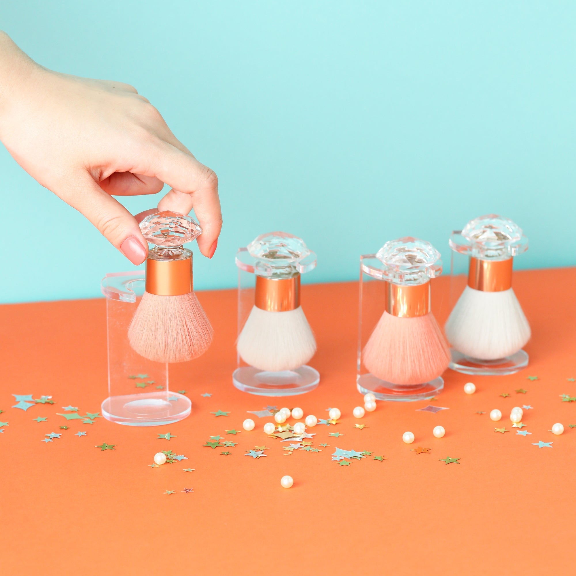 ブラシの持ち手がダイヤモンドのようなデザインで、インテリアとしても可愛いミニフェイスブラシです。スタンド付きでブラシ洗浄後の乾燥にも最適なので、清潔に保つことができます。毛のボリュームがたっぷりなので、フェイスパウダーやチークへの使用がオススメ。また、可愛らしいパッケージ入りなので、ギフトにもオススメです。