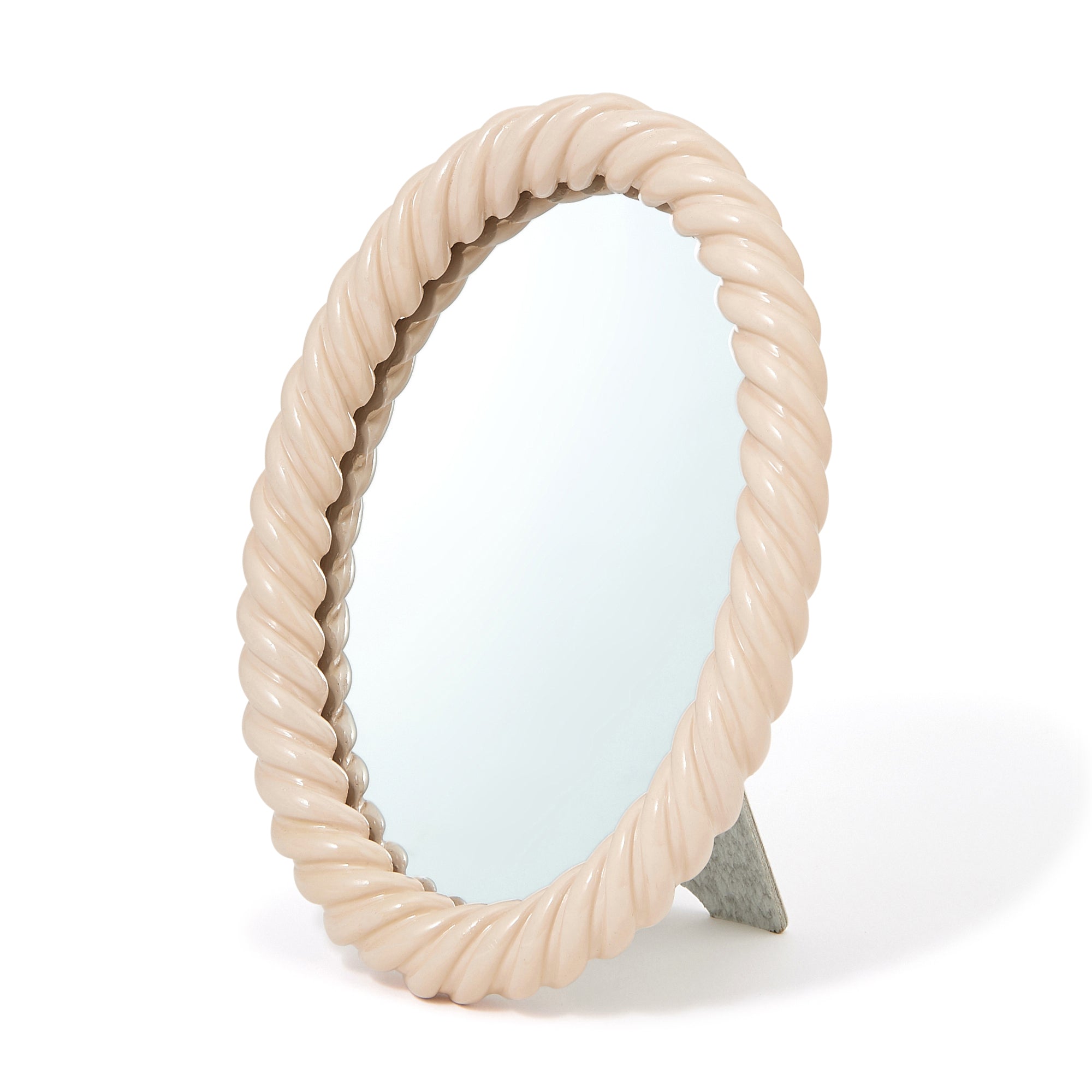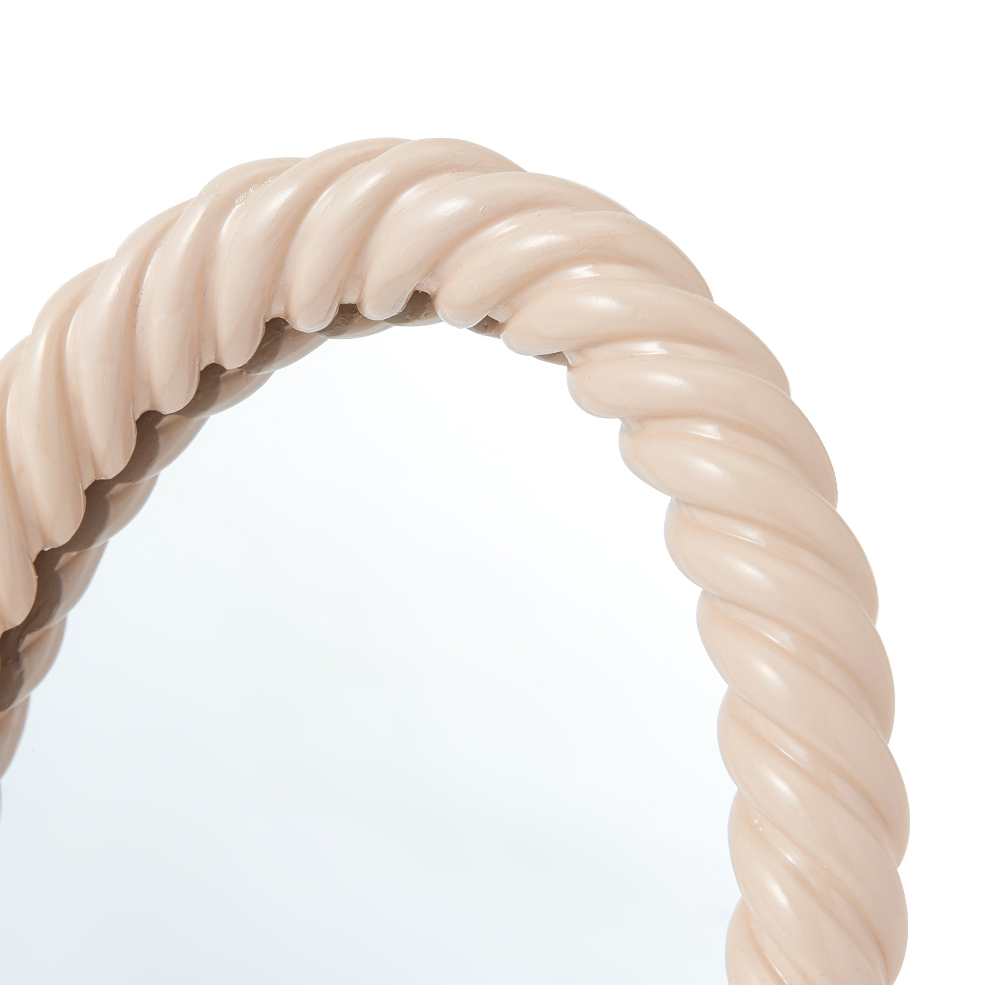トレンドのナチュラルテイストのお部屋にぴったりなスタンドミラーです。ツイストされたボリュームのある縁が柔らかな印象を演出。小さめなので使い勝手がよく、お部屋の中で持ち運びがしやすいのも嬉しいポイントです。チェストやコンソールテーブルなどの上に簡単に飾っていただけて、インテリアとして様になるデザインです。