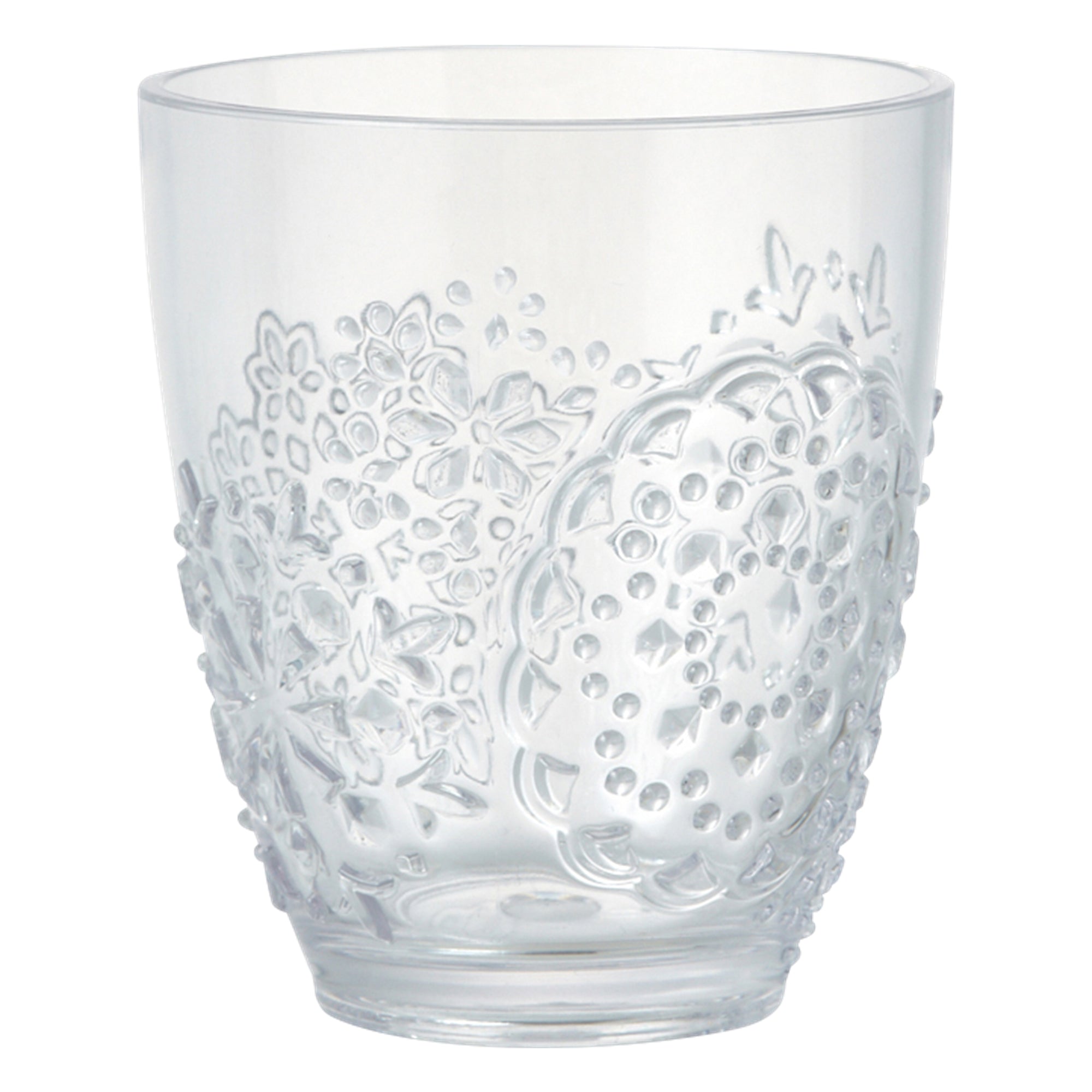 丸レースを組み合わせてラインにしたデザインで、クラシックフェミニンに仕上がったタンブラーです。女性の手にもフィットしやすい軽くて小さめのサイズ。ちょっとした小物入れとしてもご利用できます。