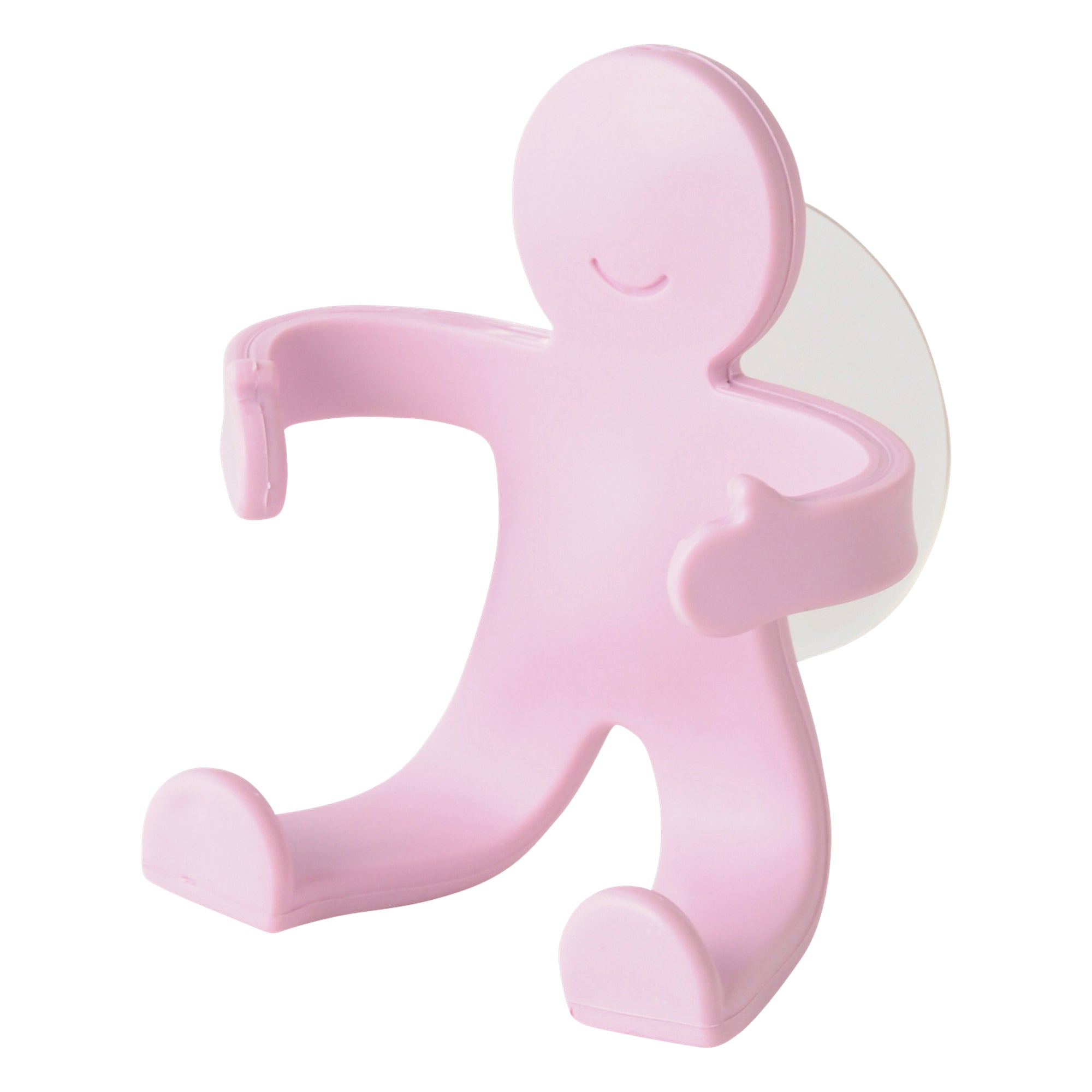 コミカルな人間形のマルチホルダー。洗面所の鏡やお風呂場のタイルにとりつけてご使用いただけます。腕、足が曲げられるので歯磨き粉や石鹸、メガネやヘアゴムなど様々な形状のものを持たせることができます。※重いものは掛けないでください。
