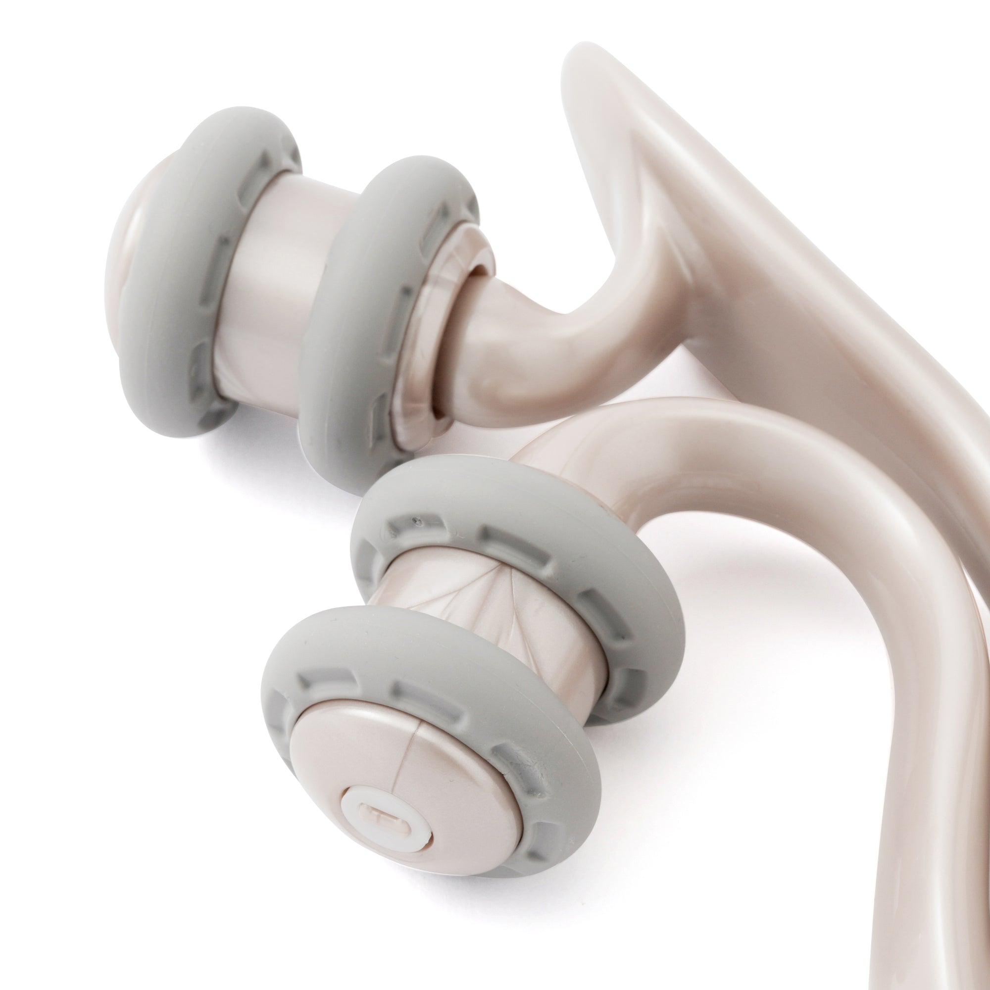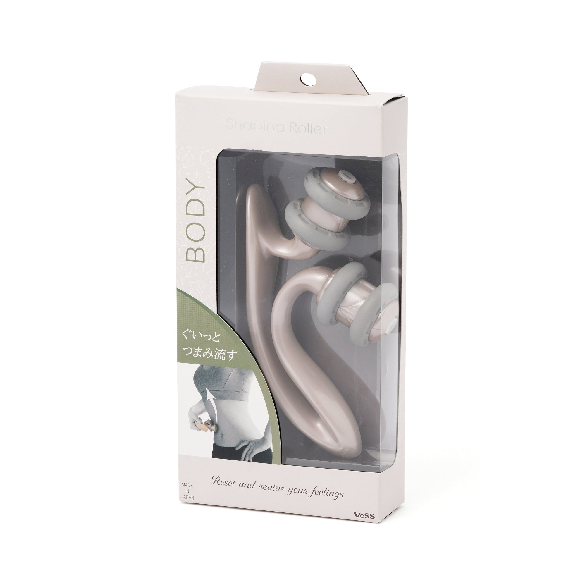 コンパクトなローラーシリーズです。気になる「お腹」や「二の腕」をダブルリングのローラーが肌をグイッとつまみ流します。シンプルなデザインなのでインテリアにも馴染みます。