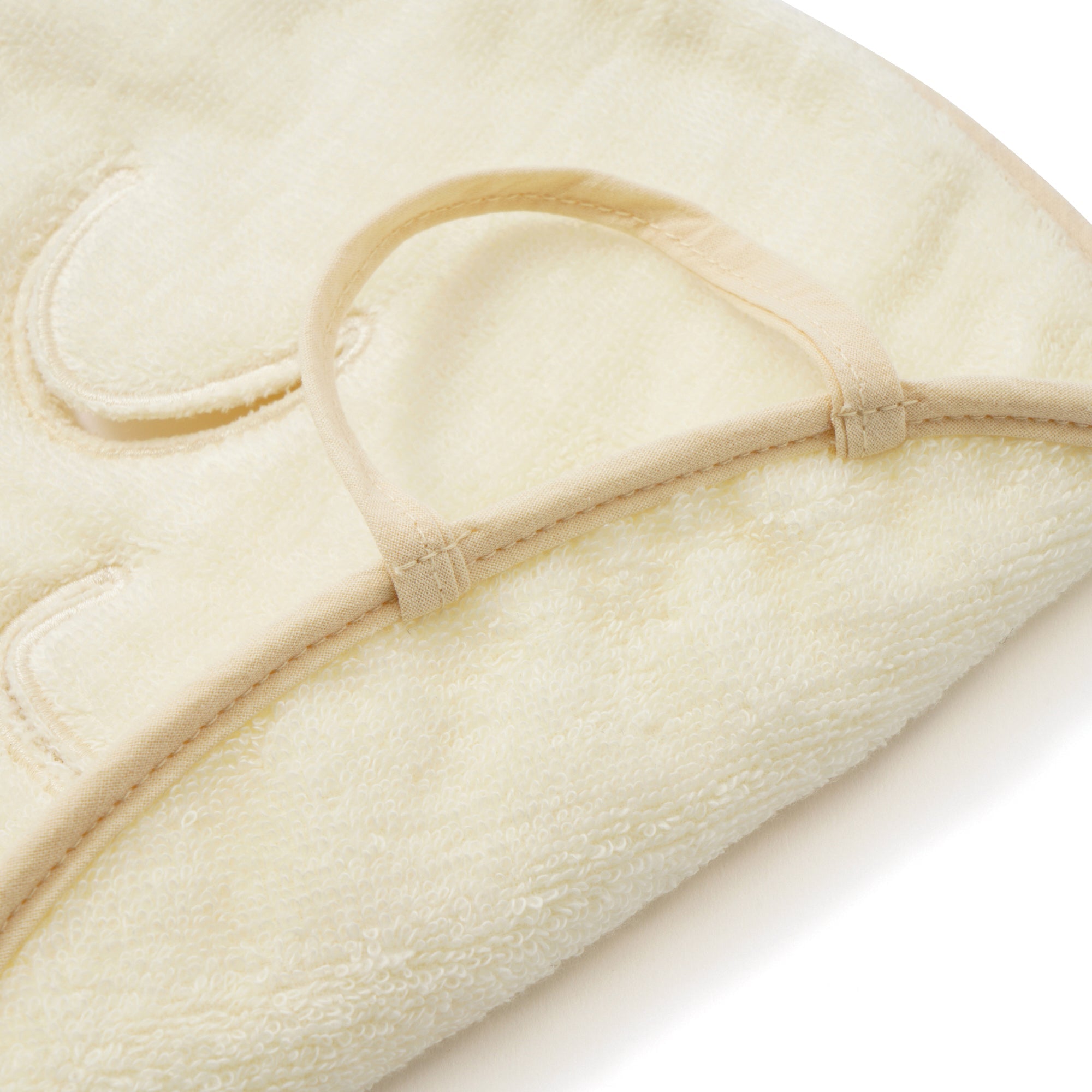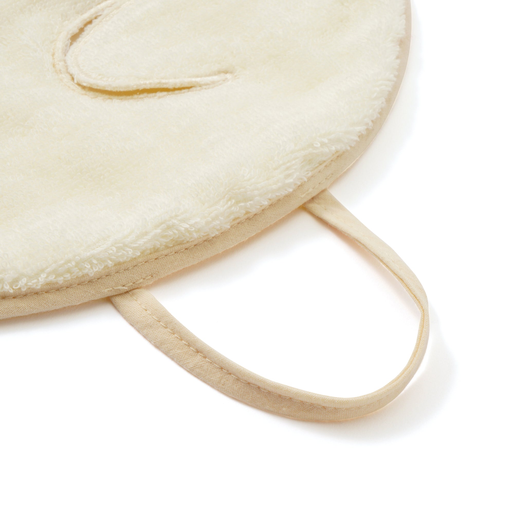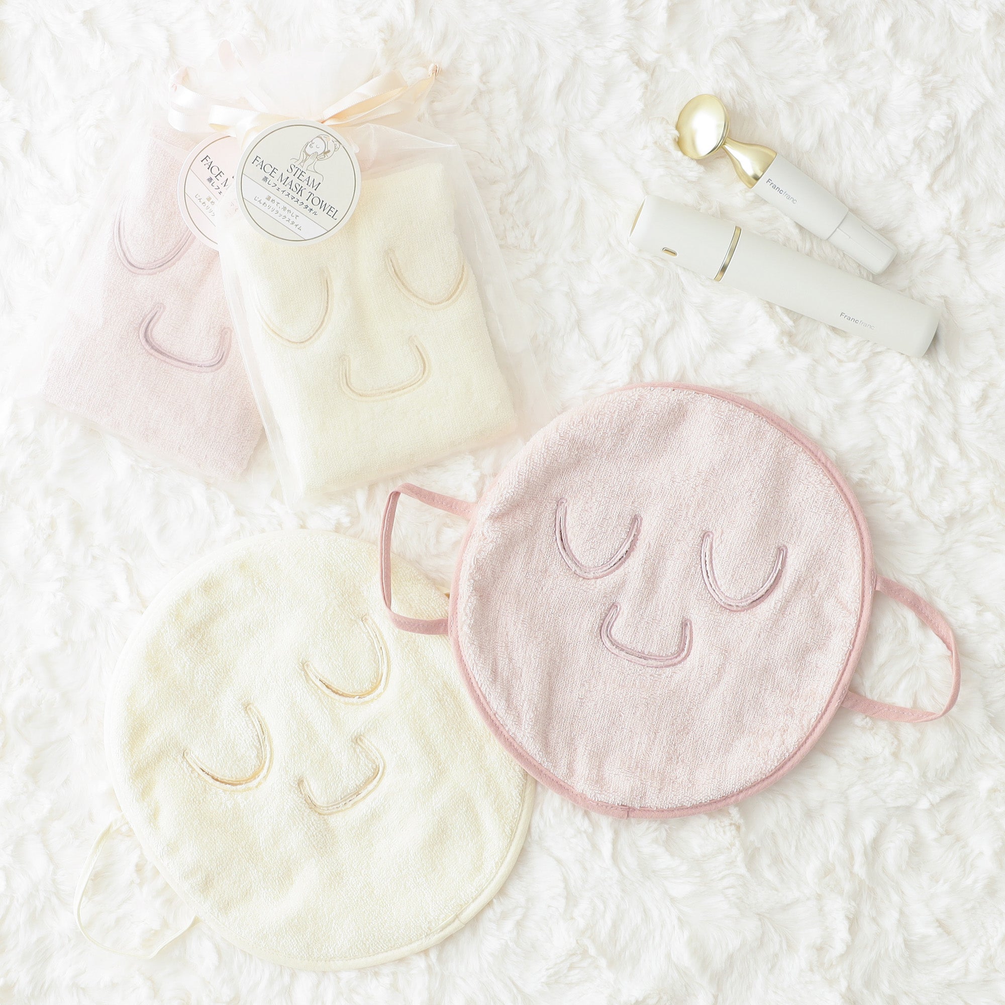 お顔全体を優しく包み込むフェイス用タオルマスクです。お鼻用の呼吸穴と目周りの穴を開けています。抗菌防臭機能付きで清潔にご使用いただけます。エアパウダーは、糸の中に多くのすきまを含んだ、ふんわり軽やかで柔らかな風合いが特長です。コットンとキュプラを組み合わせることで、自然なタッチとなめらかな肌触りを実現。キュプラは断面が真円に近く、摩擦が少ないため、肌への刺激を抑えられます。<使い方>・レンジで温めスキンケア前にリラックス。熱と蒸気で毛穴を開くことで、スキンケアの浸透を促します。・水で濡らして絞った後に氷水や、冷蔵庫で1時間程冷やし、顔にのせてください。