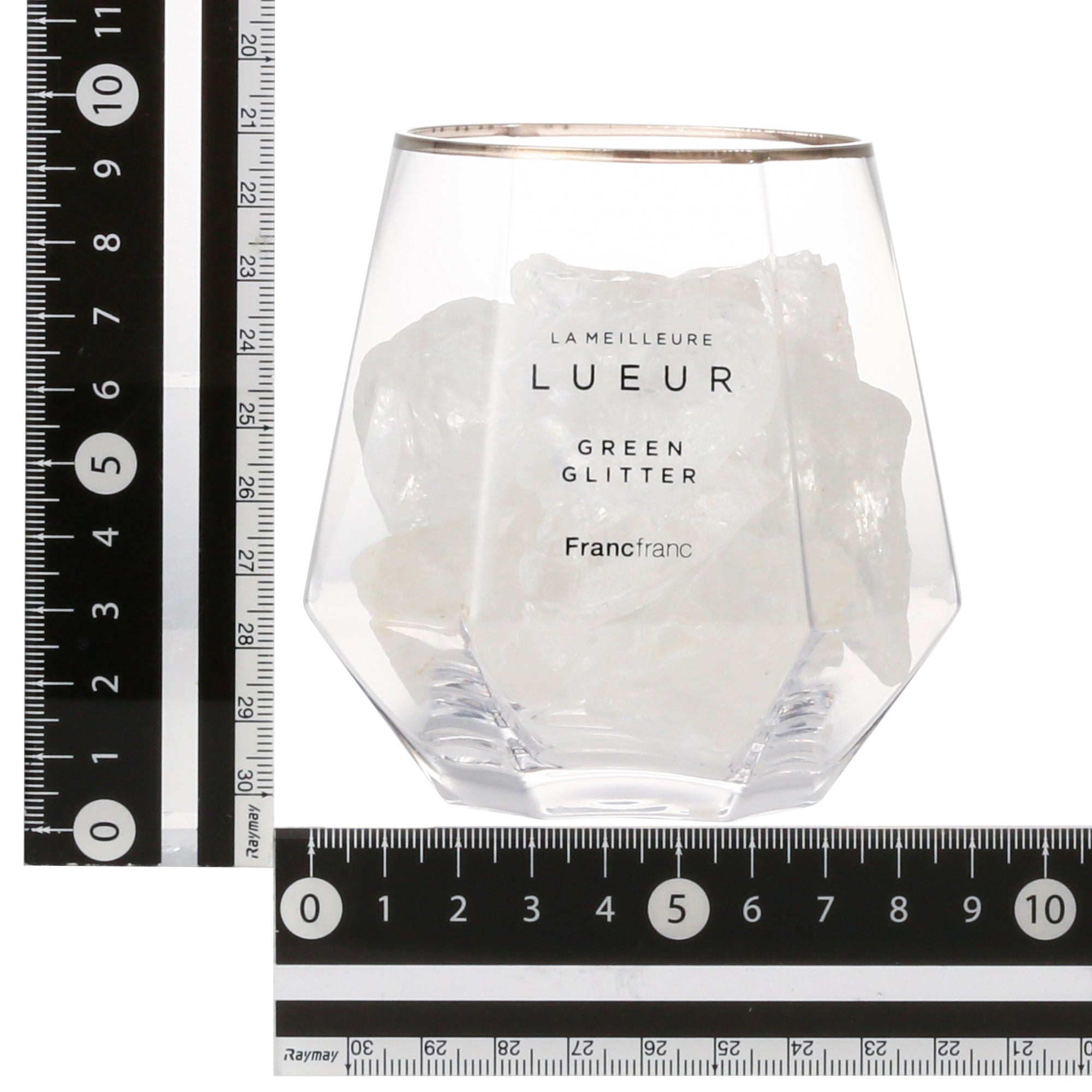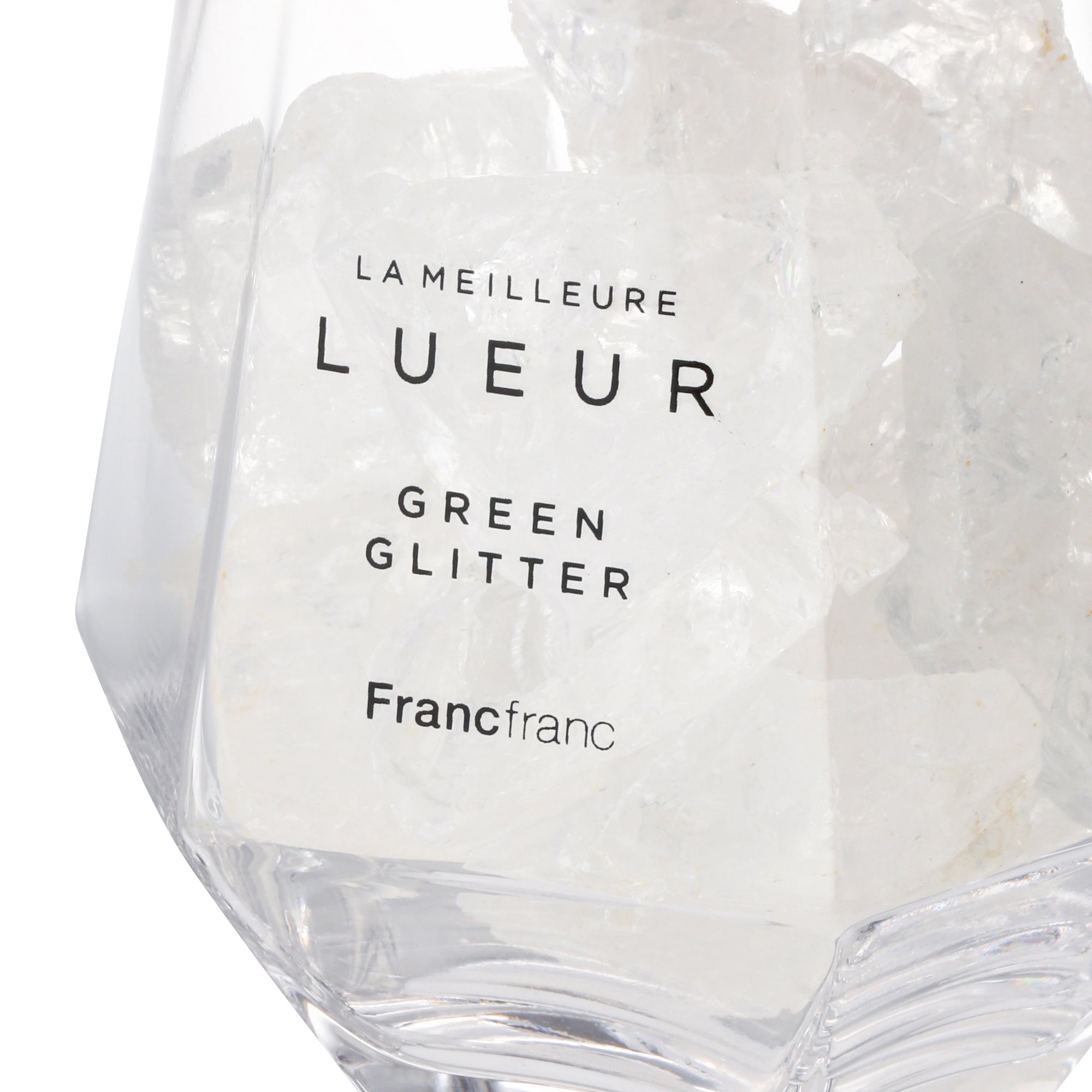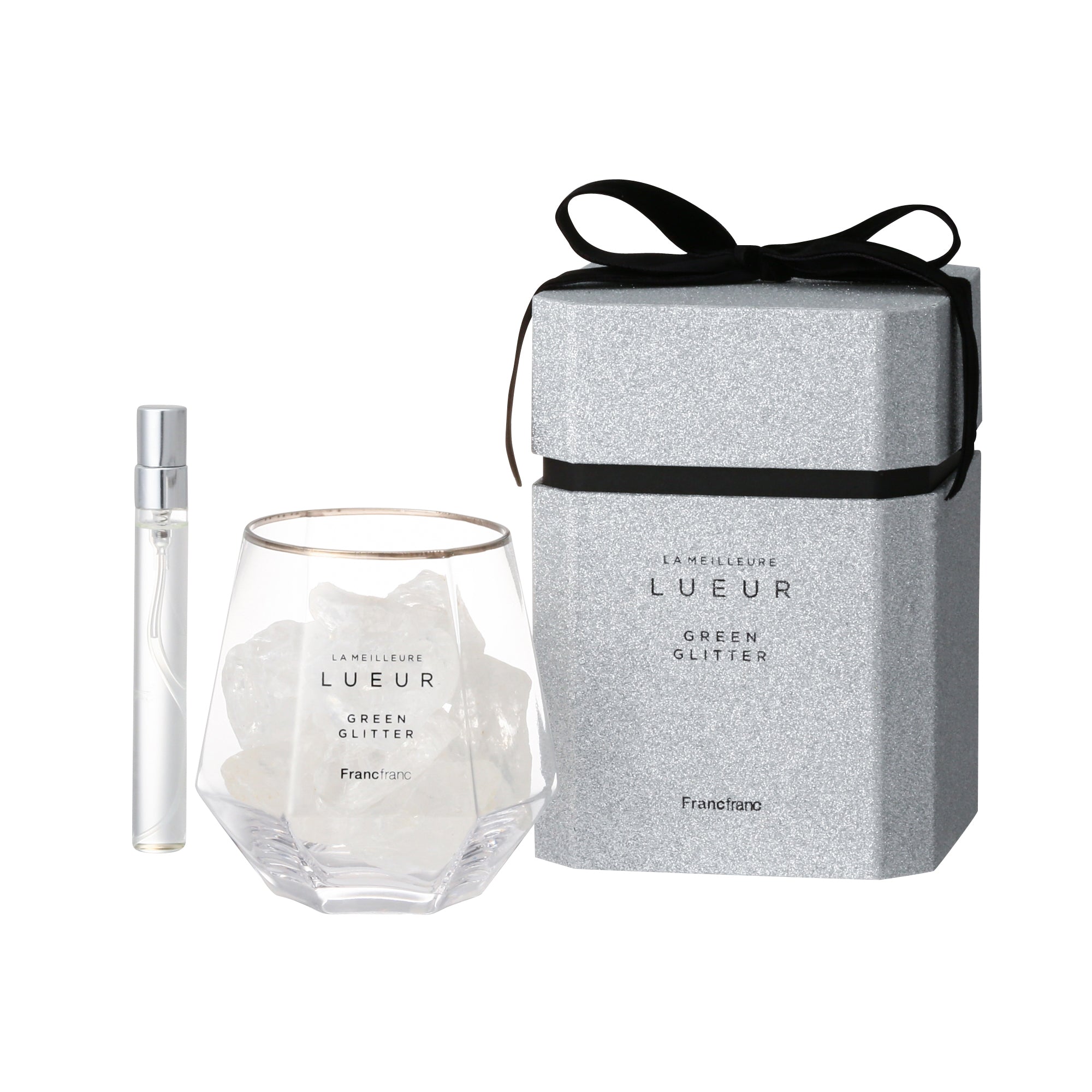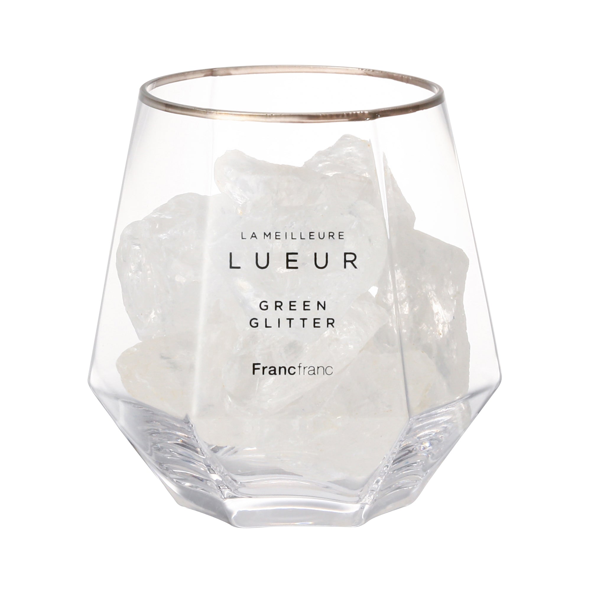 フレグランスオイルを石に垂らすとふんわりと香りが広がる、エレガントなフレグランスアイテムです。 フランス語で「輝き」というネーミングのとおり、きらきらとまばゆいばかりに輝くパッケージに包まれたゴージャスなデザイン。 ダイヤモンドカットを施したグラスもセットになっているのですぐに使えて、ギフトにもぴったり。 石は小分けにできるので、お気に入りのトレイなどにのせてちょっとしたスペースに置いても素敵です。 パーティーシーズンを盛り上げる、甘いグリーン系の香り。 ◆グリーングリッターの香り トップ:レモン、エレミガム、グリーン ミドル:ジャスミン、ローズ ベース:シダーウッド <使用方法> 付属の石を数個ずつ、液を染み込ませてください。 使用する石の個数によって香りの調節ができます。 ※芳香が強い場合は石の個数を減らしてください。