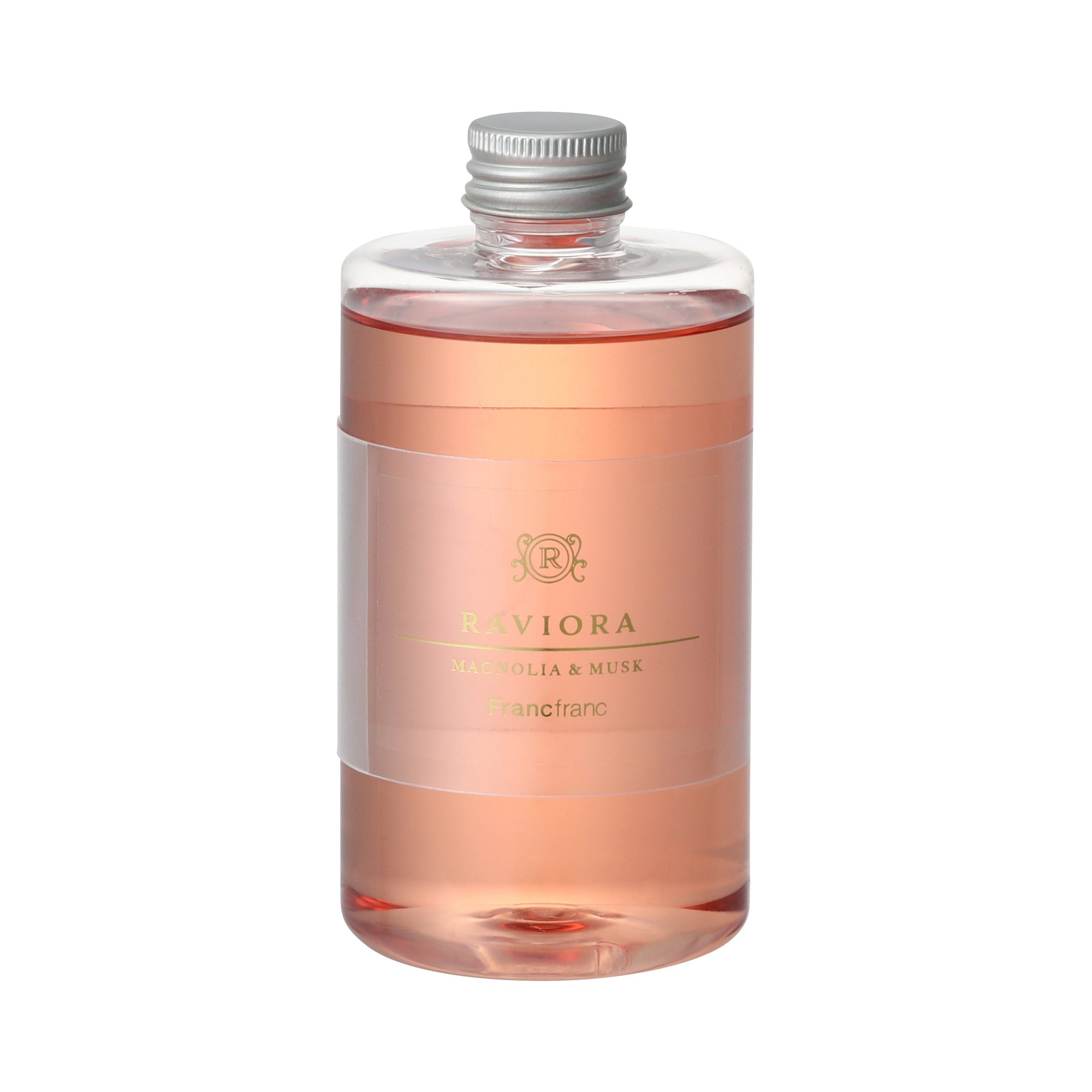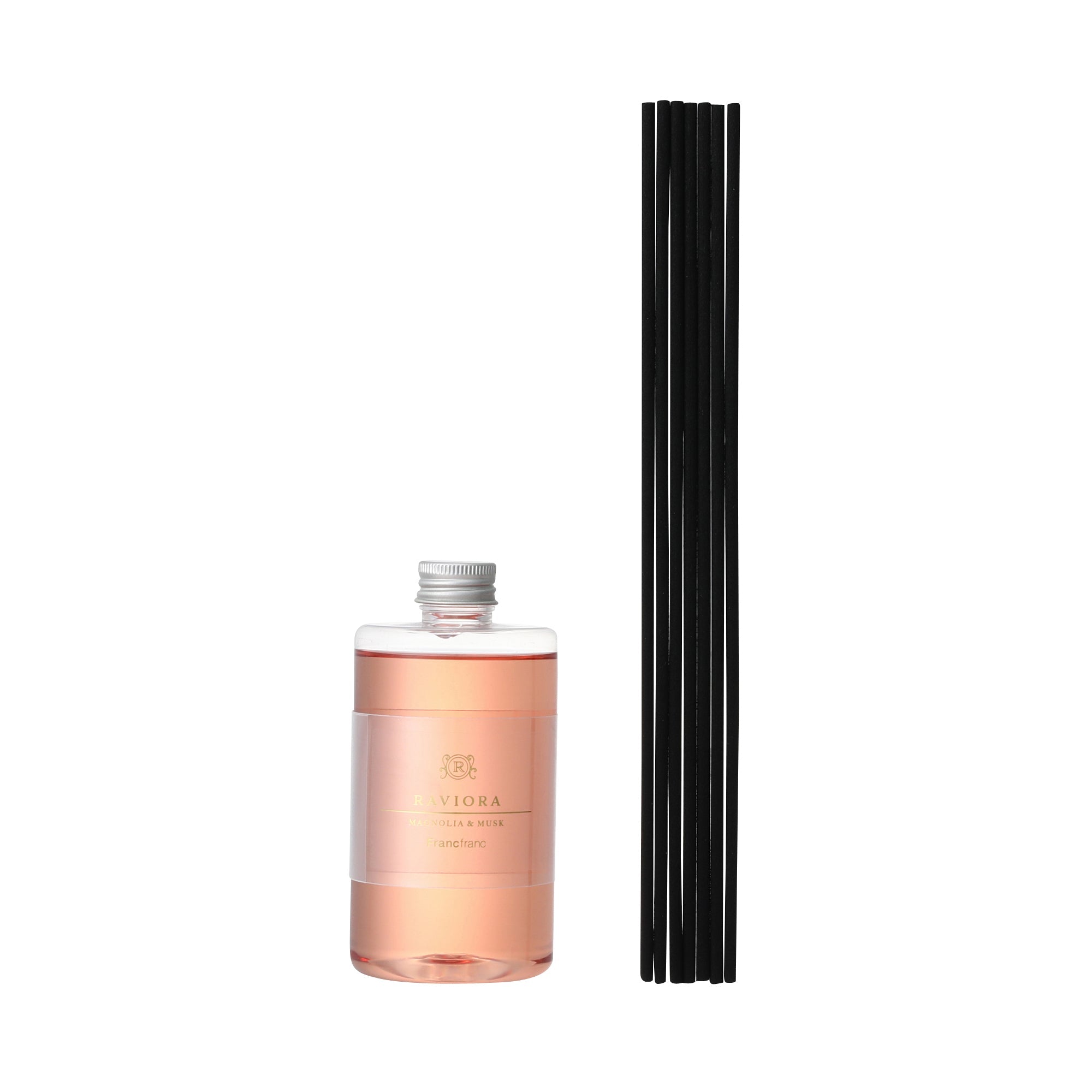 ゴージャスなデザインが人気のラヴィオーラ ルームフレグランス ゴールドの詰め替え用オイルとスティックのセットです。 大人っぽく上品なマグノリア&ムスクの香りは甘くゴージャスな香り。 長く香りをお楽しみいただけるようにオイルの仕様を見直しました。 ◆マグノリア&ムスクの香り トップ:グリーン/ベルガモット/ピンクペッパー/オゾン/ブラッドオレンジ/フルーティ ミドル:ローズ/ホワイトフローラル/フリージア/ネロリ/カルダモン ベース:ムスク/バニラ/モス/アンバー/サンダル/パチュリ