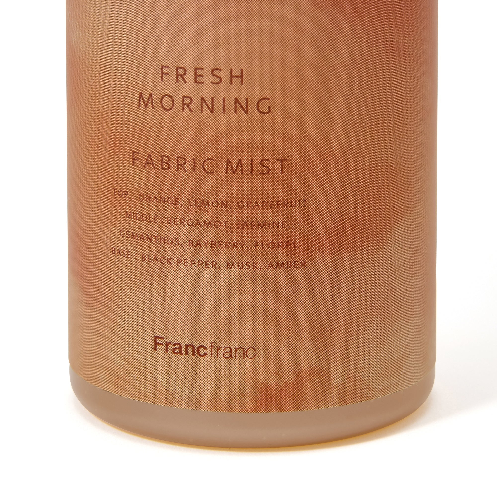 1本で消臭、除菌、抗菌、ウィルス抑制効果を発揮する植物性消臭成分配合のファブリックミストです。 衣類やカーテン、ソファなどの布製品や、お部屋や車内の気になるにおいにシュッとひと吹き。爽やかな香りが空間を満たします。 お部屋に出しっぱなしでもおしゃれなデザイン。思わずパッケージ買いしたくなるデザインです。 ◆フレッシュモーニング◆ トップ:オレンジ/レモン/グレープフルーツ ミドル:ベルガモット/ジャスミン/オスマンサス/ベイベリー/フローラル ベース:ブラックペッパー/ムスク/アンバー