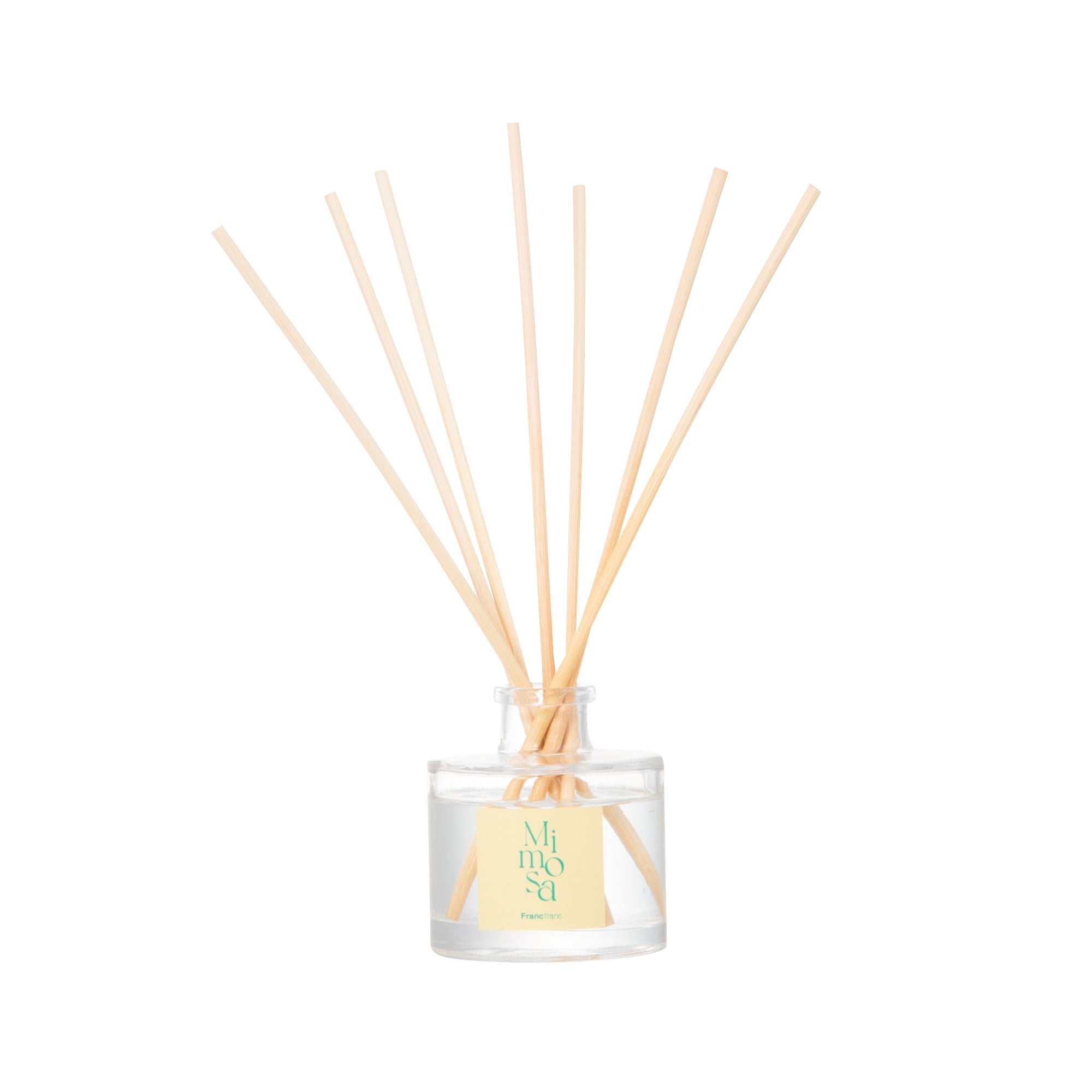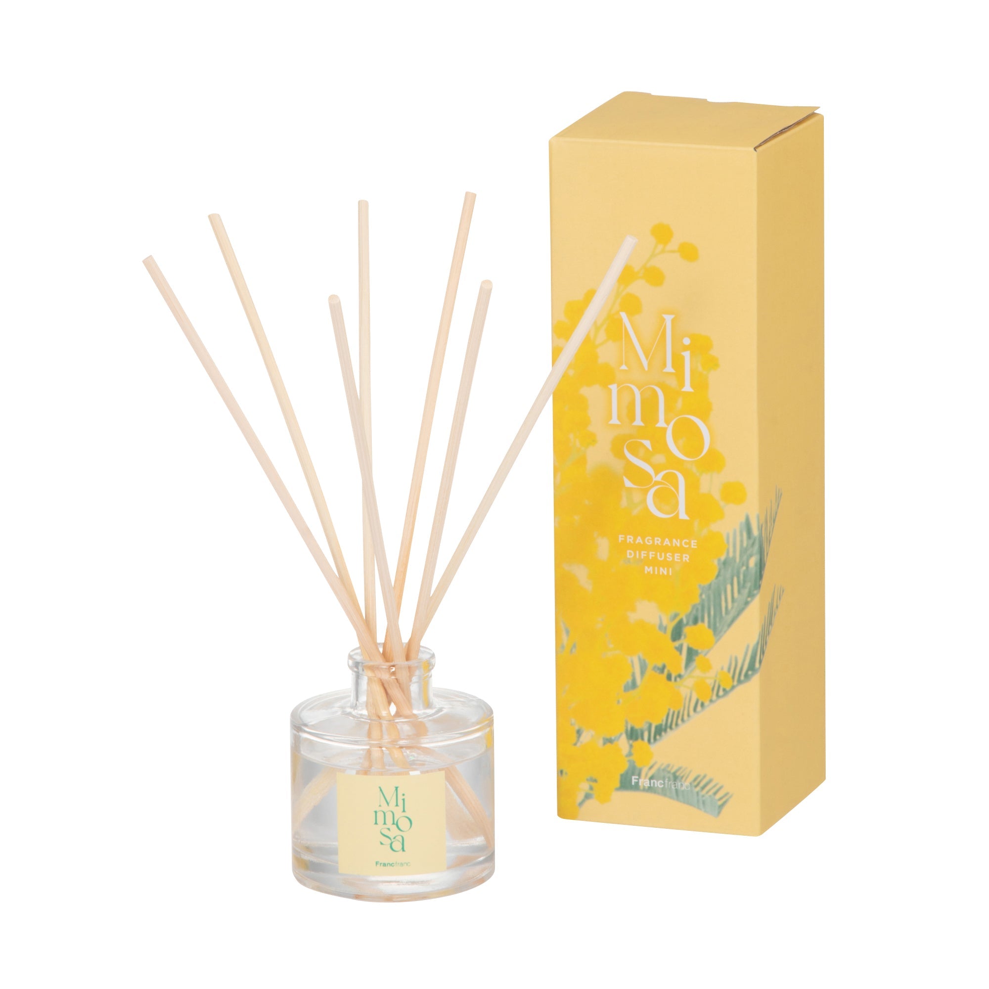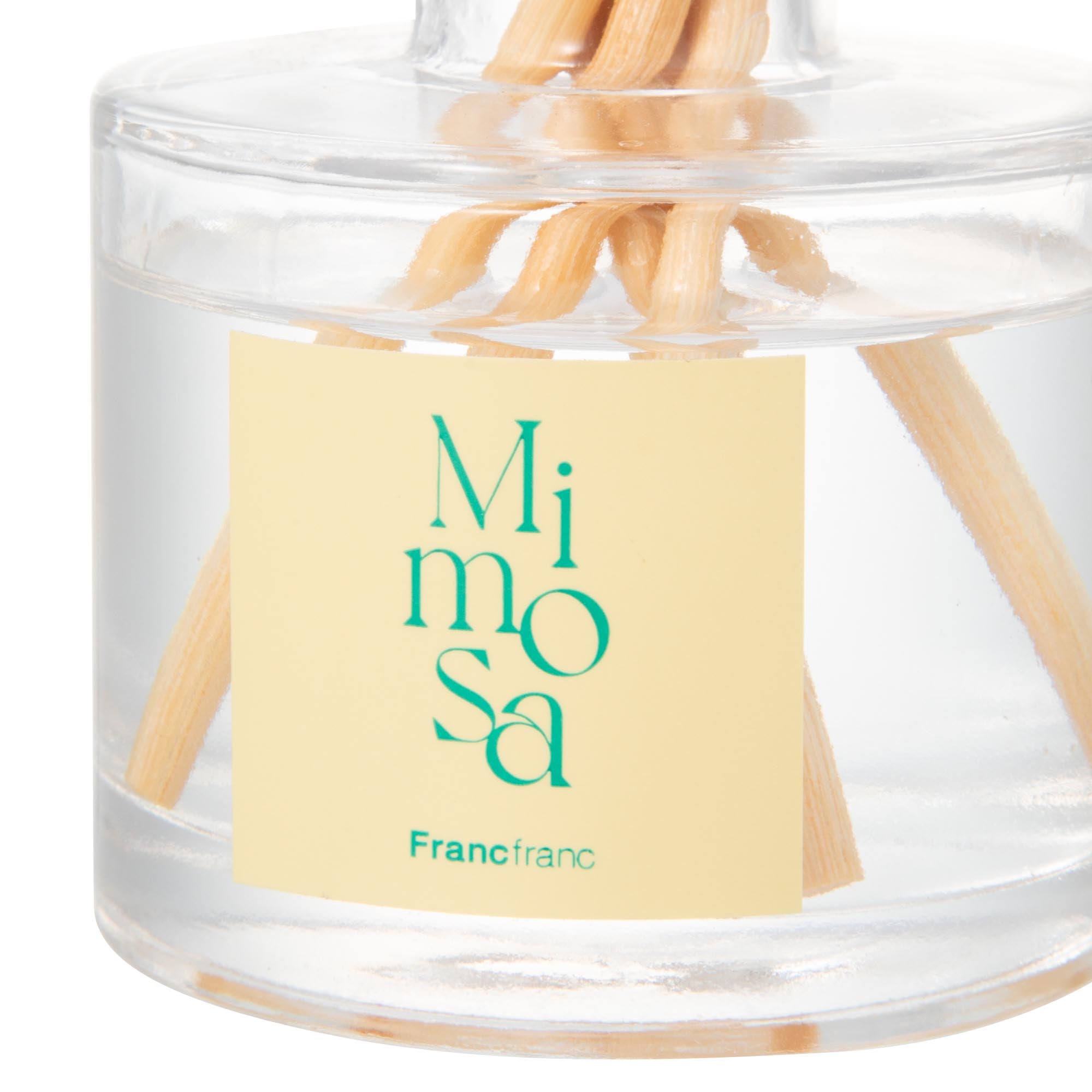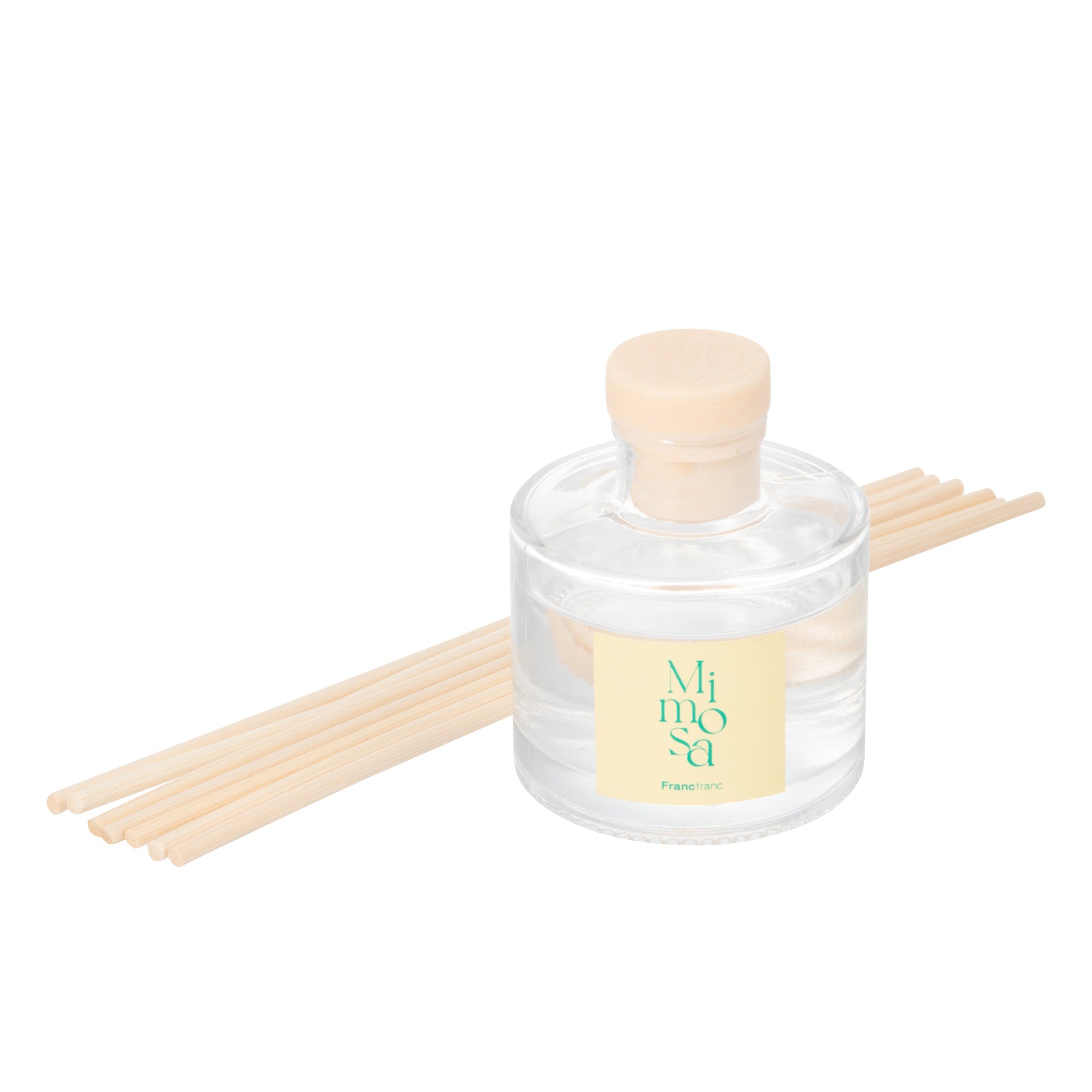 香りで季節を感じていただくことをコンセプトにしたシリーズのディフューザーです。パッケージは華やかに、本体はお部屋に置きやすいシンプルなデザインにしています。ミモザの香りトップ:ベルガモット、ペアー、レモン、リーフィ―グリーンミドル:ジャスミン、ハニーサックル、ミモザベース:アンバー、アイリス