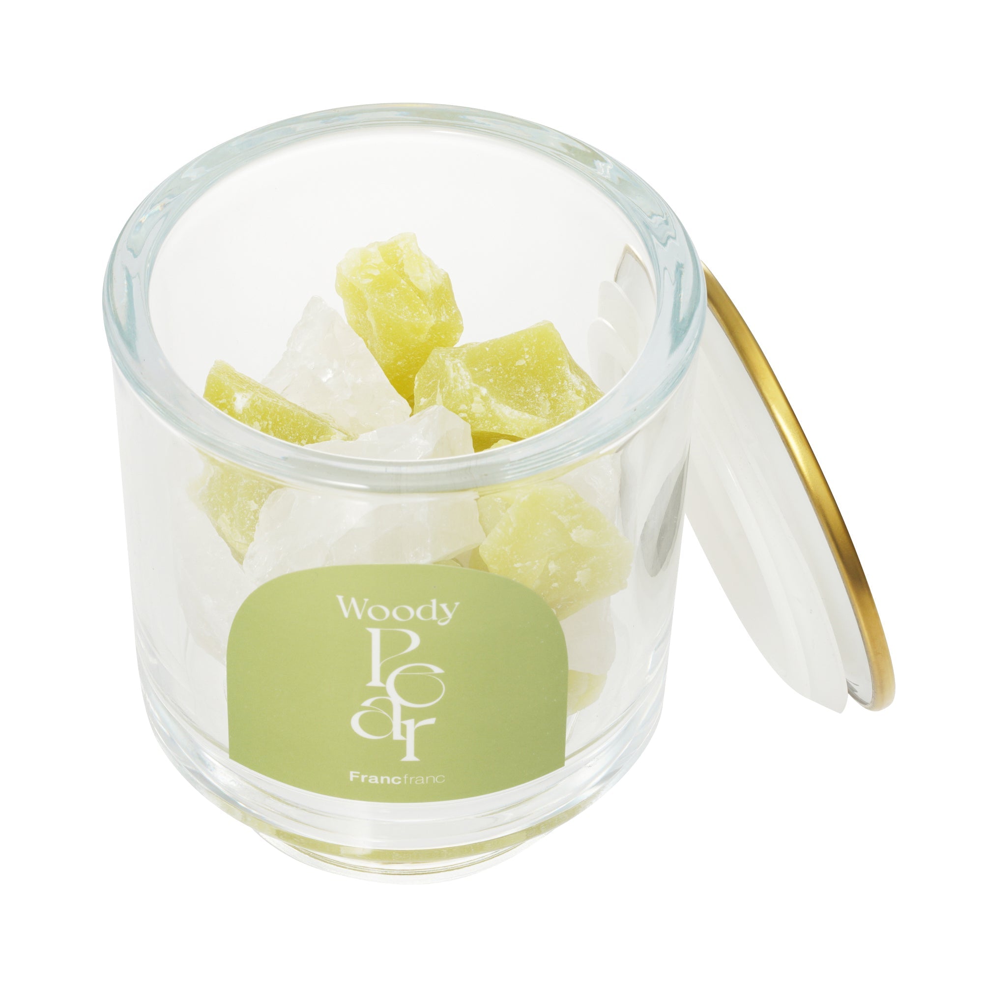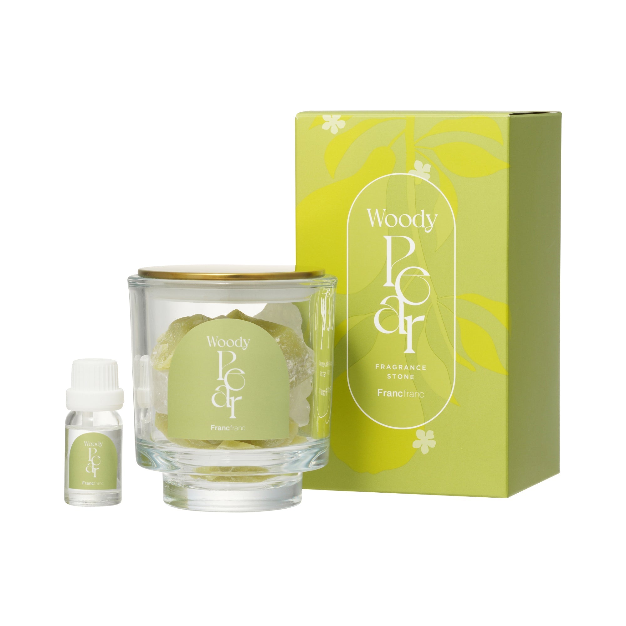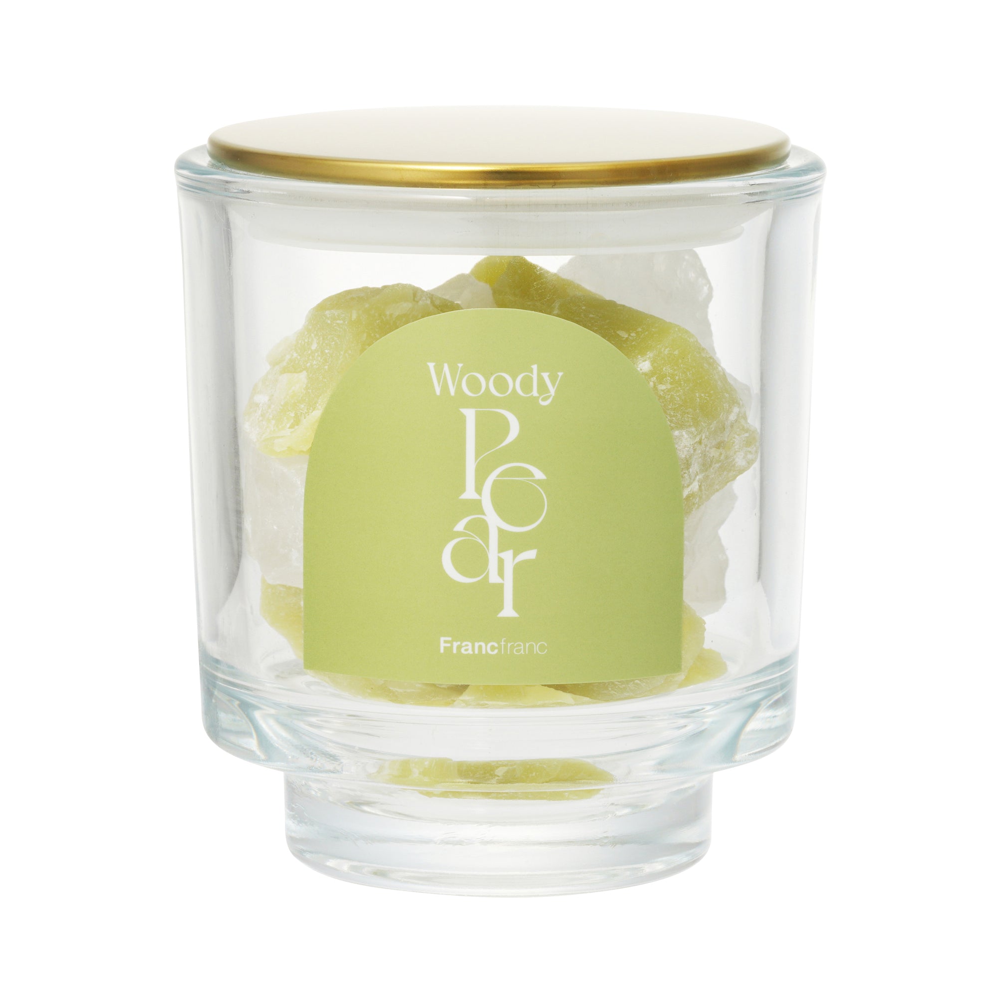 香りで季節を感じていただくことをコンセプトにしたシリーズのフレグランスストーンです。 オレンジと透明の石の2色が混ざったフレグランスストーンに優雅で深みのあるウッディぺアーの香りで自家需要にもギフトにもおすすめです。 ディフューザーやルームスプレーなどのおうちアイテムから、ボディクリームやバスソルトなどのボディケアアイテムまで幅広くご用意しました。 豊富なラインナップで、お部屋も体もお気に入りの香りで揃えてお使いいただけます。 ◆ウッディペアーの香り トップ:グレープフルーツ、レモン、ライム ミドル:ペアー、オレンジフラワー、キンモクセイ、ジャスミン ベース:ムスク、パインニードル、モス