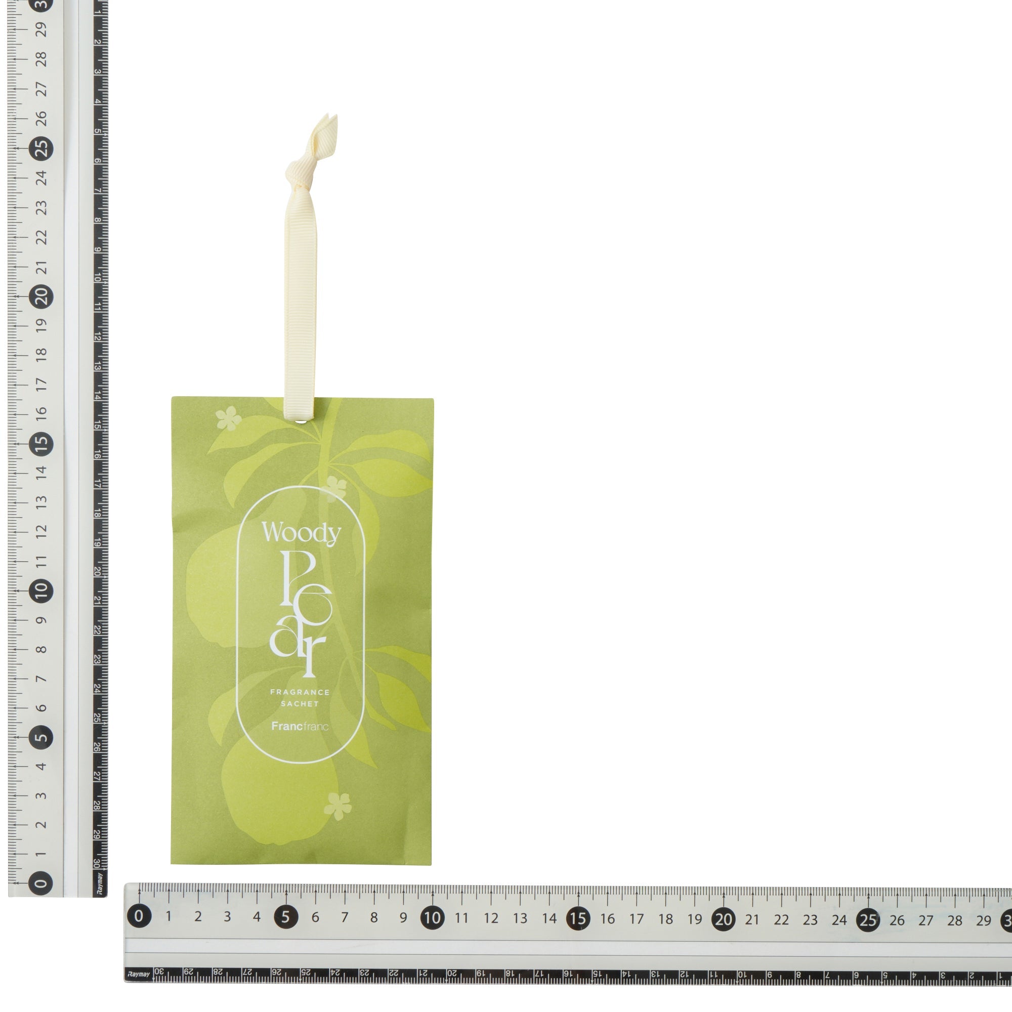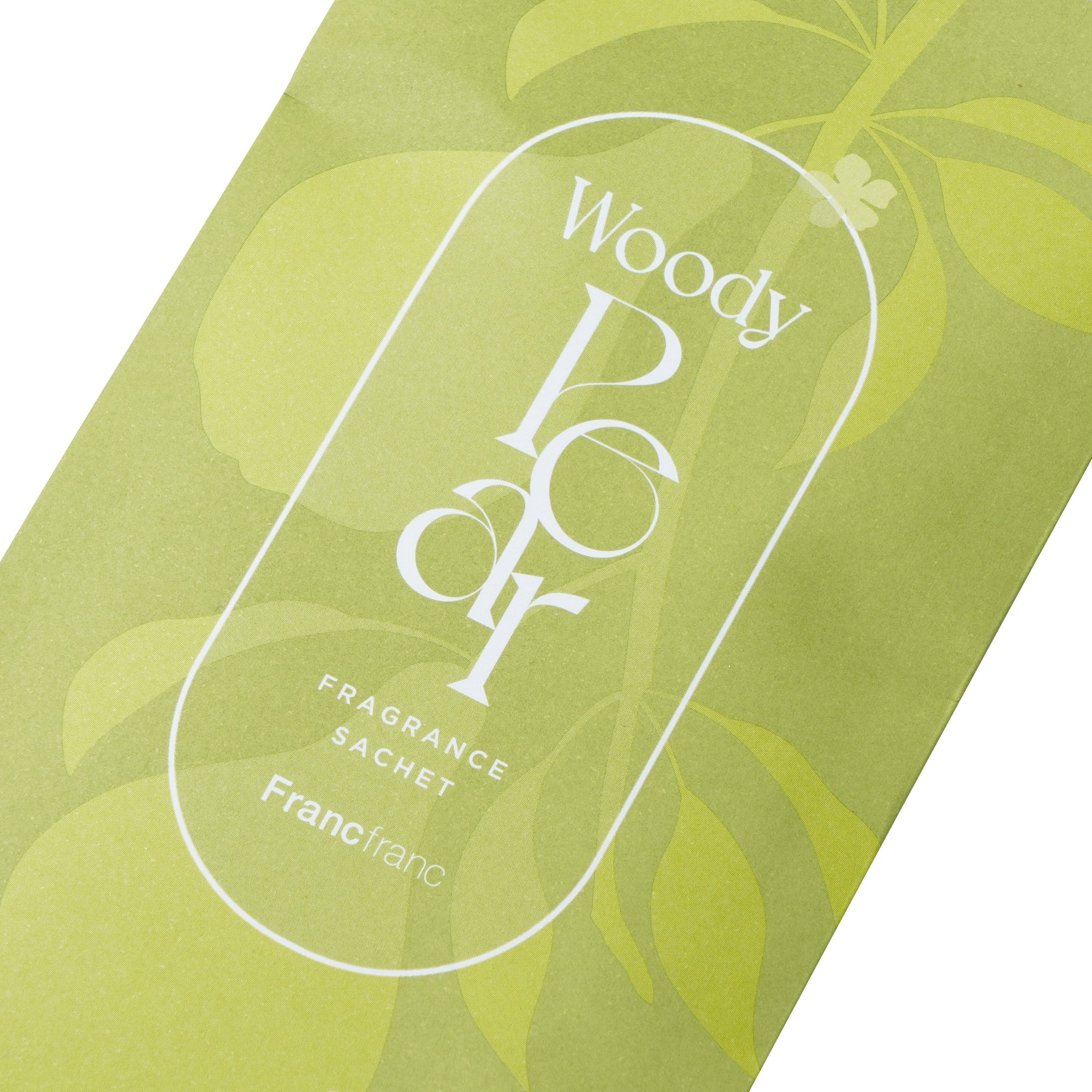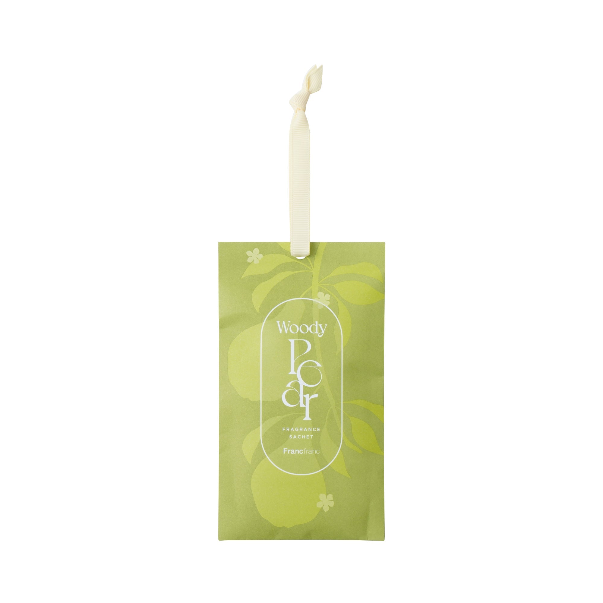 香りで季節を感じていただくことをコンセプトにしたシーズンコレクションに、ウッディペアーの香りが登場。 ウッディペアーの香りをFrancfrancらしく表現したサシェをご用意しました。 吊り下げができるリボン付き。お部屋やオフィス、クローゼットやトイレなどお好きな所でご使用いただけます。 かわいらしく華やかなパッケージデザインでギフトにもおすすめです。 <ご使用方法> サシェをビニール袋から取り出し、紙の外装袋から取り出さずご使用ください。 本品が壁・家具・衣類等に接触したまま使用すると、シミや変質等の原因となりますので、ご使用の際は接触しないようご注意ください。