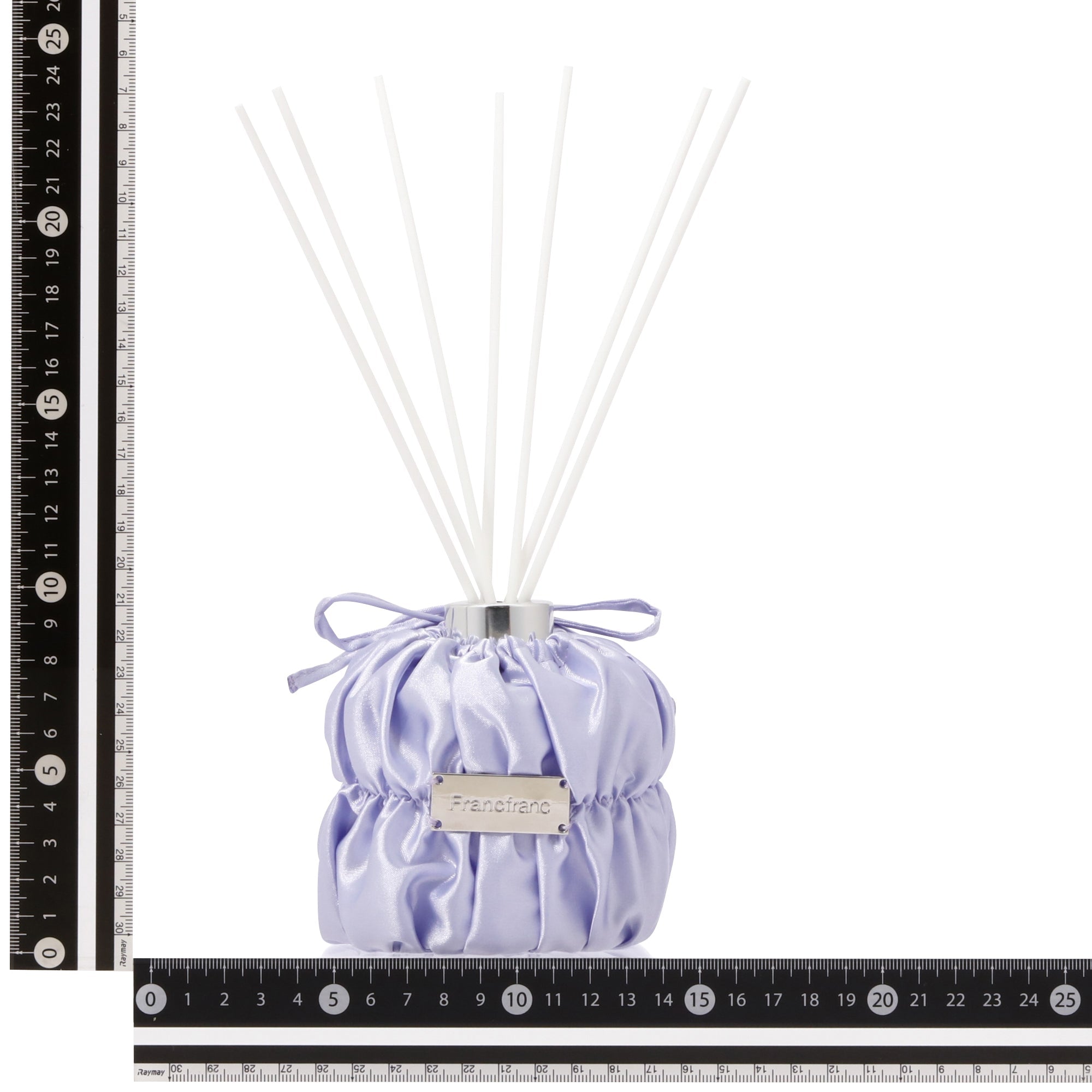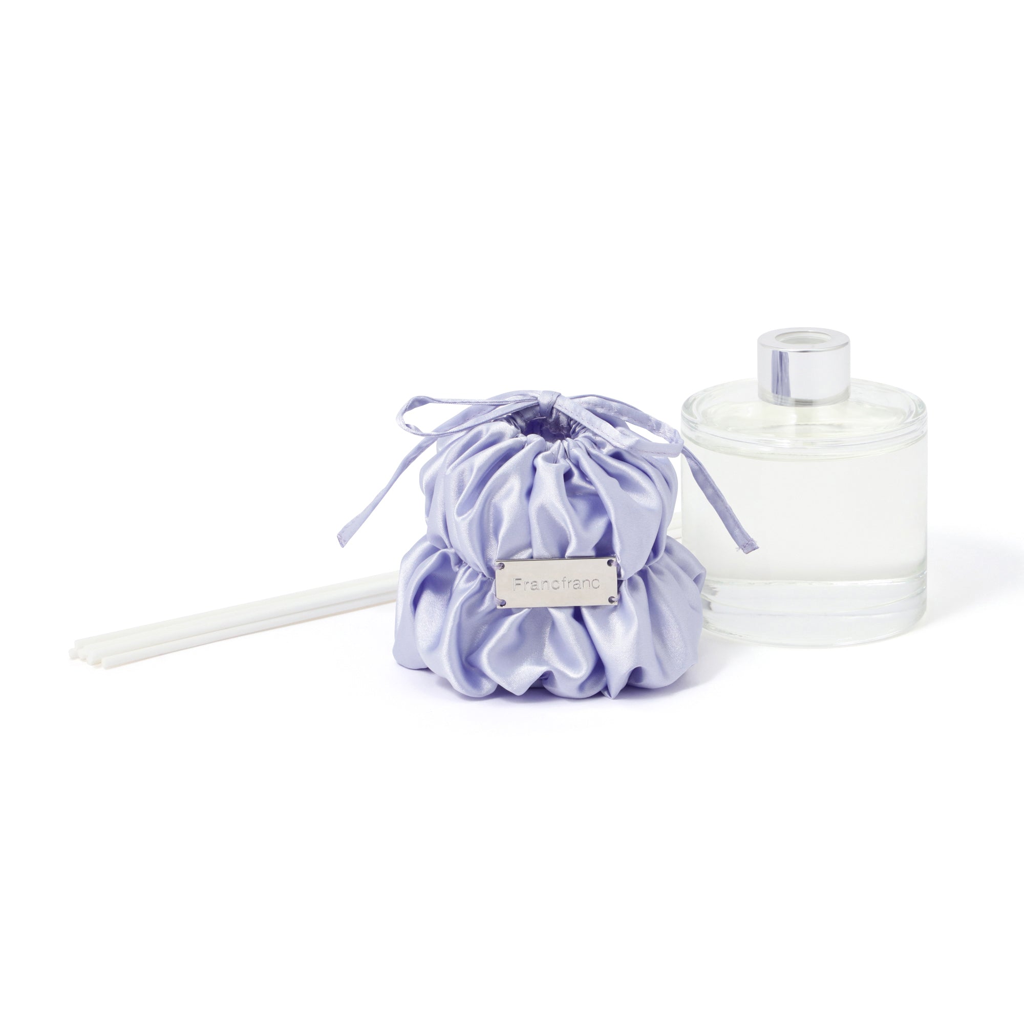 お部屋をより華やかにするフレグランスディフューザーです。光沢感のある生地をドロストしギャザーを施したボトルカバーはお部屋をより明るく華やかにします。ウッディの香りをベースにローズを加えた、心を落ち着かせてくれるFLOWER GARDENの香りです。FLOWER GARDENトップ:ペアー、ベルガモットミドル:フリージア、ローズ、リリーオブザバレーボトム:パチュリ、アンバー、シダー