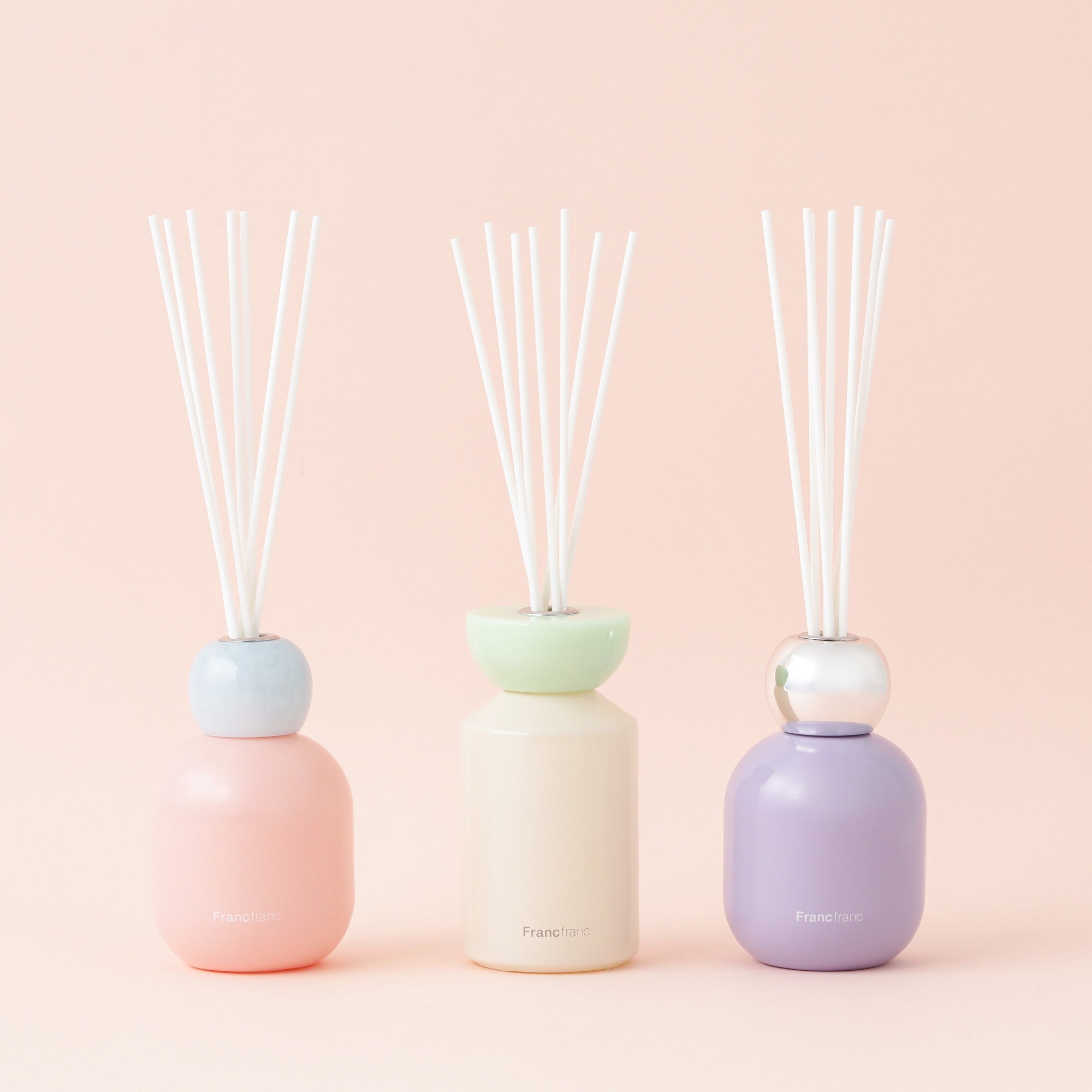 好みのデザインと香りを選んで自分だけのディフューザーが作れる「カスタムフレグランスシリーズ」のボトルです。バリエーション豊富なボトル、キャップ、スティックから好きなカラーと形を選んで自由にカスタム。シンプルな組み合わせからポップなデザインまで幅広くアレンジできます。お部屋のテイストやシーンに合わせて、自分だけの特別なルームフレグランスをお楽しみください。