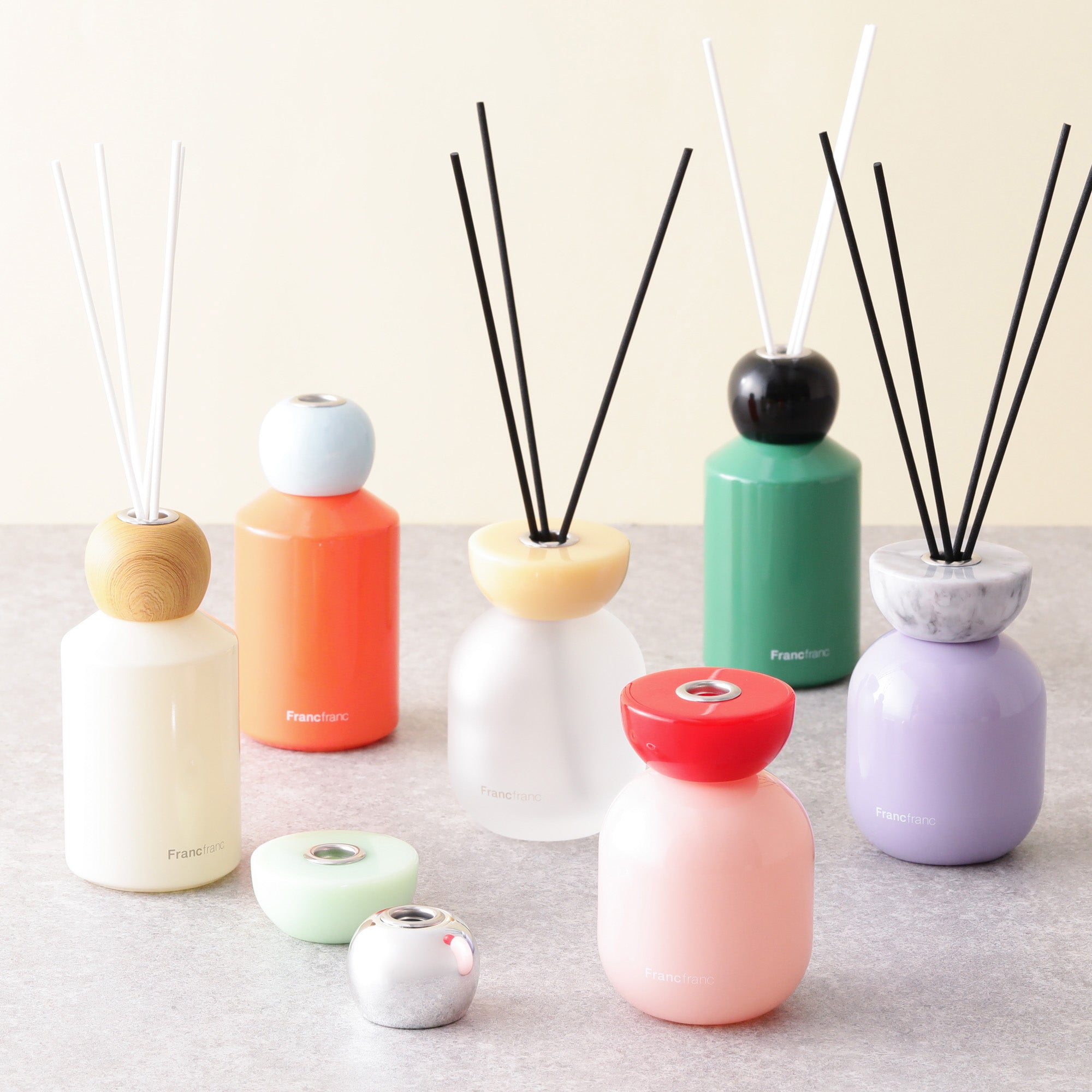 好みのデザインと香りを選んで自分だけのディフューザーが作れる「カスタムフレグランスシリーズ」のキャップです。バリエーション豊富なボトル、キャップ、スティックから好きなカラーと形を選んで自由にカスタム。シンプルな組み合わせからポップなデザインまで幅広くアレンジできます。お部屋のテイストやシーンに合わせて、自分だけの特別なルームフレグランスをお楽しみください。