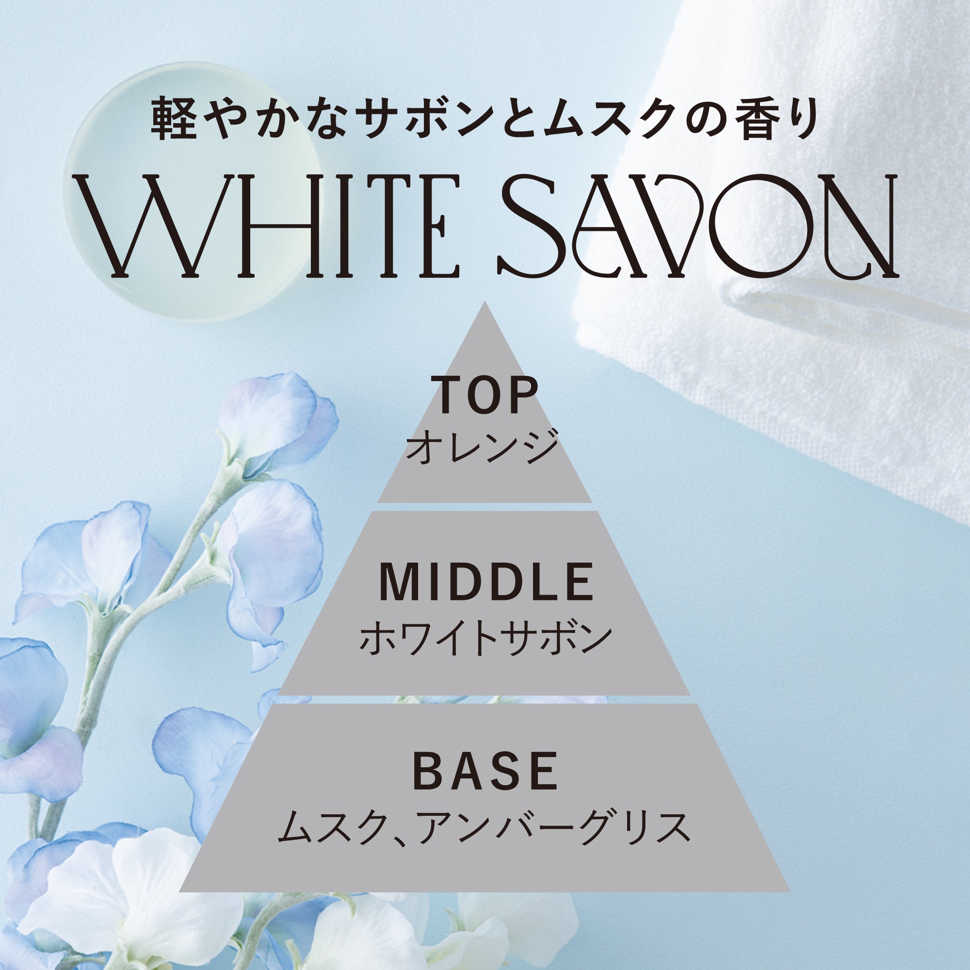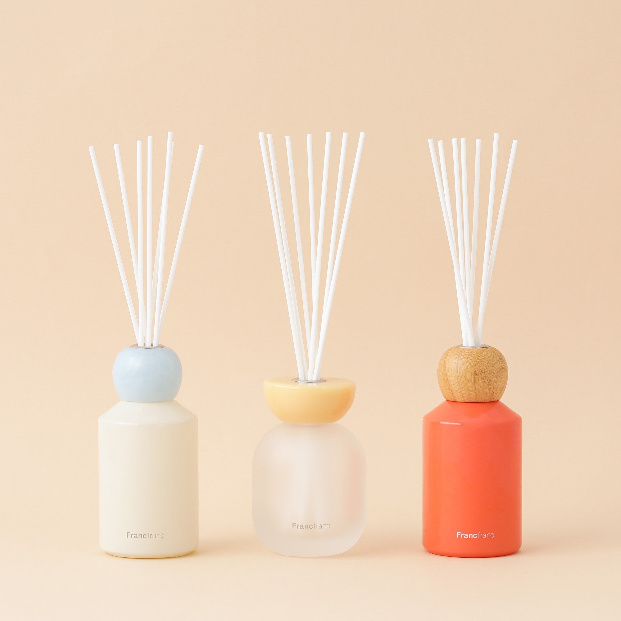 好みのデザインと香りを選んで自分だけのディフューザーが作れる「カスタムフレグランスシリーズ」のオイルです。バリエーション豊富なボトル、キャップ、スティックから好きなカラーと形を選んで自由にカスタム。シンプルな組み合わせからポップなデザインまで幅広くアレンジできます。お部屋のテイストやシーンに合わせて、自分だけの特別なルームフレグランスをお楽しみください。ホワイトサボンの香りトップノート:オレンジミドルノート:ホワイトサボンボトムノート:ムスク、アンバーグリス