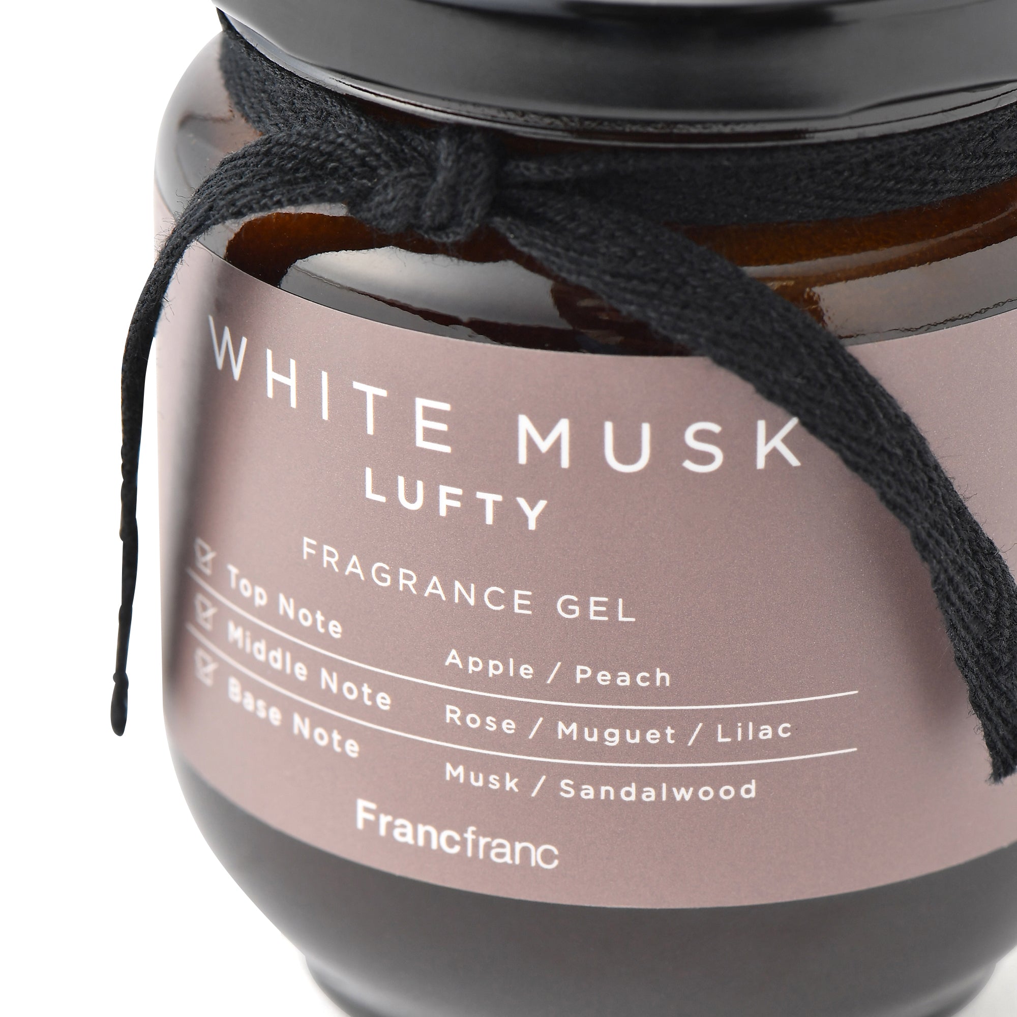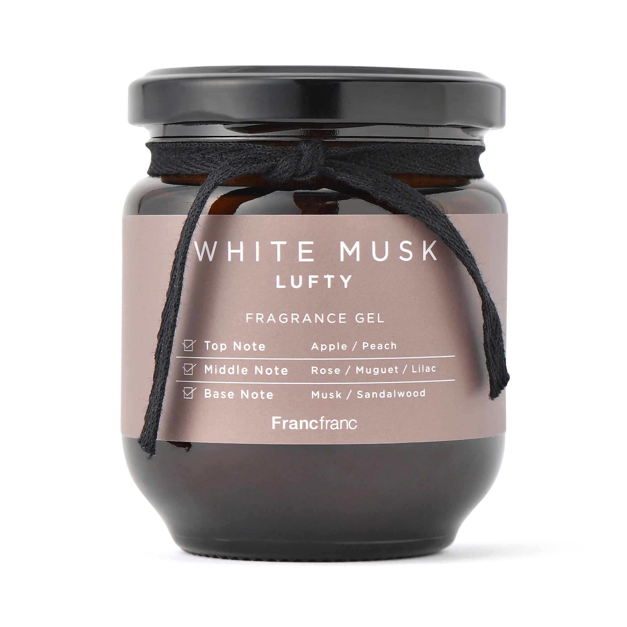 ナチュラルで洗練されたデザインのフレグランスジェルです。ジャムの入れ物のような瓶を開けると甘い香りが広がります。植物性消臭成分配合で、気になる臭いを消臭しながら人気のホワイトムスクの香りが楽しめます。ホワイトムスクの香りトップ:アップル、ピーチミドル:ローズ、ミュゲ、ライラックベース:ムスク、サンダルウッド