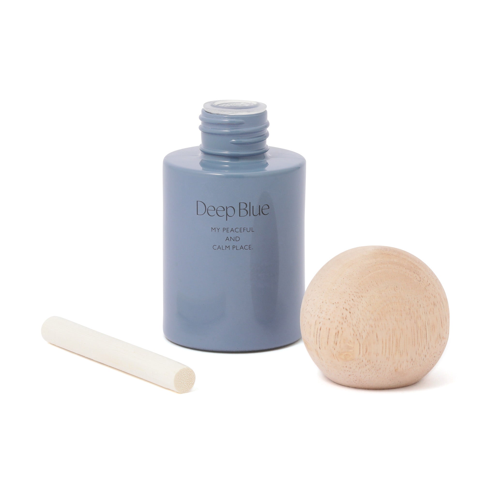秋らしいカラーのボトルとぬくもりのあるウッドのボールがかわいいルームフレグランスです。ナチュラル系が好みの方も、シンプルめやモダンなテイストにも合わせやすいデザインです。ディープブルーの香りトップ:ベルガモットミドル:ラベンダーベース:ムスク<ご使用方法>1. ガラスボトルに付属されている木の蓋を外してください。細長い木の棒がスティックの役割ですので、木の棒を蓋の内側のくぼみにしっかりと差し込んでください。2. ガラスボトルの内蓋を外します。内蓋を外す際はテーブルを傷つけないよう布等を敷き水平な場所で、ガラスボトルをおさえながら外してください。オイルの液漏れを防ぐため、多少内蓋が硬い場合がございますので、内蓋を外す際はオイルの飛び出しにご注意ください。3. 木の蓋をはめてください。時間が経つと木の蓋にオイルが染み込み、香りが広がります。