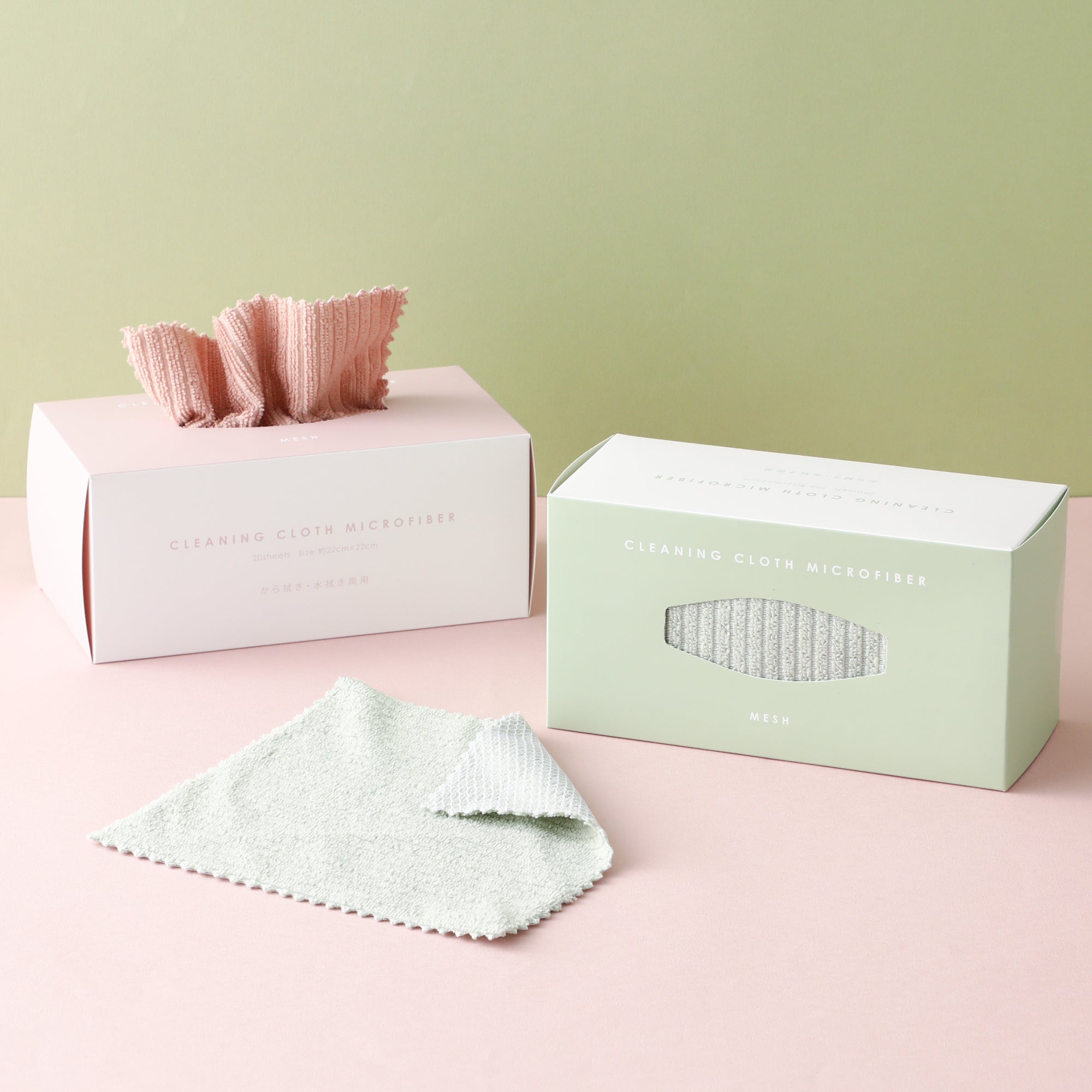 毎日のお掃除が楽しくなりそうなかわいいデザインの使い捨てクロスです。表面は細かい汚れもしっかり落とすマイクロファイバー素材で洗面所や台所などの水回りを手軽にお掃除。鏡・窓ガラスの掃除にもおすすめです。裏面は頑固な汚れもこすり落とせるメッシュ素材。お掃除する場所に合わせて使う面を選べます。そのままお部屋に置いてもインテリアを邪魔しないおしゃれなボックス入りだから、ティッシュペーパー感覚でいつでもさっと取り出せます。用途によって使い分けられる乾拭き・水拭きの両用タイプ。普段使いはもちろん年末の大掃除にもぜひ用意しておきたい便利アイテムです。